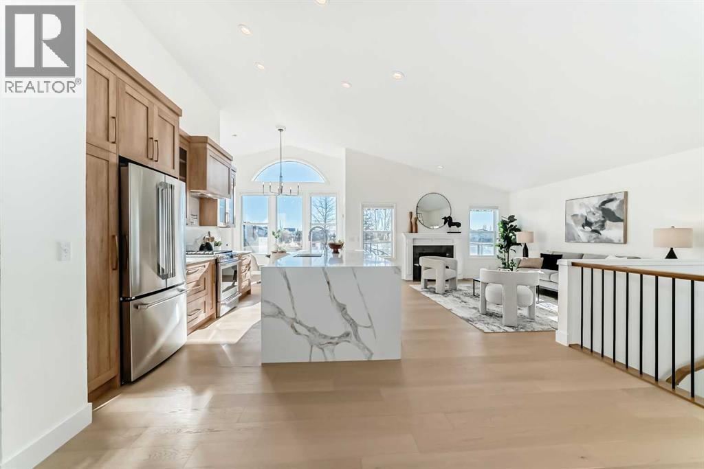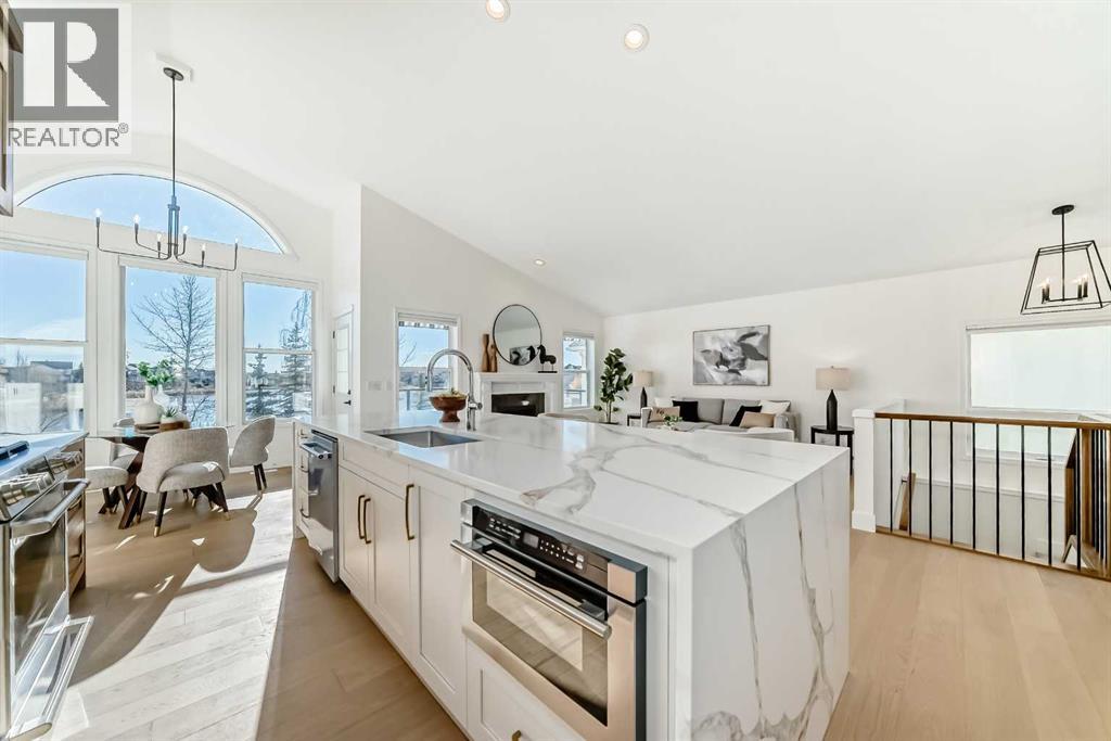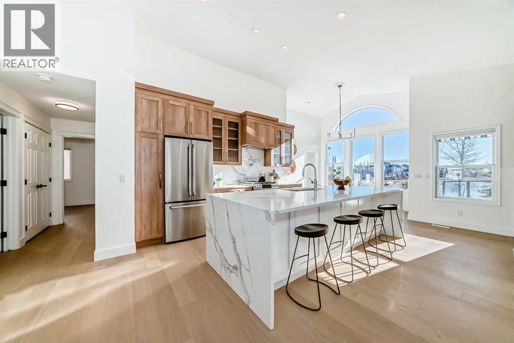 LUXURY LIVING ON THE POND. Gorgeous, fully renovated luxury walkout bungalow backing onto West Creek Pond, with stunning views, turnkey and ready for its next owner! This is truly what dreams are made of, as you enjoy daily sunrises/sunsets and walks around the pond, accessible from your large, sunny, south-facing backyard—open-concept main floor with 13-foot vaulted ceilings, abundant natural light throughout, and unobstructed views.This 3-bed, 3-bath, plus office/den bungalow features brand-new, beautiful custom cabinetry, luxury appliances, a waterfall-edge quartz countertop/ backsplash, custom pot filler —truly a chef’s dream! Curb-less tiled ensuite shower with custom glass, quartz counters throughout, a wet bar on the lower level, and a brand-new upper patio deck, gorgeous custom-engineered white oak hardwood, with custom tile and carpet. Custom-designed throughout, fully developed walkout basement with walkway and pond access. Laundry is conveniently located on the main floor. The underground sprinkler system keeps the landscaped yard well-nourished throughout the summer. Perfect for those seeking a nature-inspired lifestyle, moments away from walking pathways, a golf course, a beach, a lake, shopping, schools, playgrounds, restaurants, roadways, and other major amenities. MUST VIEW! Book your private viewing today!*3D VIRTUAL TOUR AVAILABLE* (id:63190)