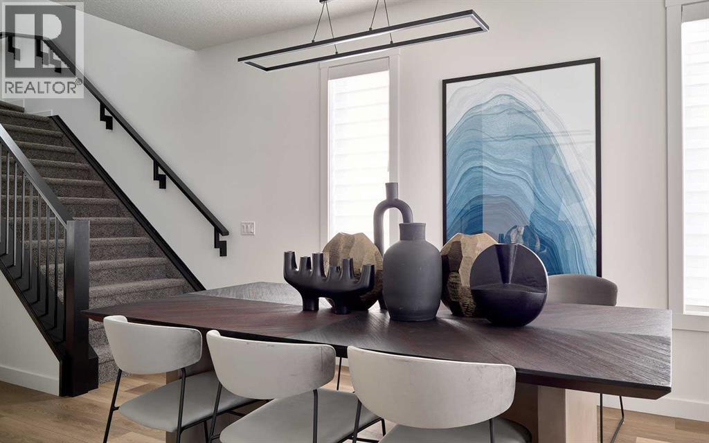 Welcome to the ‘Oak’ by Brookfield Residential, a beautifully crafted semi-detached home located in the desirable community of Chinook Gate in Airdrie. Thoughtfully designed to deliver exceptional functionality and modern style, this home is complete with a double detached garage and nearly 1,700 sq. ft. of above-grade living space. Featuring two spacious living areas, three bedrooms, and 2.5 bathrooms above grade, this home offers a smart and versatile layout ideal for today’s lifestyle. Nine-foot ceilings enhance the sense of openness throughout the main floor, while the central kitchen serves as the true heart of the home. The kitchen is both stylish and functional, showcasing a large island, spacious pantry, and a full suite of stainless-steel appliances, perfect for cooking, entertaining, and everyday living. The bright dining area overlooks the front yard through large windows that bring in abundant natural light year-round. At the rear of the home, the great room features a wall of southwest-facing windows overlooking the private backyard, creating a warm and inviting space to relax. A convenient 2-piece powder room completes the main level. Upstairs, a central bonus room provides separation and privacy between the primary retreat and the secondary bedrooms. The spacious primary suite includes a walk-in closet and a beautifully finished 4-piece ensuite with dual sinks and a walk-in shower. Two additional bedrooms, a full bathroom, and an upper-level laundry room complete this family-friendly second floor. The basement offers excellent future development potential, with ample space for a fourth bedroom, a full bathroom, and recreation room. It also features a private entrance, ideal for those considering a future basement suite (subject to permits and approvals). Outside, the sunny backyard provides the perfect setting for relaxing or entertaining during the warmer months. A rear double detached garage offers secure parking and additional storage year-round. L ocated in the heart of Chinook Gate, residents enjoy access to parks, playgrounds, green spaces, and convenient connections to major roadways — everything you need just minutes from your doorstep. Built with quality craftsmanship and backed by both a full builder warranty and the Alberta New Home Warranty program, this home offers style, comfort, and peace of mind in one exceptional package. (id:63190)