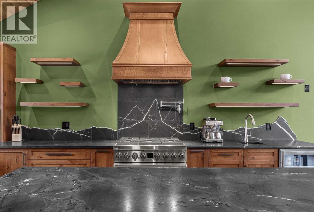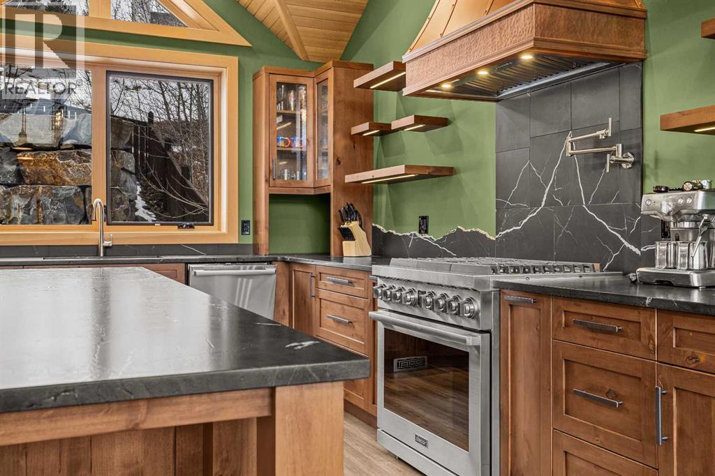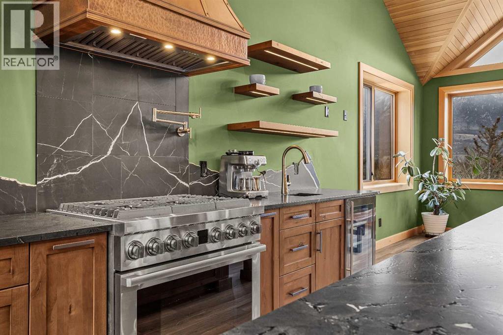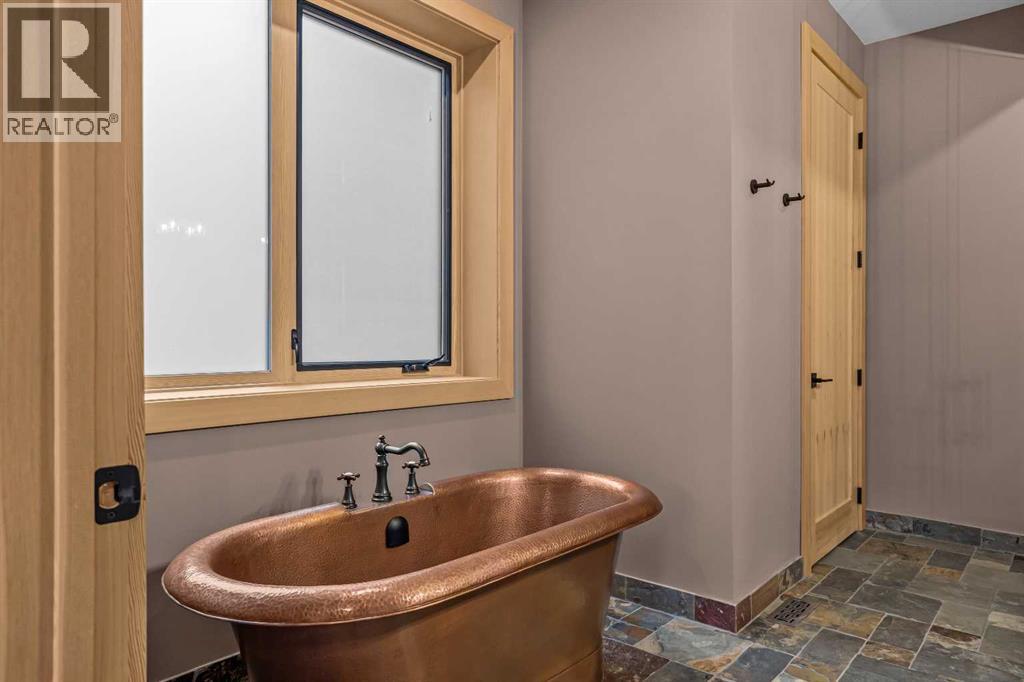At nearly 3,200 SF, Positioned at the top of a quiet cul-de-sac, 104 Rummel Place captures elevated Bow Valley views in one of Canmore’s most peaceful residential settings.This 4-bedroom, 4-bathroom custom home blends privacy, scale, and thoughtful design anchored by a triple-car garage with exceptional storage capacity.Vaulted ceilings frame the surrounding mountain and valley views, creating a dramatic yet welcoming upper-level living space. Expansive windows draw natural light throughout, while multiple outdoor patios and balconies offer seamless indoor-outdoor living.The backyard is truly exceptional fully fenced and thoughtfully terraced with multiple lounging areas, a covered hot tub retreat, fire pit, and a private viewing platform perched above the valley an ideal vantage point to take in Canmore’s landscape.The kitchen is designed for entertaining, featuring a large island, gas range, prep sink, and generous workspace. The main level includes a spacious primary suite complete with a walk-in closet and a striking copper bathtub in the ensuite a distinctive design feature that elevates the space. Two additional bedrooms offer direct access to outdoor areas.The lower level includes a recreation room, fourth bedroom, and full bathroom, creating flexibility for guests, family, or additional living space.Additional features include in-floor heat throughout, heated driveway and steps, solar panels, elevator access to all levels, and rough-in for a future sauna or Nordic spa.This is a home defined by its position elevated, private, and immersed in nature while remaining just minutes from downtown Canmore. (id:63190)