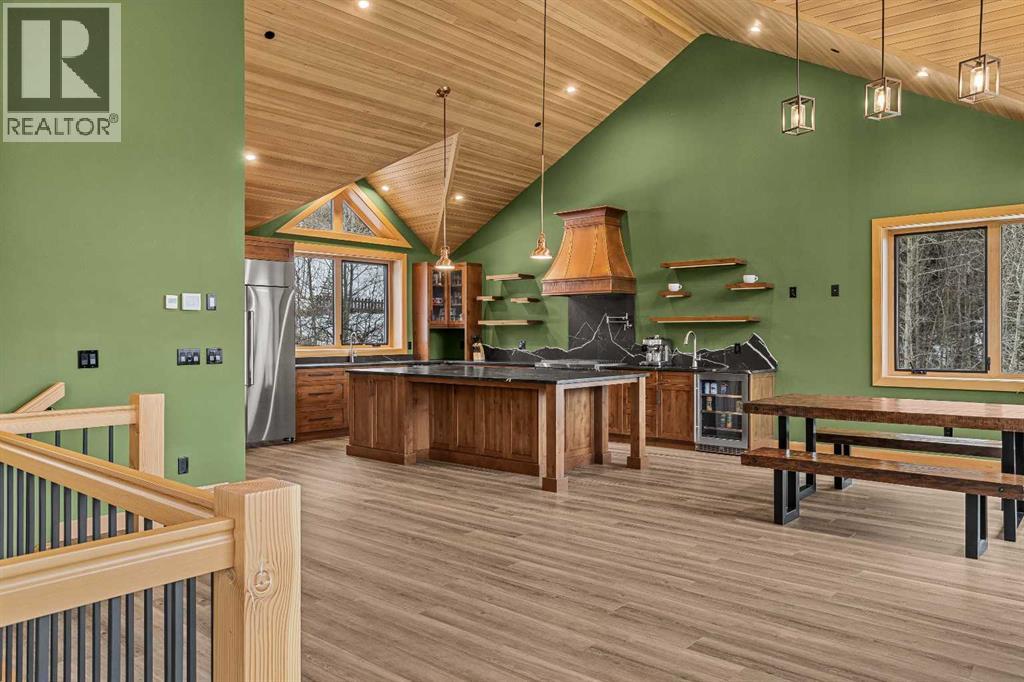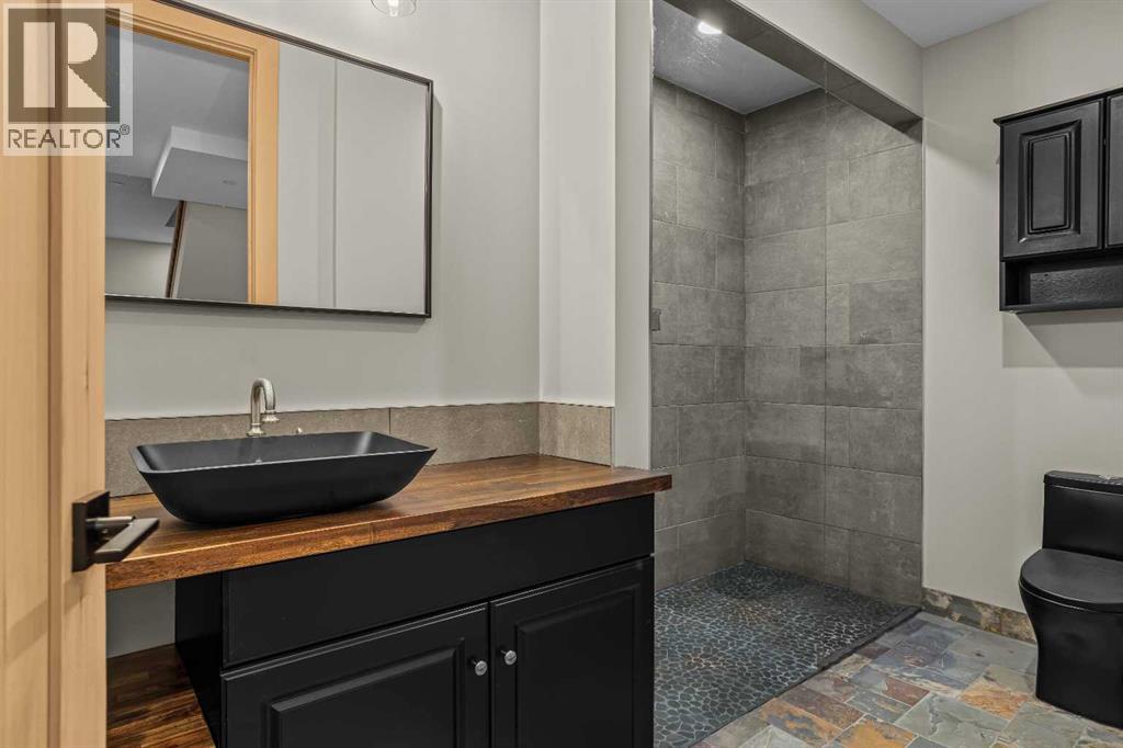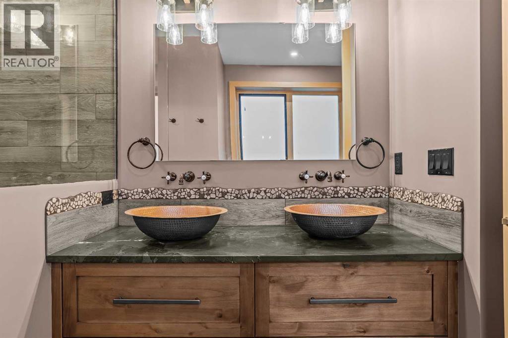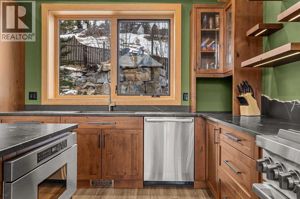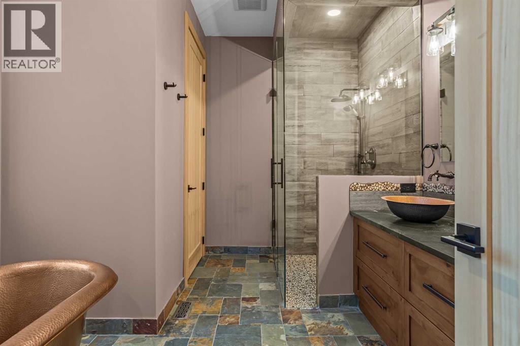 At nearly 3,200 SF, Positioned at the top of a quiet cul-de-sac, 104 Rummel Place captures elevated Bow Valley views in one of Canmore’s most peaceful residential settings.This 4-bedroom, 4-bathroom custom home blends privacy, scale, and thoughtful design anchored by a triple-car garage with exceptional storage capacity.Vaulted ceilings frame the surrounding mountain and valley views, creating a dramatic yet welcoming upper-level living space. Expansive windows draw natural light throughout, while multiple outdoor patios and balconies offer seamless indoor-outdoor living.The backyard is truly exceptional fully fenced and thoughtfully terraced with multiple lounging areas, a covered hot tub retreat, fire pit, and a private viewing platform perched above the valley an ideal vantage point to take in Canmore’s landscape.The kitchen is designed for entertaining, featuring a large island, gas range, prep sink, and generous workspace. The main level includes a spacious primary suite complete with a walk-in closet and a striking copper bathtub in the ensuite a distinctive design feature that elevates the space. Two additional bedrooms offer direct access to outdoor areas.The lower level includes a recreation room, fourth bedroom, and full bathroom, creating flexibility for guests, family, or additional living space.Additional features include in-floor heat throughout, heated driveway and steps, solar panels, elevator access to all levels, and rough-in for a future sauna or Nordic spa.This is a home defined by its position elevated, private, and immersed in nature while remaining just minutes from downtown Canmore. (id:63190)
