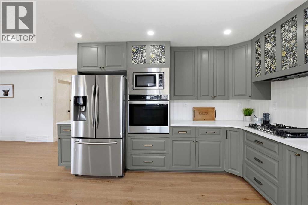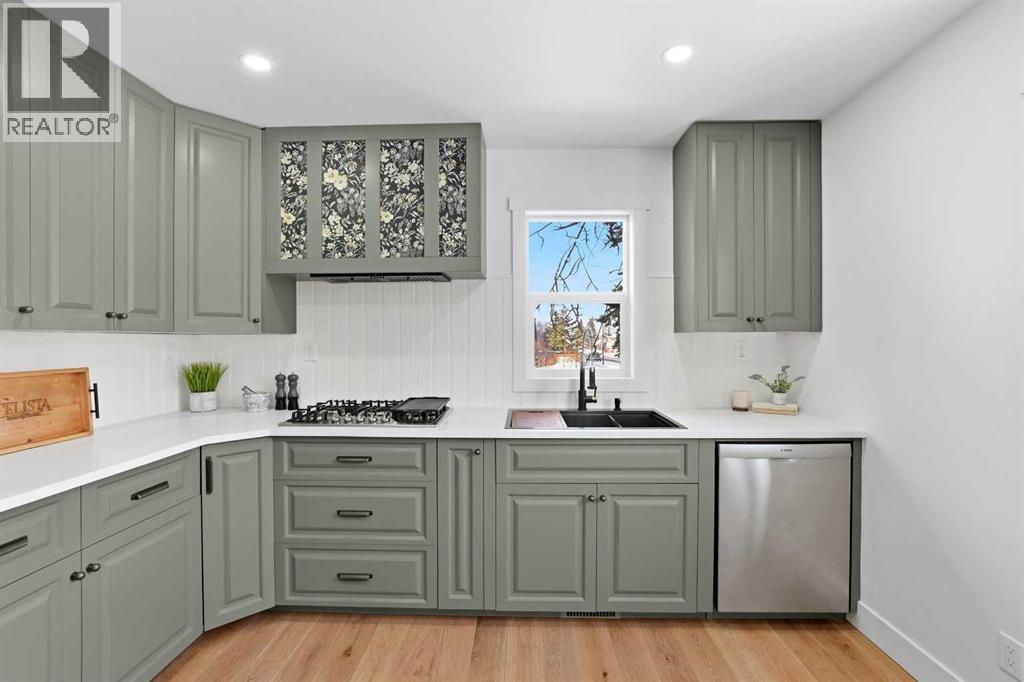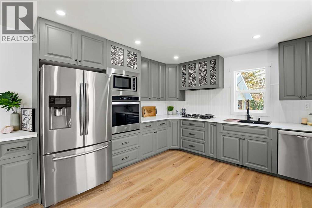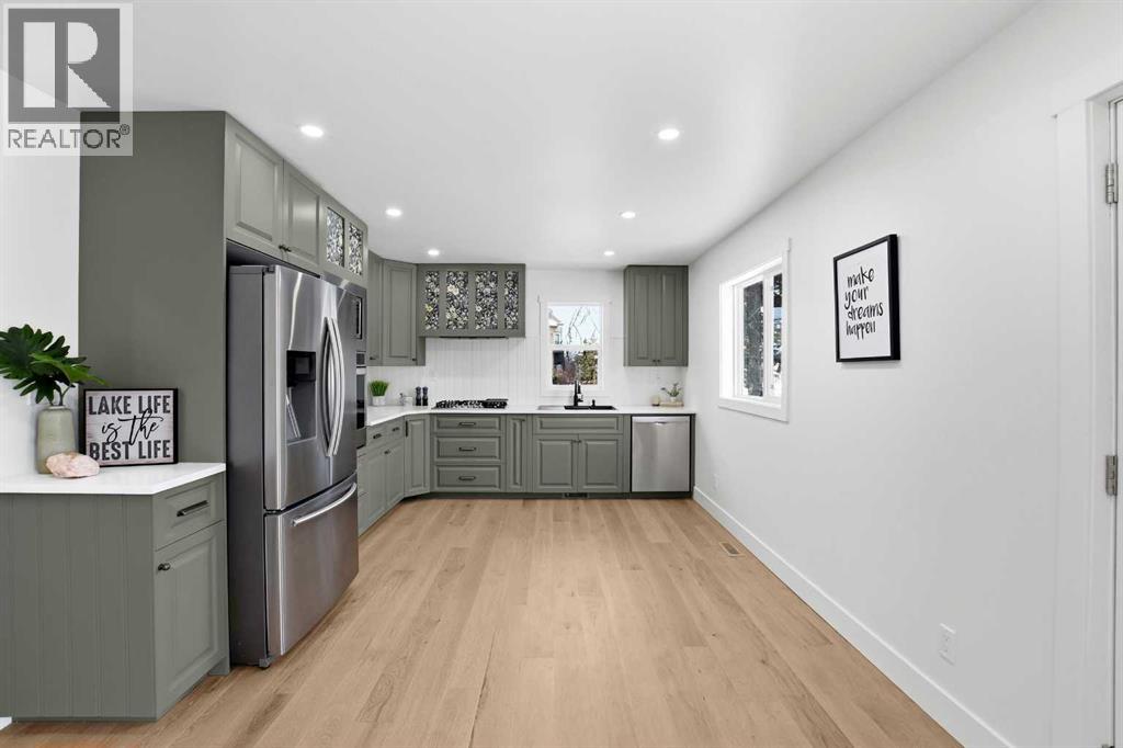 ~OPEN HOUSE SUNDAY MARCH 8th from 1-3PM!~ Just listed in Sylvan Lake! This stunning, fully renovated bungalow sits on an oversized, beautifully treed lot backing directly onto the golf course with no neighbours behind—offering exceptional privacy and a peaceful setting. Nearly every inch of this home has been thoughtfully updated, including a brand-new kitchen, vanities, furnace, hot water tank, flooring, paint, and insulation…the upgrades truly go on and on.Step inside to a bright, open-concept layout filled with natural light from large windows and modern pot lighting throughout. The cozy living room features a gas fireplace and flows seamlessly into the show-stopping kitchen—perfect for entertaining. The main floor is complete with two bedrooms and two 3-piece bathrooms.Downstairs, you’ll find a spacious family room, two generously sized bedrooms, a 4-piece bathroom, and a convenient laundry room with sink.The massive lot offers endless possibilities with space to build a garage, park RVs, and enjoy back lane/alley access. Located just steps from the lake and marina, yet tucked away from the downtown hustle and bustle, this property offers the best of both worlds.With incredible summer Airbnb potential and an unbeatable location, this amazing property won’t last long! (id:63190)