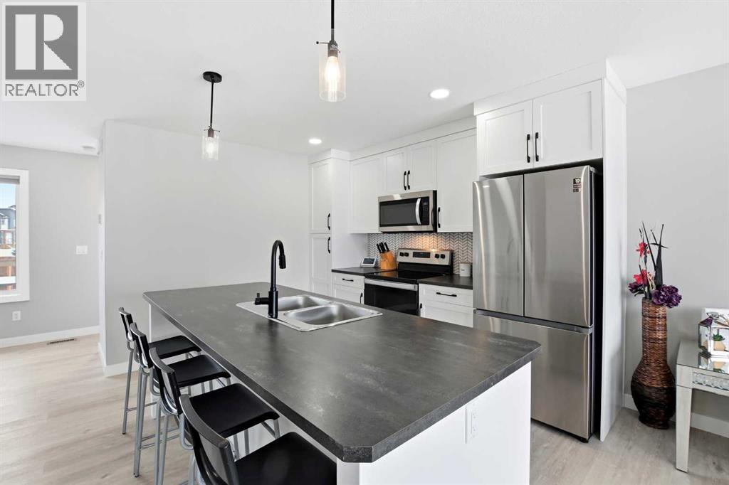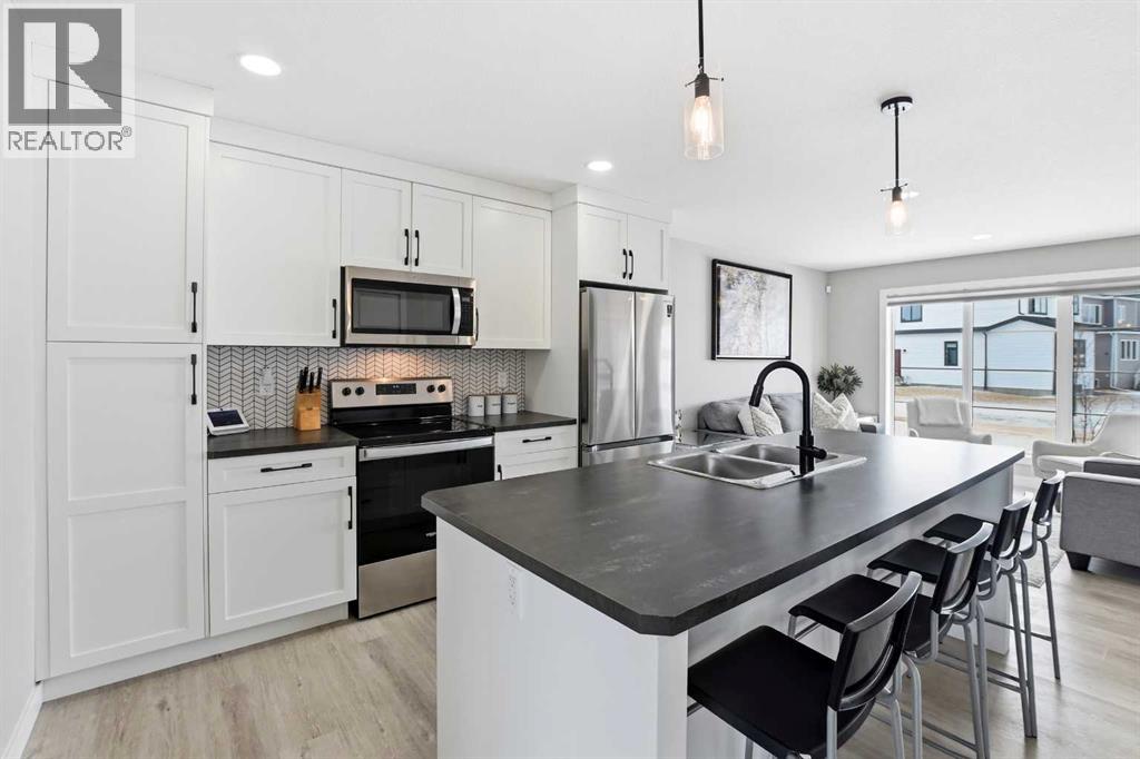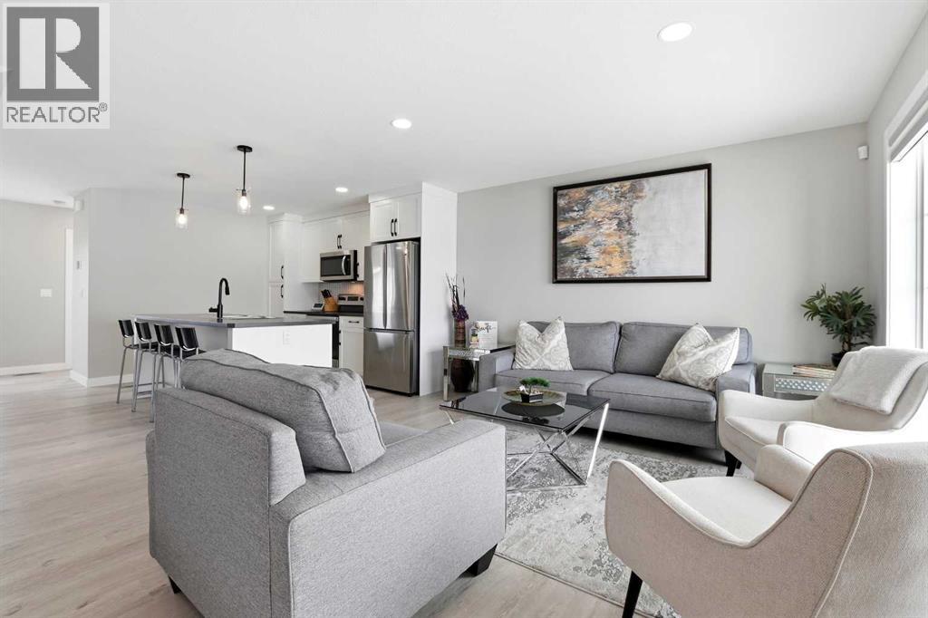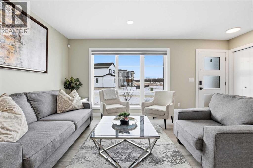 Welcome to this beautifully designed Falcon Homes townhouse in desirable Liberty Landing. Offering modern convenience, exceptional finishes, and effortless living. Sold FULLY FURNISHED and completely move-in ready, this is a rare opportunity to step into a professionally styled home with everything already done for you.Located in Liberty Landing, just minutes from Gasoline Alley, you’ll enjoy quick access to shopping, markets, restaurants, and Highway 2. The community offers exceptional amenities, natural wetlands, abundant green space, and close proximity to an urban center.This functional 2-storey plan is thoughtfully designed for everyday living. The main floor showcases gorgeous vinyl plank flooring, large living room windows that allow in plenty natural light, and a bright open-concept layout. The kitchen features beautiful cabinetry, a full tile backsplash, stainless steel appliances, and a sit-up island perfect for casual dining or entertaining. A spacious dining area, convenient 2-piece bathroom, and access to the back deck.Upstairs you’ll find 3 bedrooms, including a stunning primary retreat with its own 3-piece ensuite featuring a tiled shower with glass door. An additional 4-piece bathroom with tiled tub surround serves the upper level.The fully finished basement adds incredible versatility, offering a large recreation room, a 4-piece bathroom, and space with potential for a 4th bedroom, home office, or gym. Outside, enjoy the fully fenced and landscaped yard, perfect for relaxing or entertaining, along with off-street parking for added convenience.Best of all there are NO condo fees and the remainder of the new home warranty to be transferred to new owner. A beautiful blend of style, functionality, and location in one of the area’s growing communities. (id:63190)
