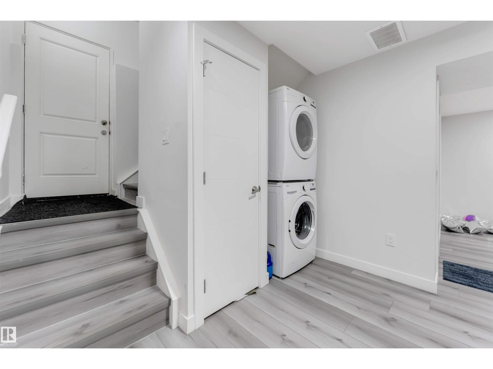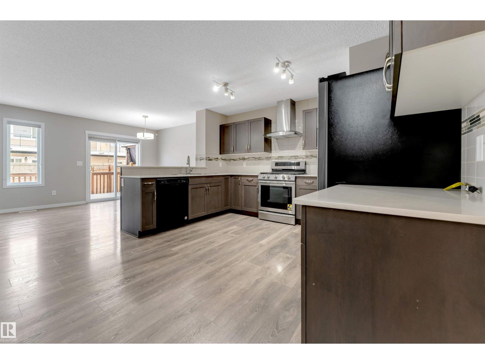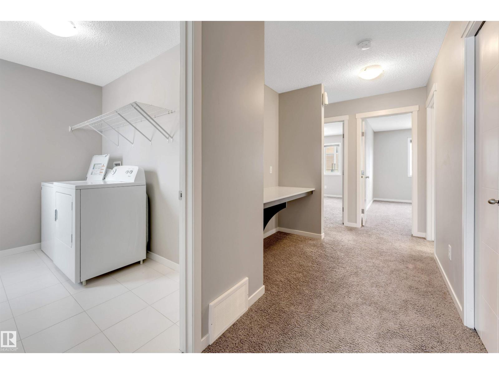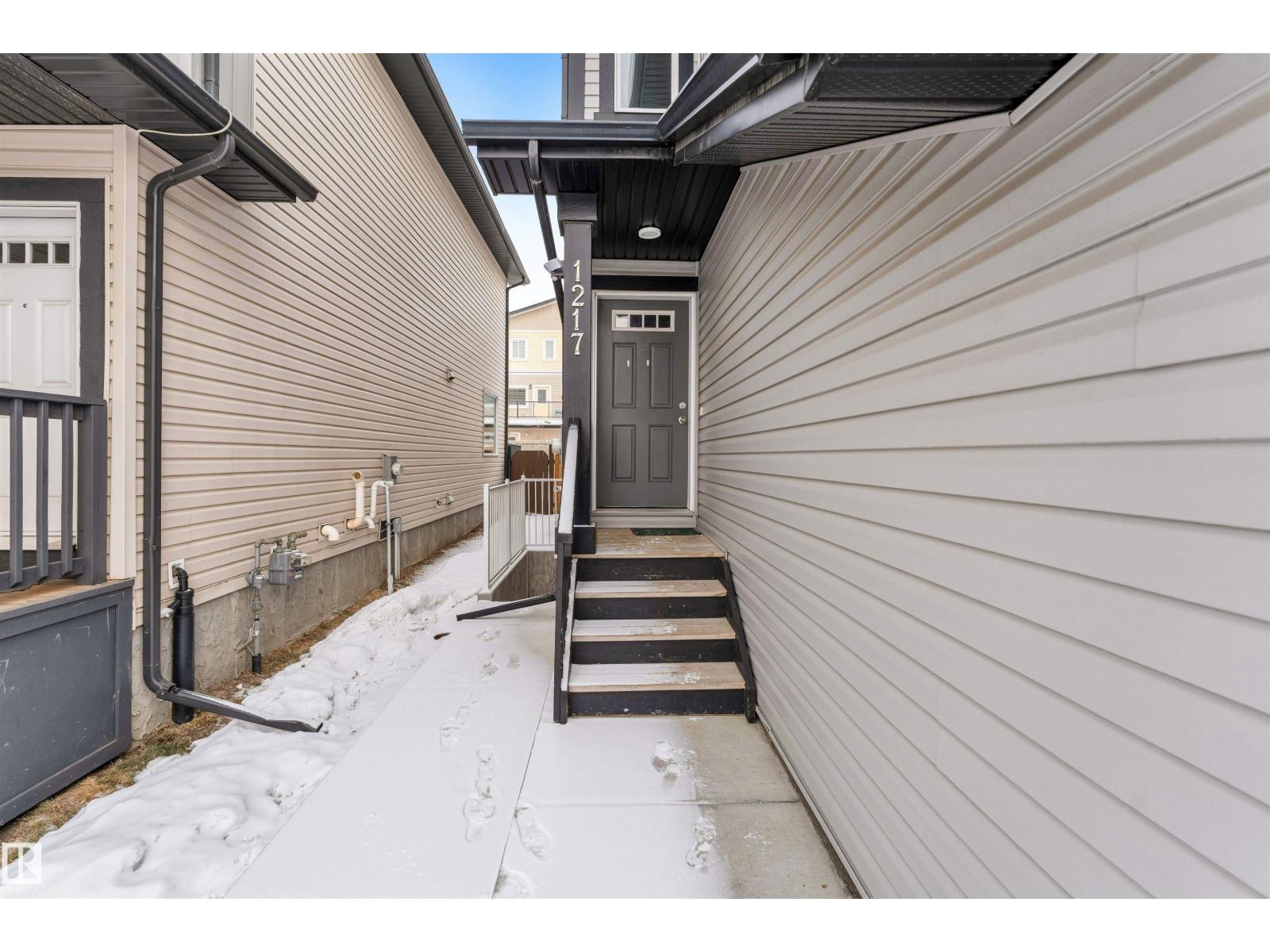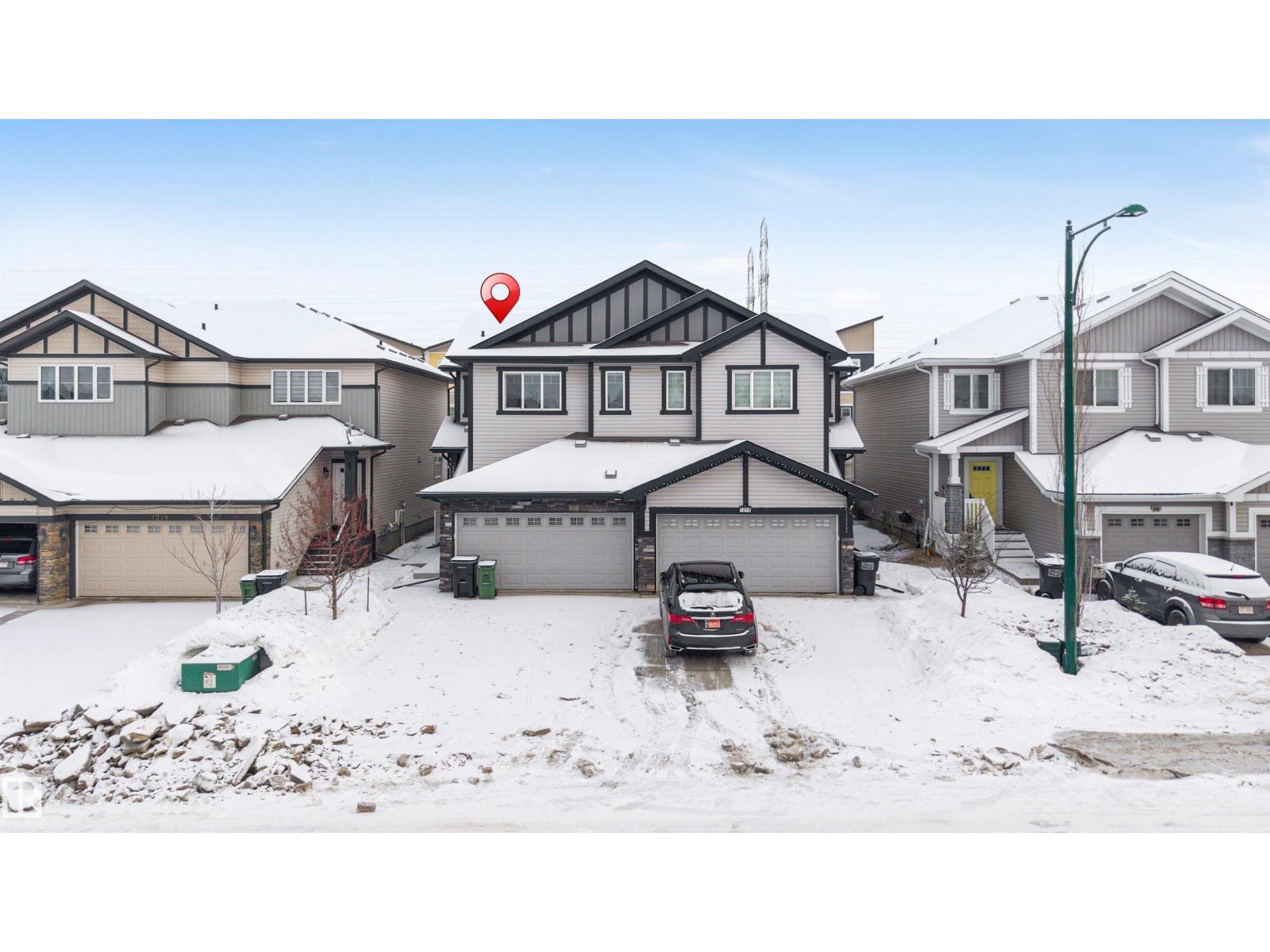 **PRIME LAUREL LOCATION**ONE BEDROOM BASEMENT WITH SECOND KITCHEN AND SIDE ENTRANCE**OPEN-CONCEPT MAIN FLOOR**. Located in the heart of Laurel, this two-storey half duplex offers a bright and functional layout perfect for modern living. The open main floor features stylish laminate and tile flooring, a well-designed kitchen with granite countertops, maple cabinetry, a corner island, and a walk-in pantry. Large windows bring in plenty of natural light, with patio doors leading to the deck. Upstairs includes a comfortable primary bedroom with a walk-in closet and ensuite, two additional bedrooms, upper-floor laundry, and a built-in workspace. An Below Grade finished basement offers great cash flow potential, all just minutes from schools, shopping, and Anthony Henday. (id:63190)