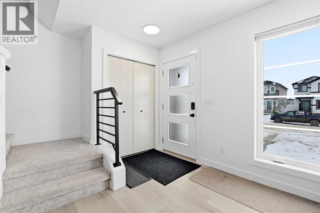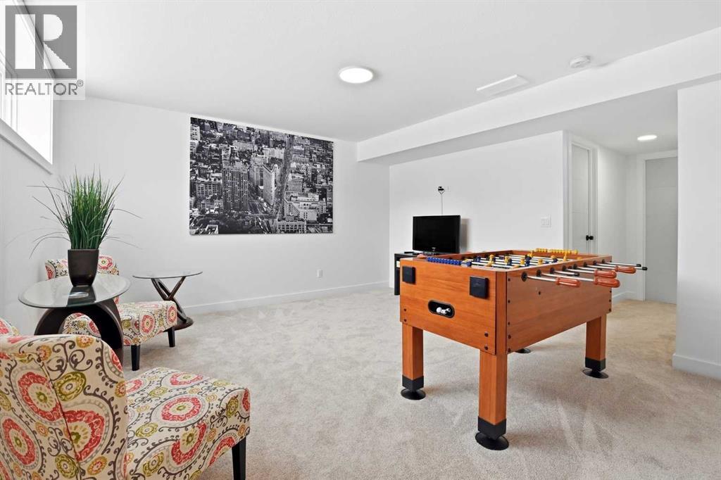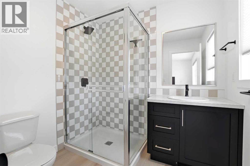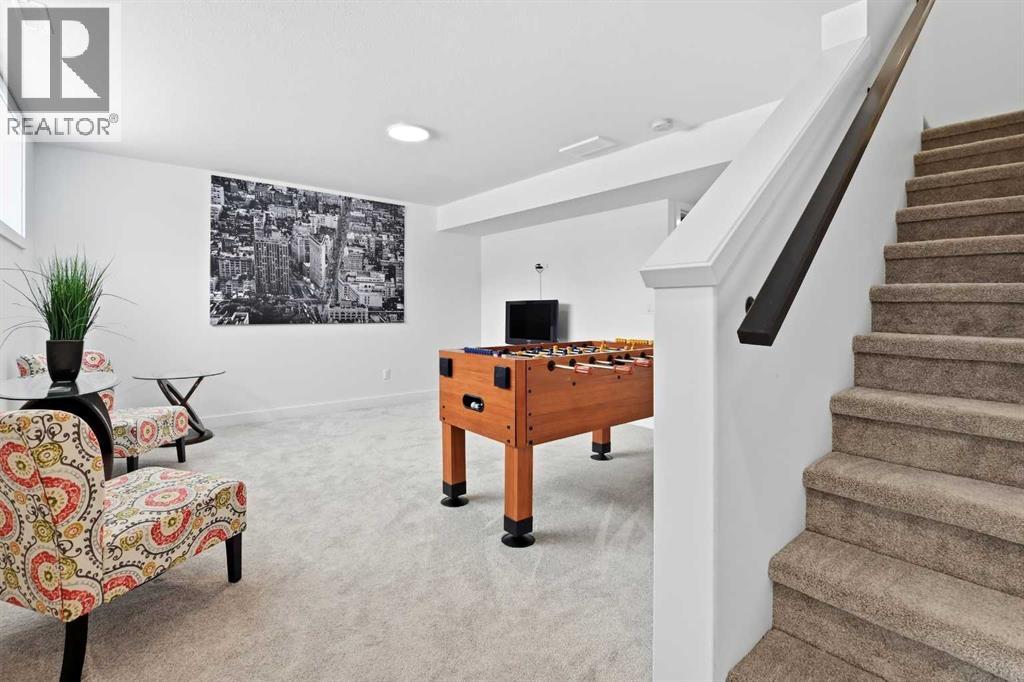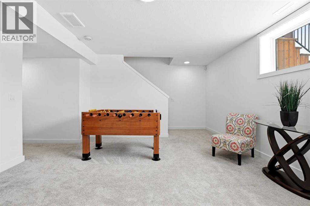 Welcome to this beautifully crafted Falcon Homes townhouse in the desirable community of Liberty Landing. Offered FULLY FURNISHED and completely move-in ready, this professionally styled home is a rare opportunity to enjoy turnkey living with every detail already complete.Ideally located just minutes from Gasoline Alley, you’ll appreciate quick access to shopping, restaurants, markets, and Highway 2, along with nearby wetlands and green space that make this growing community so attractive.The thoughtfully designed two-storey layout features a bright open-concept main floor with luxury vinyl plank flooring and large windows that flood the space with natural light. The kitchen showcases elegant cabinetry, quartz countertops, full tile backsplash, stainless steel appliances, and a spacious sit-up island perfect for entertaining. The main level also offers a generous dining area, 2-piece powder room, main floor laundry, and access to the back deck.Upstairs you’ll find three bedrooms, including a serene primary retreat with a private 3-piece ensuite featuring a tiled glass shower. A stylish 4-piece bathroom serves the additional bedrooms.The fully finished basement adds valuable living space with a large recreation room, fourth bedroom, and 4-piece bathroom.Enjoy the low maintenance landscaped, partially fenced yard with RV parking and additional off-street parking. With NO condo fees and the remaining new home warranty transferable to the new owner, this home offers exceptional value, comfort, and convenience in one of the area’s most sought-after communities. (id:63190)