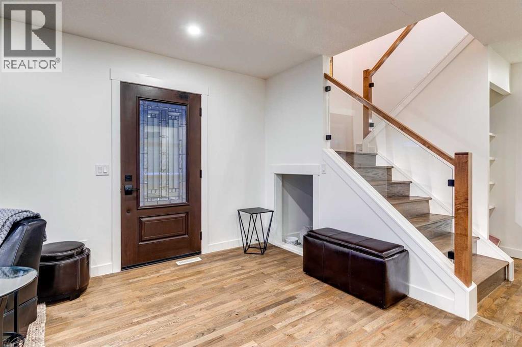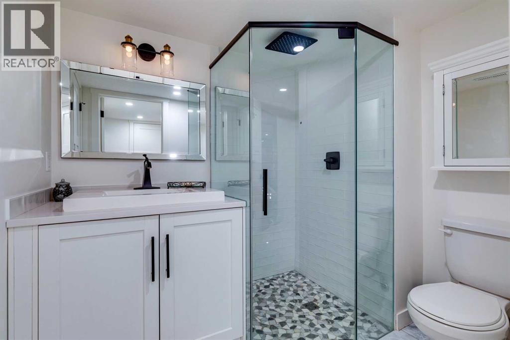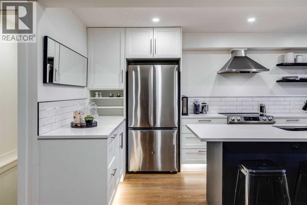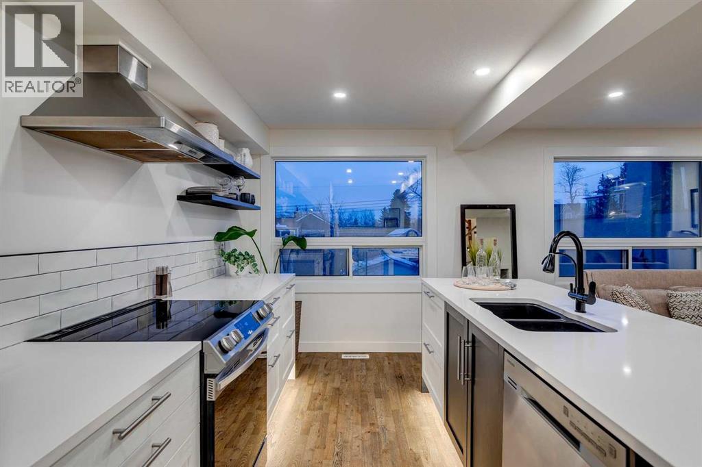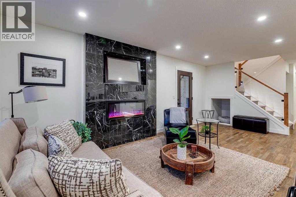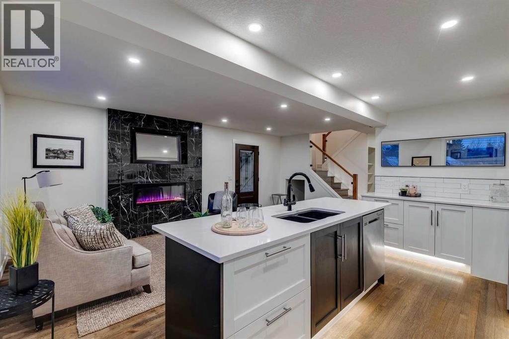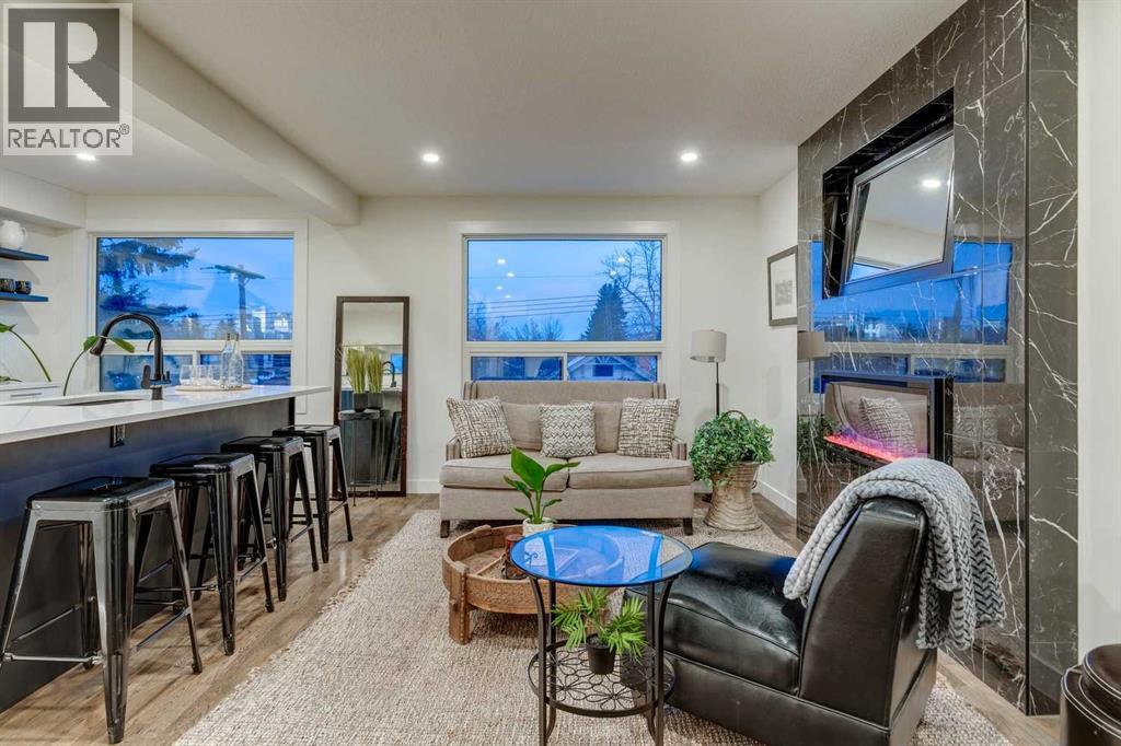 This fully renovated 1431 sq ft home offers the quintessential rooftop entertaining experience beneath the city skyline. Situated in Calgary’s highly sought-after inner-city community of Bankview, the home features an expansive 450 sq. ft. private rooftop patio boasting panoramic views extending across the downtown core. This rooftop space serves as an exceptional venue for any occasion, from summer soirées and barbecues to enjoying evening cocktails or relaxing during leisure time.The interior showcases a modern, sophisticated layout, comprising three bedrooms and two fully remodeled bathrooms, ideal for various uses such as co-habitation, a dedicated home office, or a creative studio. The open-concept kitchen is designed for social interaction, featuring quartz countertops, stainless steel appliances, and island seating that seamlessly connects with the bright, airy living room, complete with an electric fireplace and a stylish feature wall. The upper level provides access to two bedrooms and a full bathroom, both conveniently linked to the private rooftop retreat. The main floor includes an additional bedroom or office, a second full bathroom, and a practical mudroom.The walkout basement opens onto a landscaped yard, enhanced with mature fruit trees, providing an ideal setting for outdoor gatherings or tranquil repose. A heated garage offers enhanced versatility, suitable for use as a gymnasium, studio, or workspace. Additional amenities include two separate washer/dryer hookups located on the main floor and in the walkout basement.This home was extensively remodeled and renovated in the last 5 years which includes: All plumbing and electrical including new furnace and hot water tank. Completely remodeled kitchen and bathrooms, new composite deck and all exterior redone such as stucco, stairs, fence and landscaping. All windows and doors, interior exterior doors replaced, new flooring, all new drywall inside with new insulation inside the walls, LED pot-l ights with dimmers, stair and cabinet toe kick lighting and so much more. (id:63190)