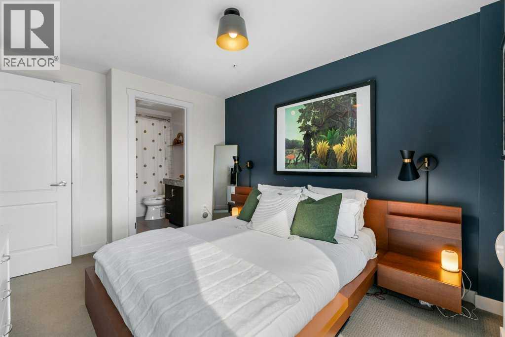 Welcome to a home where downtown living is redefined. Perfectly positioned in one of the Beltline's most coveted locations, this sophisticated corner unit offers a rare blend of city vibrancy and park-side tranquility. Built in 2015, this two-bedroom, two-bathroom residence showcases unobstructed city and stunning mountain views with a sun-drenched, southwest exposure that fills every room with natural light.Upon entry, you’re greeted by a sense of thoughtful design, from the generous storage to the secondary bath with its elegant, tiled shower and heated floors. The heart of this home is a beautifully appointed U-shaped kitchen, featuring full-sized GE stainless steel appliances, a sleek glass subway tile backsplash, and granite countertops. The oversized island offers ample seating, making it an ideal space for entertaining.The open living and dining areas are anchored by floor-to-ceiling windows and hardwood floors, creating a bright and expansive feel. A spacious primary bedroom is a true downtown rarity—easily accommodating a king-sized bed—and includes a custom-designed walk-in closet from California Closets to maximize storage. The primary ensuite is a private retreat, complete with a large soaker tub and heated floors.Enjoy warm summer days and breathtaking sunsets from your private west-facing patio, which overlooks Central Memorial Park and includes a gas line for your barbecue. The home is complete with in-suite laundry, A/C, titled parking, and two additional storage lockers.The Park elevates living with its exceptional amenities, including a massive common patio with a community garden, a guest suite, a well-equipped gym, and visitor parking with EV charging. This prime address puts you moments from both the tourism-worthy restaurants of 1 St SW and the vibrant culture of the Beltline and 4 St SW, offering a truly walkable lifestyle. (id:63190)