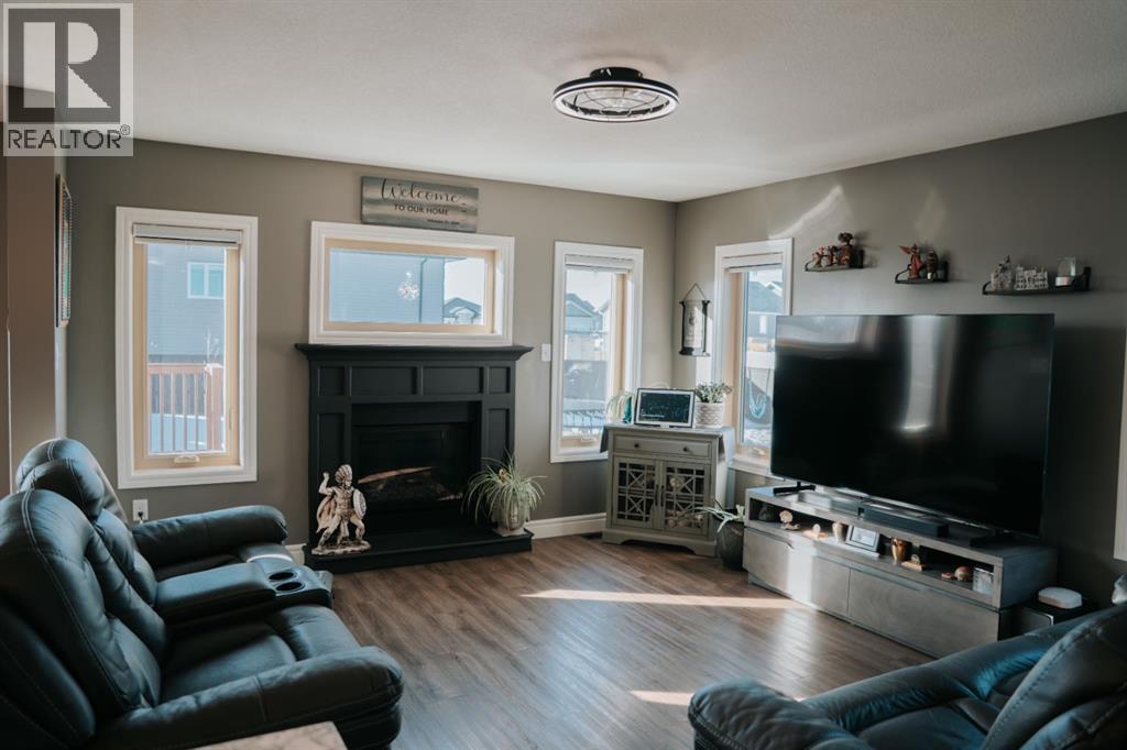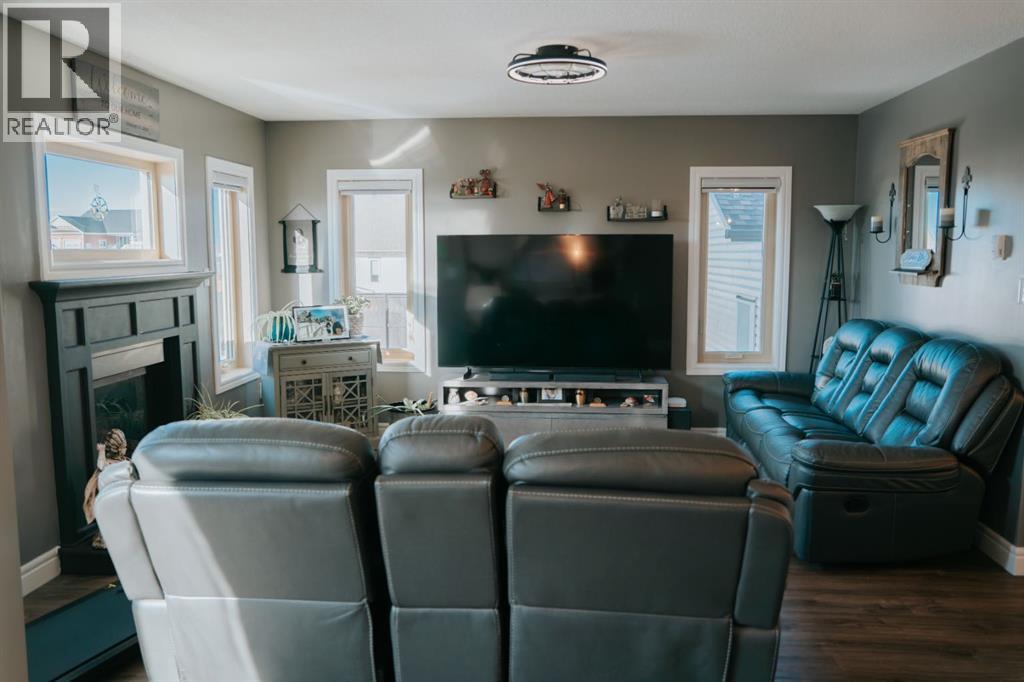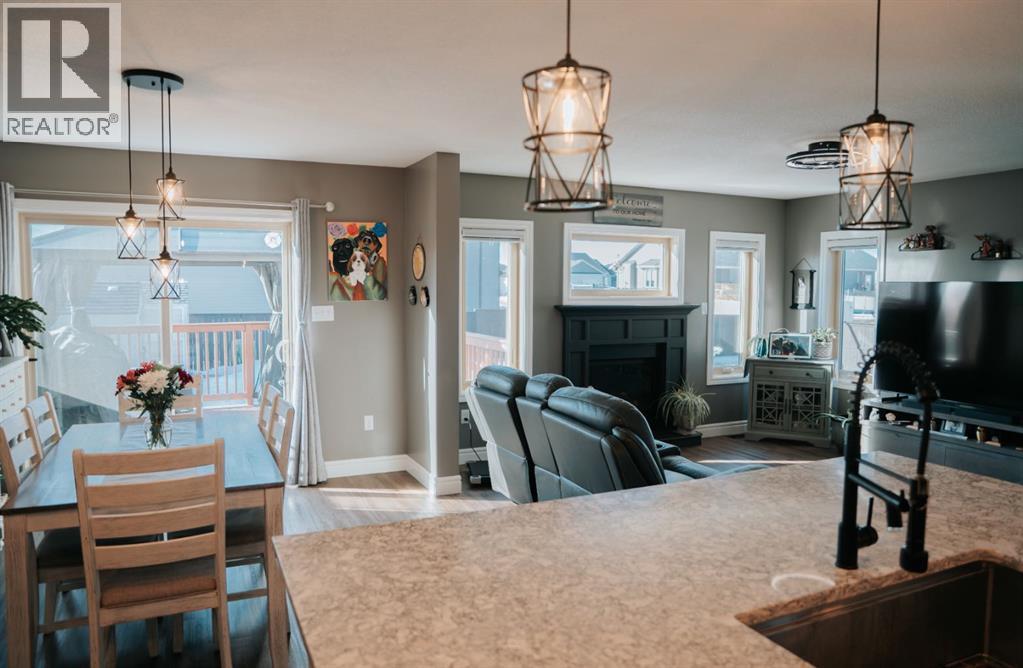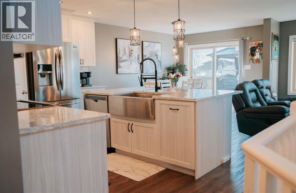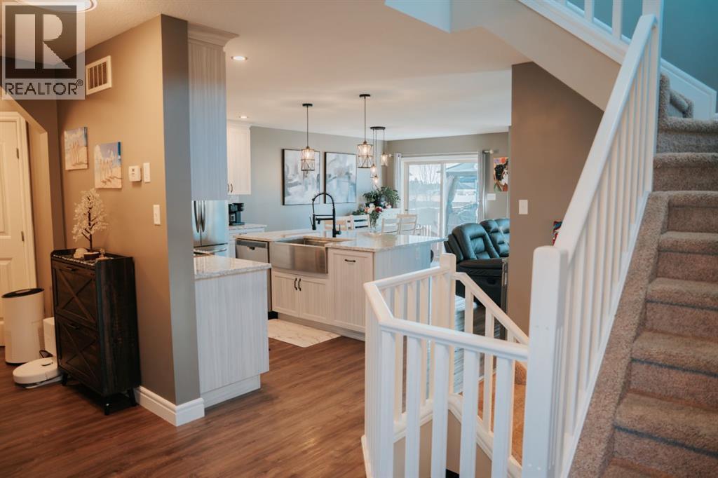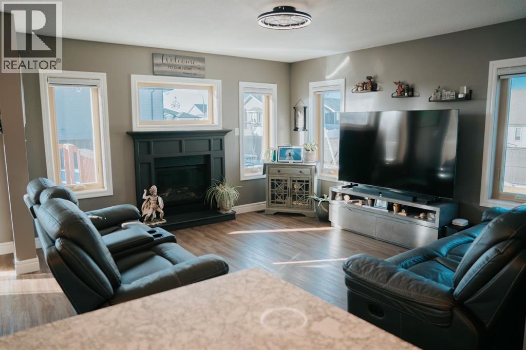 Welcome to this gorgeous 2-storey home nestled in one of Wainwright’s nicest areas, directly across from the Rotary outdoor park and the brand new K-6 Elementary School currently under construction! Thoughtfully designed and beautifully updated, this home offers the perfect blend of modern style, comfort, and family-friendly living.Step inside and be greeted by sunshine streaming through the open-concept main level. The stunning kitchen has been recently upgraded with brand-new cabinetry, sleek quartz countertops, and a spacious center island—perfect for meal prep, entertaining, or gathering with family. Luxury vinyl plank flooring flows throughout the main floor, adding both elegance and durability. The dining area provides direct access to the large deck, ideal for summer BBQs, while the inviting living room fireplace creates a warm, cozy atmosphere for relaxing evenings at home.Upstairs, prepare to be impressed by the spacious primary suite featuring a spa-inspired 5-piece ensuite and a generous walk-in closet. Two additional bedrooms, a 4-piece bathroom, and a conveniently located laundry area complete the second level—perfect for busy family life.The fully finished basement offers even more living space, including a large family room with a second fireplace, an additional bedroom, and a 4-piece bathroom—making it an excellent retreat for guests, teens, or extended family.Outside, the yard is fully landscaped and fenced, offering both privacy and space to enjoy. Additional features include central air conditioning, a heated double attached garage, and an impressive 32x40 detached heated garage—ideal for vehicles, toys, or the ultimate workshop setup.This move-in-ready home checks all the boxes for comfort, style, and functionality. Don’t miss your opportunity to own this exceptional property in one of Wainwright’s most desirable neighbourhood! (id:63190)