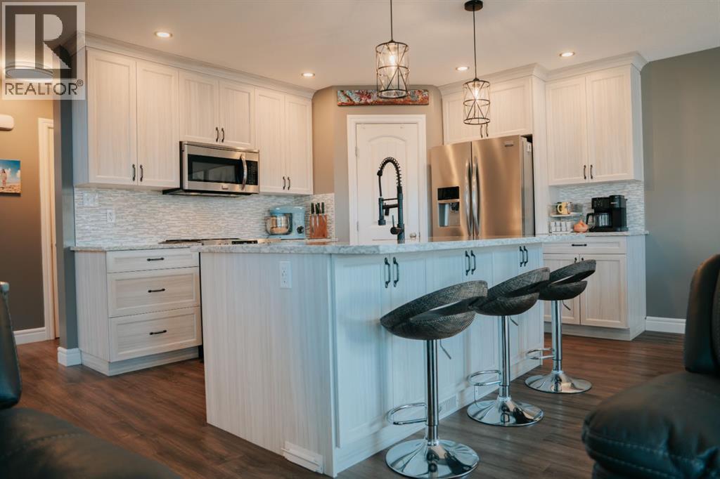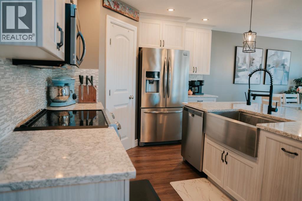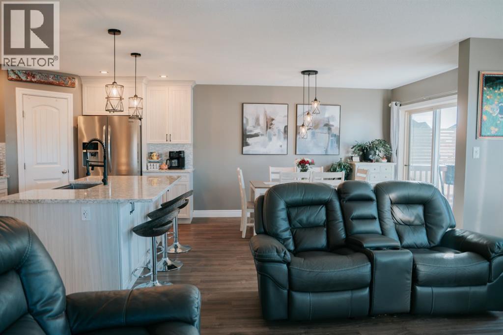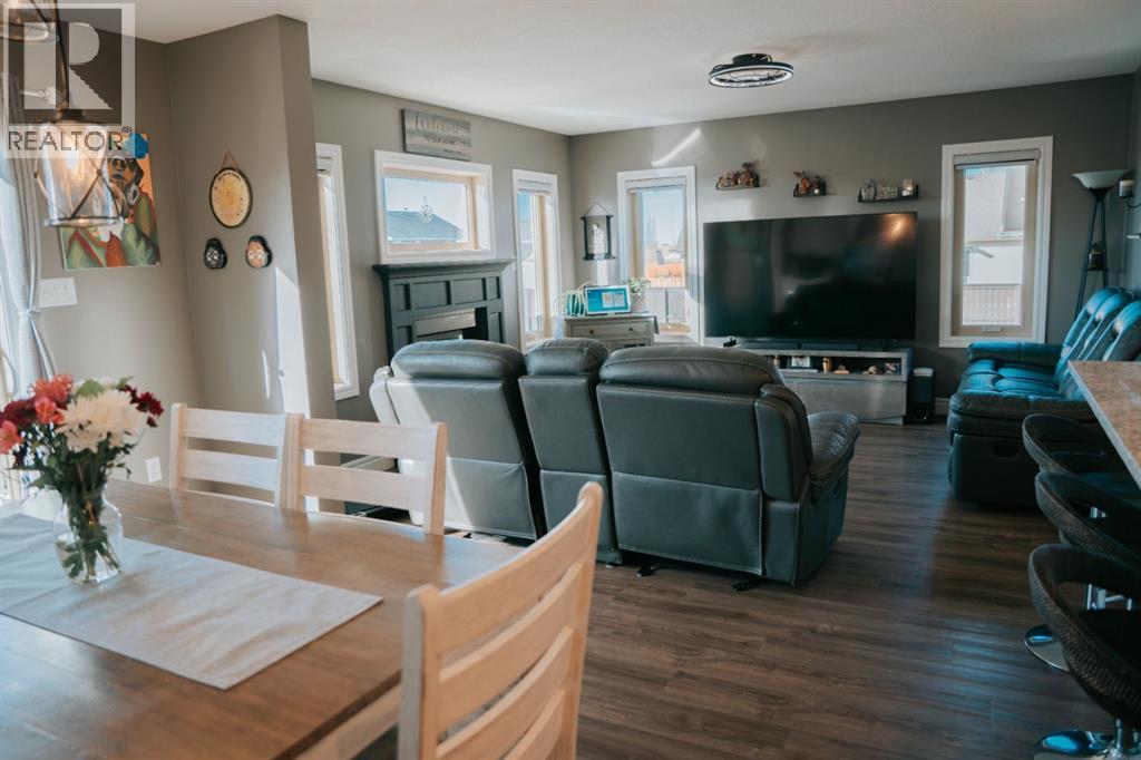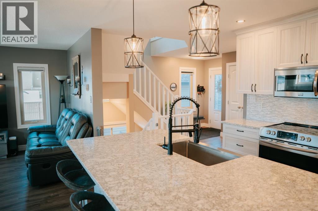 Welcome to this gorgeous 2-storey home nestled in one of Wainwright’s nicest areas, directly across from the Rotary outdoor park and the brand new K-6 Elementary School currently under construction! Thoughtfully designed and beautifully updated, this home offers the perfect blend of modern style, comfort, and family-friendly living.Step inside and be greeted by sunshine streaming through the open-concept main level. The stunning kitchen has been recently upgraded with brand-new cabinetry, sleek quartz countertops, and a spacious center island—perfect for meal prep, entertaining, or gathering with family. Luxury vinyl plank flooring flows throughout the main floor, adding both elegance and durability. The dining area provides direct access to the large deck, ideal for summer BBQs, while the inviting living room fireplace creates a warm, cozy atmosphere for relaxing evenings at home.Upstairs, prepare to be impressed by the spacious primary suite featuring a spa-inspired 5-piece ensuite and a generous walk-in closet. Two additional bedrooms, a 4-piece bathroom, and a conveniently located laundry area complete the second level—perfect for busy family life.The fully finished basement offers even more living space, including a large family room with a second fireplace, an additional bedroom, and a 4-piece bathroom—making it an excellent retreat for guests, teens, or extended family.Outside, the yard is fully landscaped and fenced, offering both privacy and space to enjoy. Additional features include central air conditioning, a heated double attached garage, and an impressive 32x40 detached heated garage—ideal for vehicles, toys, or the ultimate workshop setup.This move-in-ready home checks all the boxes for comfort, style, and functionality. Don’t miss your opportunity to own this exceptional property in one of Wainwright’s most desirable neighbourhood! (id:63190)