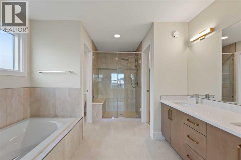 Welcome to South Shore and this Beautiful 6 Bedroom, 5 Bathroom home with a Triple car garage built by the award winning Prominent Homes! This Open concept home offers plenty of natural light throughout the home. The main floor features 9 feet high ceilings, Open to Above Family Room, Chic kitchen including Large Island and Built-in appliances. This home features a Spice Kitchen as well as there is a main floor Office/Bedroom as well as a bathroom with Shower. The Upper Level features TWO Huge Master Bedrooms including a Beautiful large Primary Bedroom with fantastic 5-piece Ensuite, the other primary bedroom has 3 piece ensuite plus 2 additional bedrooms for a total of 4 bedrooms upstairs plus a Bonus Room and Laundry Room. The fully developed basement has a Separate Enterance, Another Bedroom and Full Bathroom plus a Bar. Call to book your private showing today! (id:63190)