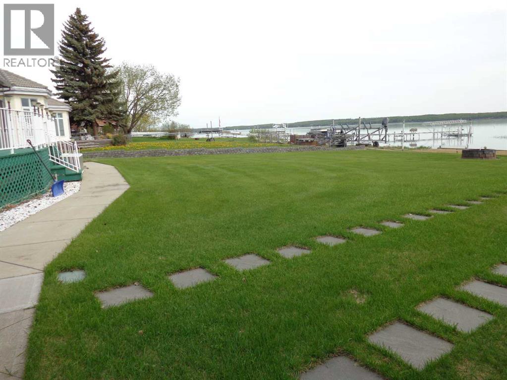Welcome to Lakefront living at its finest in the Summer Village of Norglenwold on Sylvan Lake. Spanning over 4,400 square feet, this exceptional two-storey residence offers timeless architecture, refined comfort, and unobstructed water views from the moment you arrive. With a private beach area and personal boat dock, this is more than a home. It is a waterfront lifestyle. The full brick exterior sets a tone of lasting quality, while inside, expansive living spaces are designed to host and gather. A sunken living room creates warmth and character, flowing into a grand dining space with soaring ceilings and garden doors that open to a spacious deck overlooking the lake. The bright European inspired kitchen features crisp white cabinetry, generous storage, and a welcoming eat in area perfect for everyday living and weekend entertaining. The main floor includes two generous bedrooms, a full bath, a private ensuite, convenient laundry, and a welcoming front entry that makes guests feel instantly at home. Upstairs, twin staircases lead to an impressive retreat space. A large family room with dance floor, library or studio area, wet bar with fridge, and two additional bedrooms create endless possibilities for entertaining or relaxing. Above the garage, a heated bonus room offers flexibility for guests, a home office, or creative pursuits. The fully finished lower level expands your living space even further with a spacious recreation and games room, wine room, office, full bath, and multiple finished storage areas. Outdoors, the property truly shines. Mature landscaping with underground sprinklers, three storage sheds, RV parking, and a dedicated dump station ensure both comfort and convenience. Spend your days boating from your private dock, relaxing on your secluded beach, or enjoying quiet evenings overlooking the water away from the public shoreline. The heated 24’ by 30’ garage includes a floor drain, and the decorative concrete driveway provides ample space for vehicles and guests. Opportunities like this are rare. A true waterfront property in one of Central Alberta’s most desirable lake communities, offering space, privacy, and an unmatched Sylvan Lake lifestyle. (id:63190)