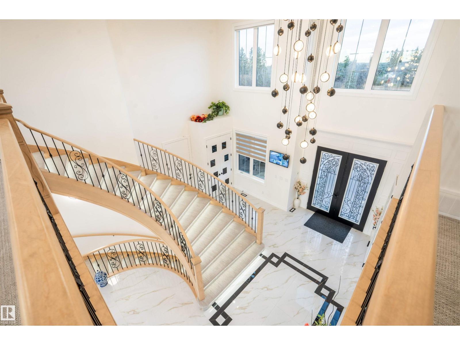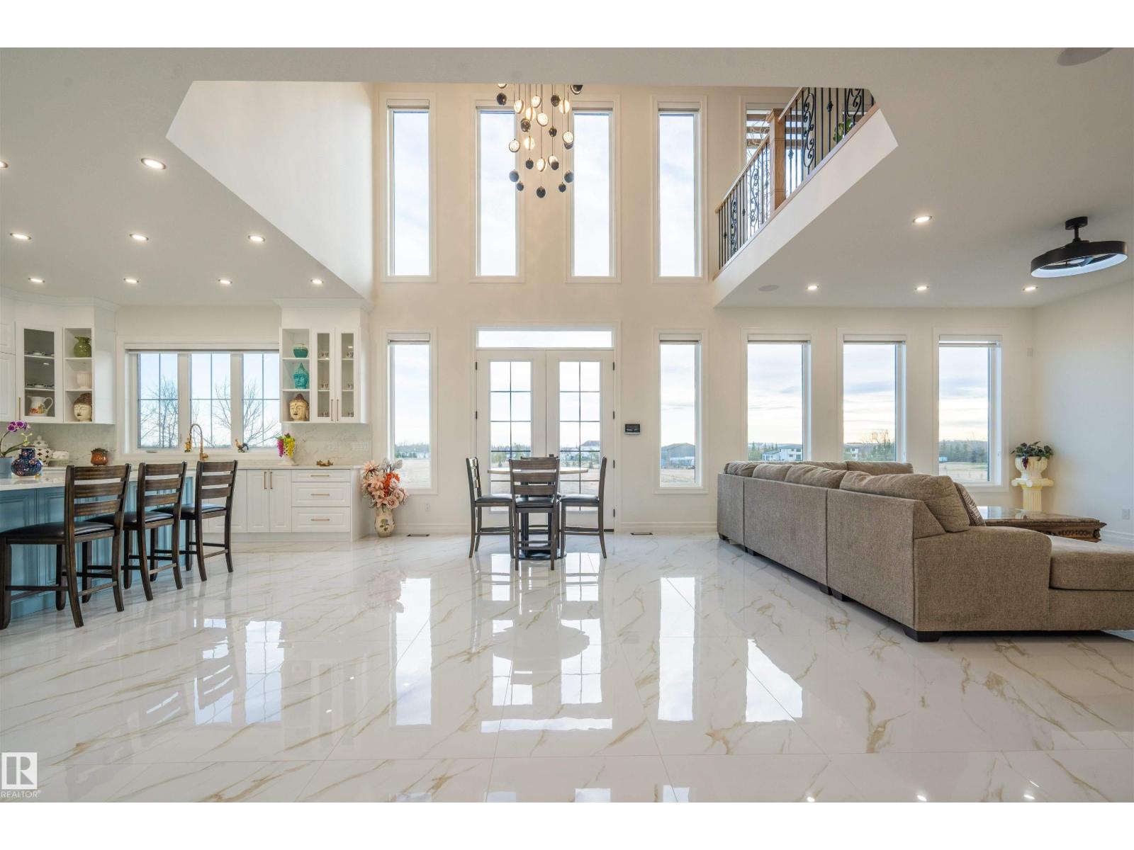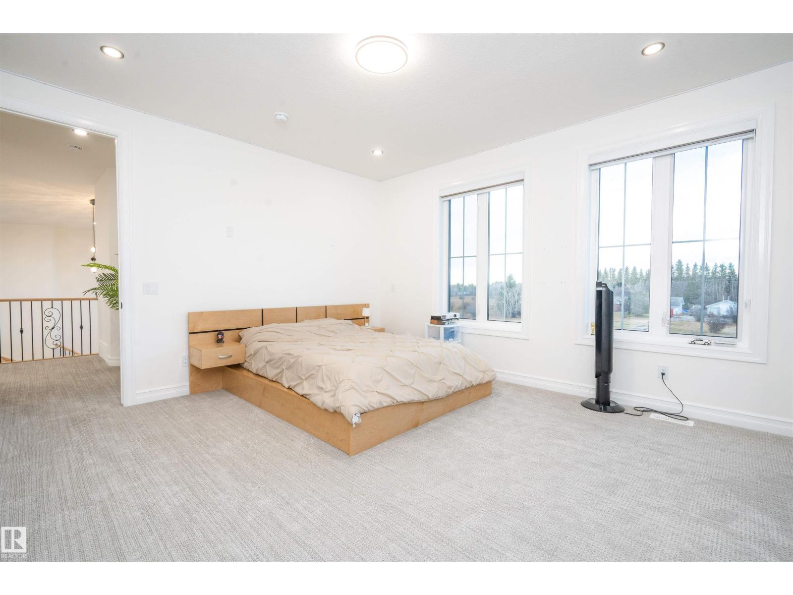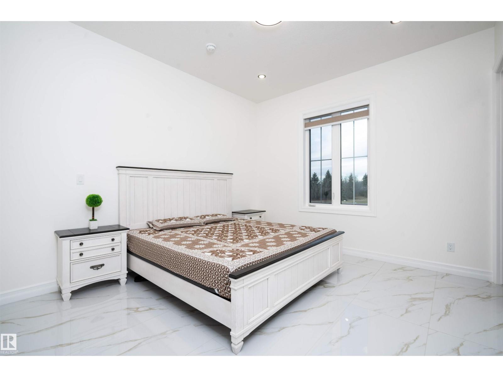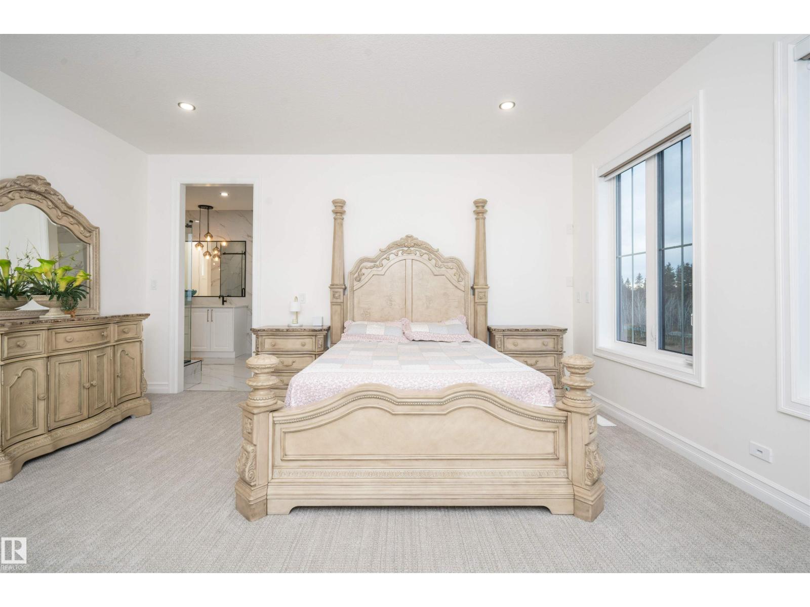Welcome to this stunning custom estate in Beau Vista North, mins from Edmonton & Beaumont! The main foyer greets you with designer tile, warm light, and space to welcome guests. This luxury home features HYDRONIC heating in both GARAGES, Heated flr with CERAMIC TILES on main & basement, 8 beds, 5.5 baths, over 6340 sq. ft. of living space, & finished basement with 2 beds, full bath, rec room, a separate entry, kitchen/laundry rough-ins—perfect for guests. Main flr boasts grand kitchen, spice kitchen, great room, laundry, den/bdrm, & bdrm w/full bath. Upstairs: 4 big bdrms incl lavish primary, 3 baths, laundry, fam rm. Home has curved stairs, 8' doors, LED lights, speakers, security, 400 amp service for future shop/storage, 6-car garage. Designed for style, function & countryside living mins from city! 2.50 Acres land with nearly 50% recently landscaped with 500 cu yd of top soil & hydroseeding. ideal for big families or those craving luxury paired with country charm. Don’t miss this rare opportunity! (id:63190)