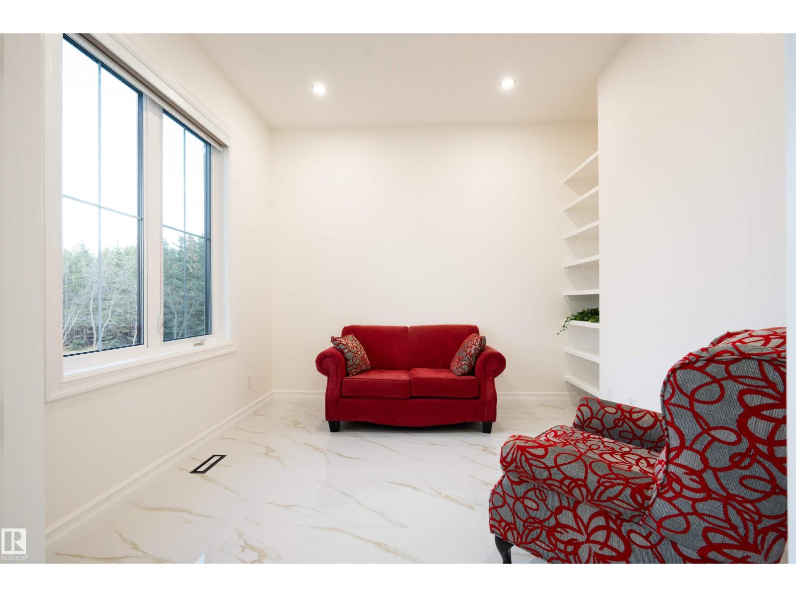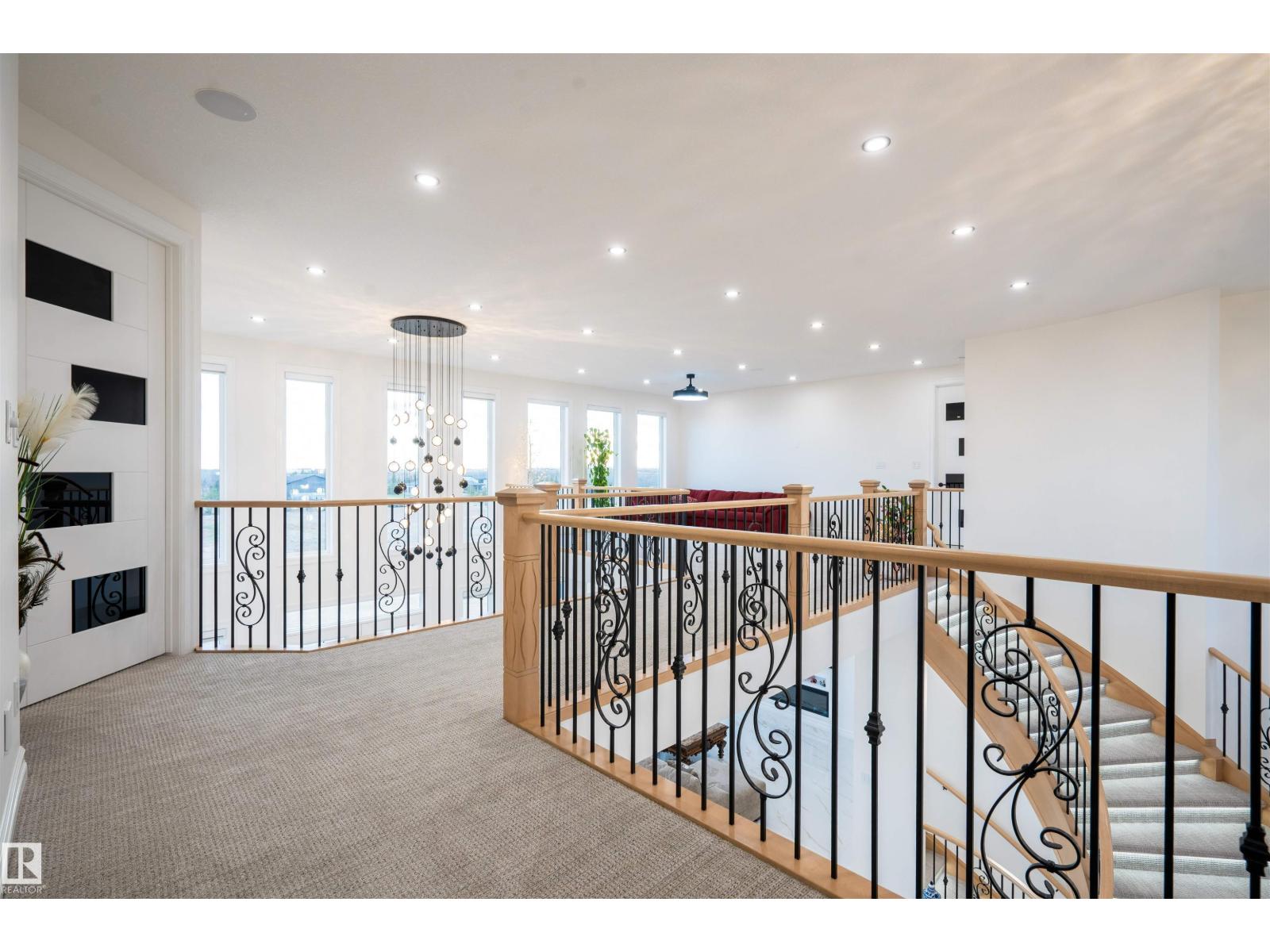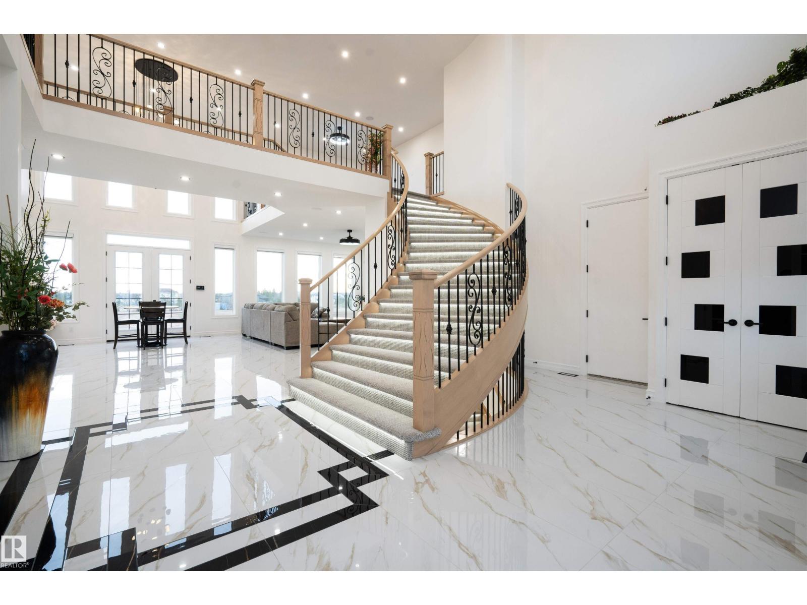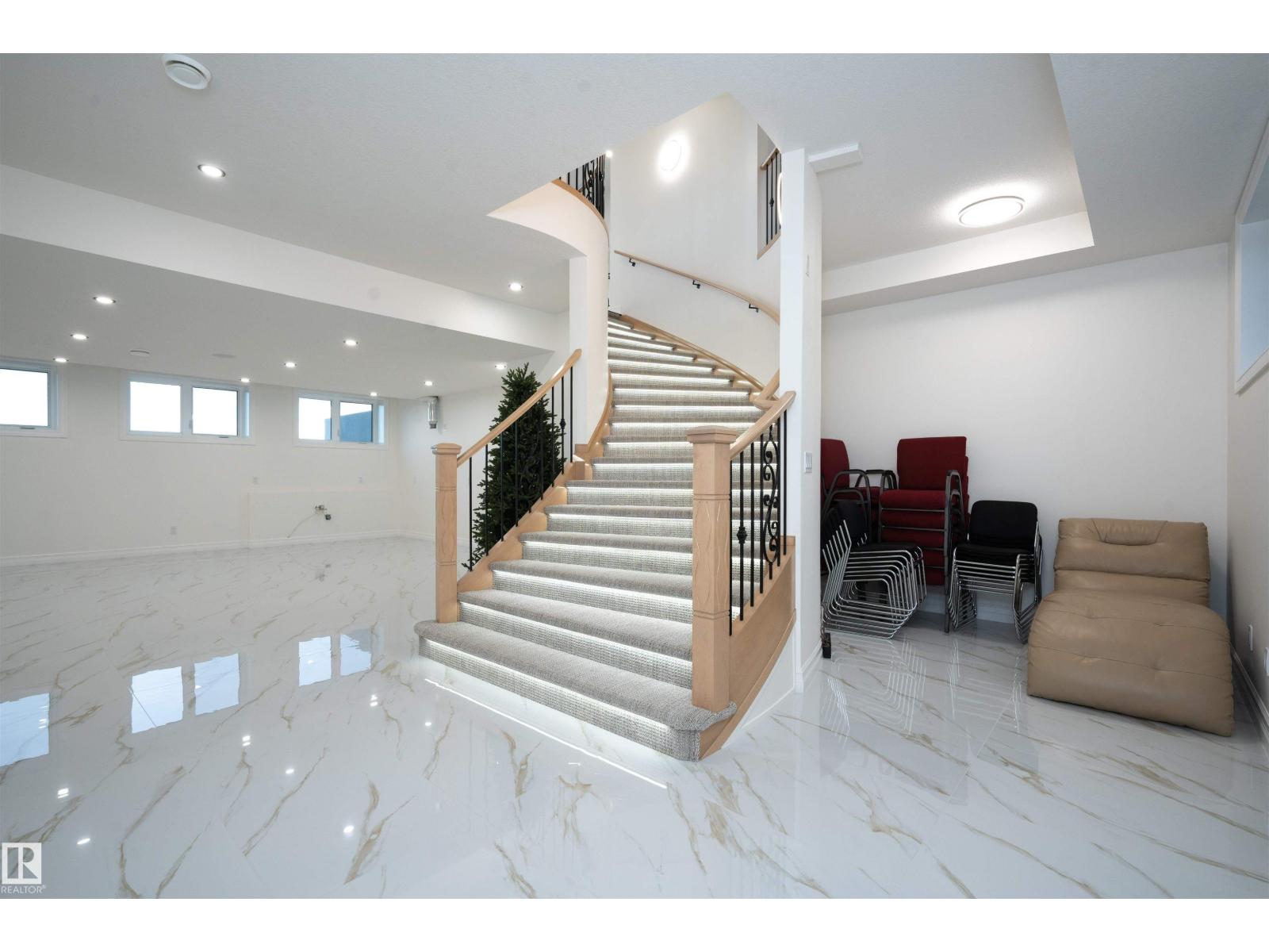 Welcome to this stunning custom estate in Beau Vista North, mins from Edmonton & Beaumont! The main foyer greets you with designer tile, warm light, and space to welcome guests. This luxury home features HYDRONIC heating in both GARAGES, Heated flr with CERAMIC TILES on main & basement, 8 beds, 5.5 baths, over 6340 sq. ft. of living space, & finished basement with 2 beds, full bath, rec room, a separate entry, kitchen/laundry rough-ins—perfect for guests. Main flr boasts grand kitchen, spice kitchen, great room, laundry, den/bdrm, & bdrm w/full bath. Upstairs: 4 big bdrms incl lavish primary, 3 baths, laundry, fam rm. Home has curved stairs, 8' doors, LED lights, speakers, security, 400 amp service for future shop/storage, 6-car garage. Designed for style, function & countryside living mins from city! 2.50 Acres land with nearly 50% recently landscaped with 500 cu yd of top soil & hydroseeding. ideal for big families or those craving luxury paired with country charm. Don’t miss this rare opportunity! (id:63190)