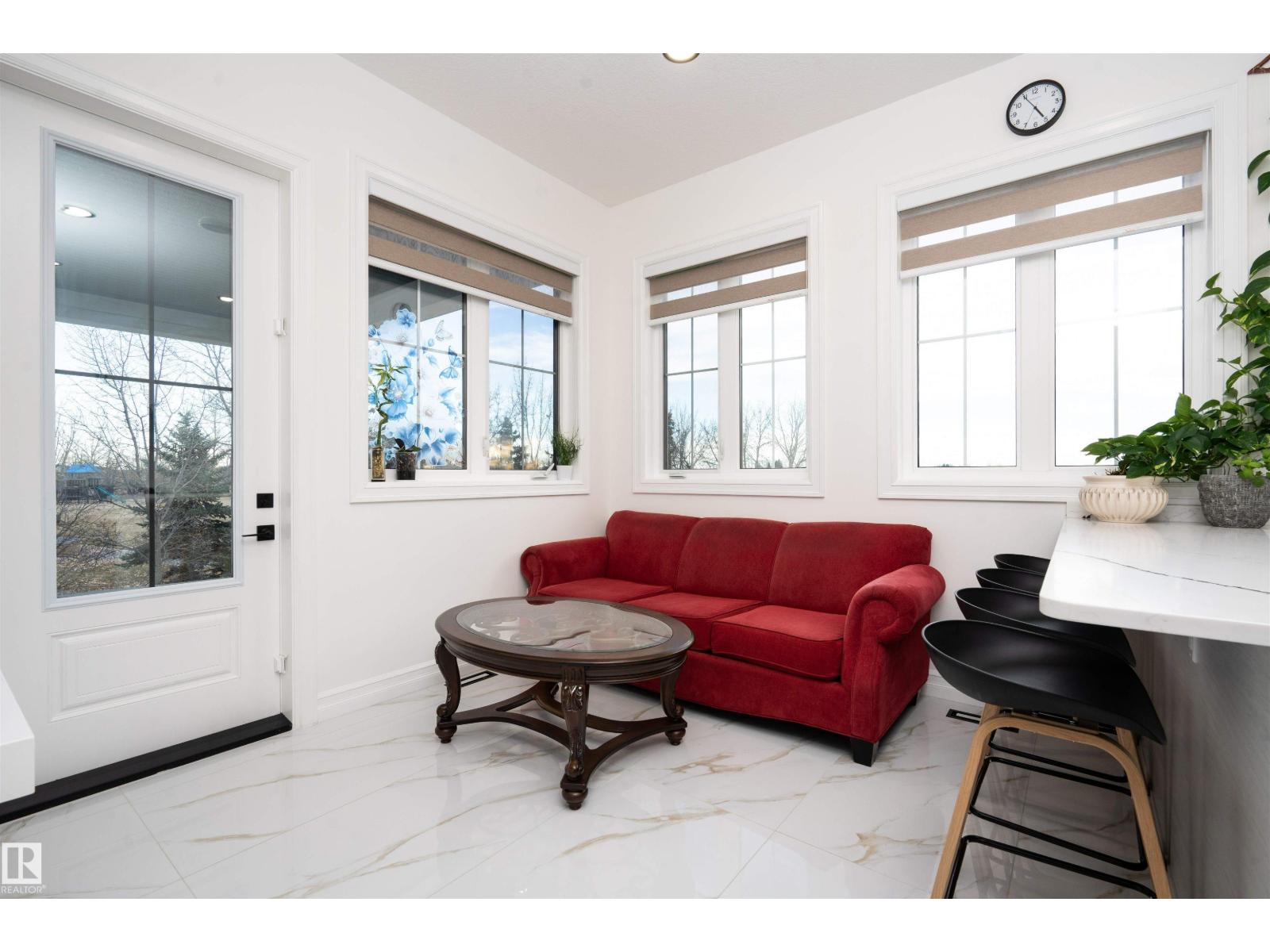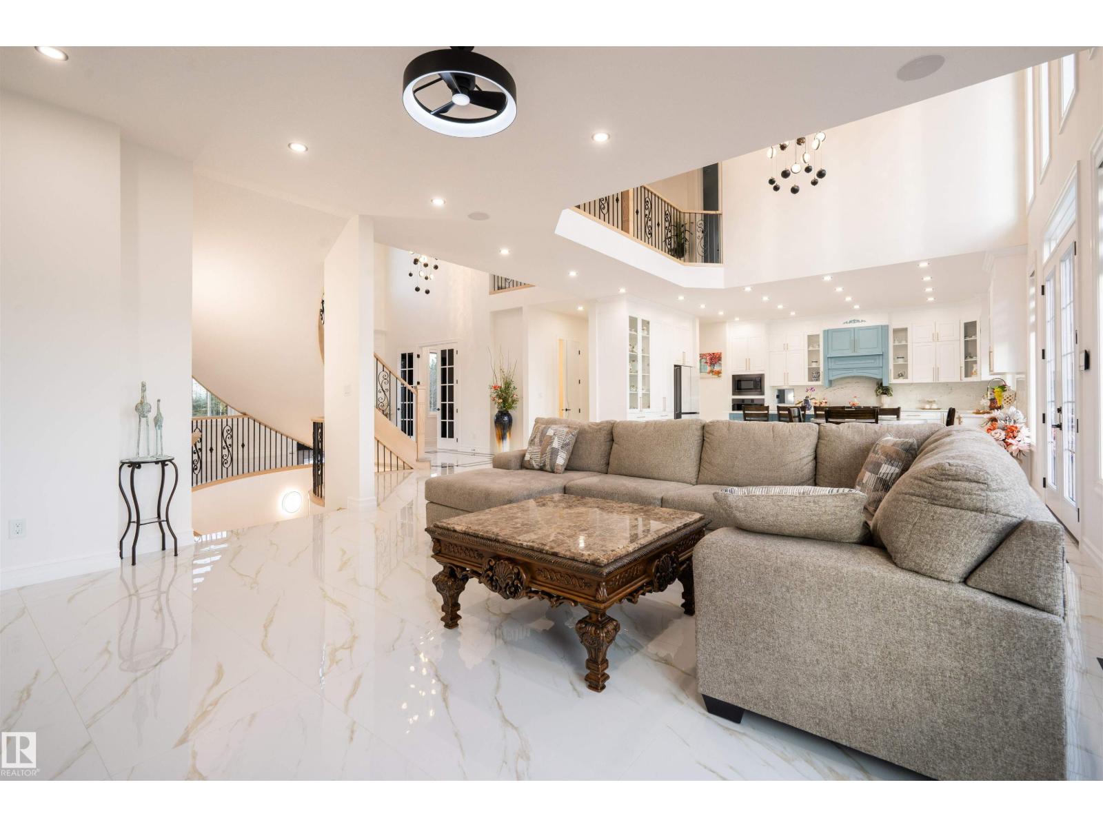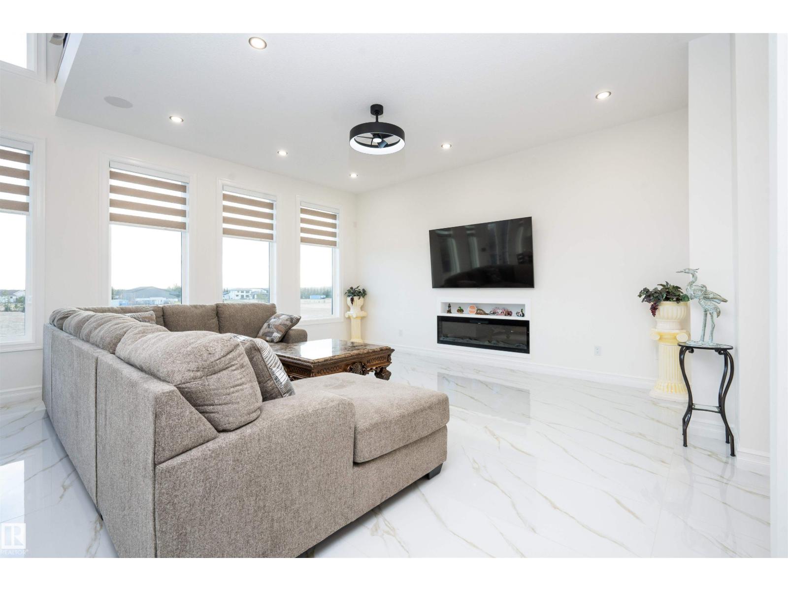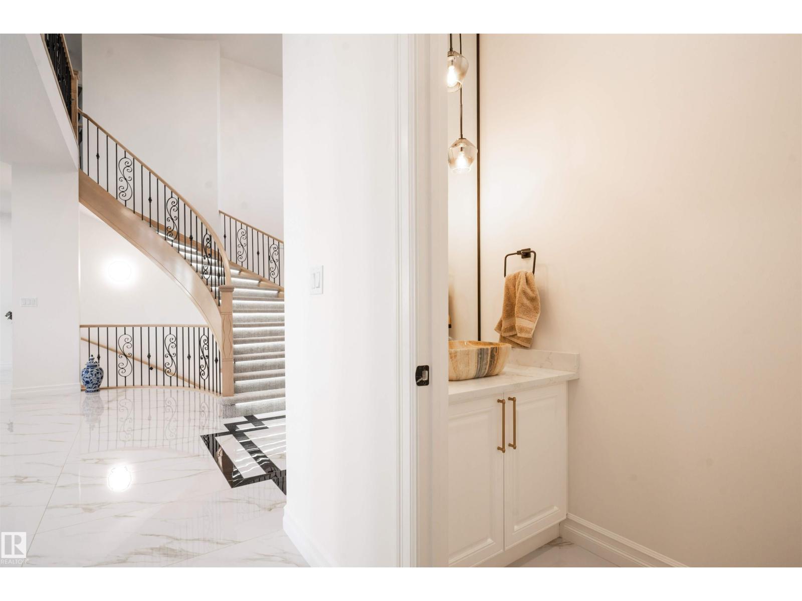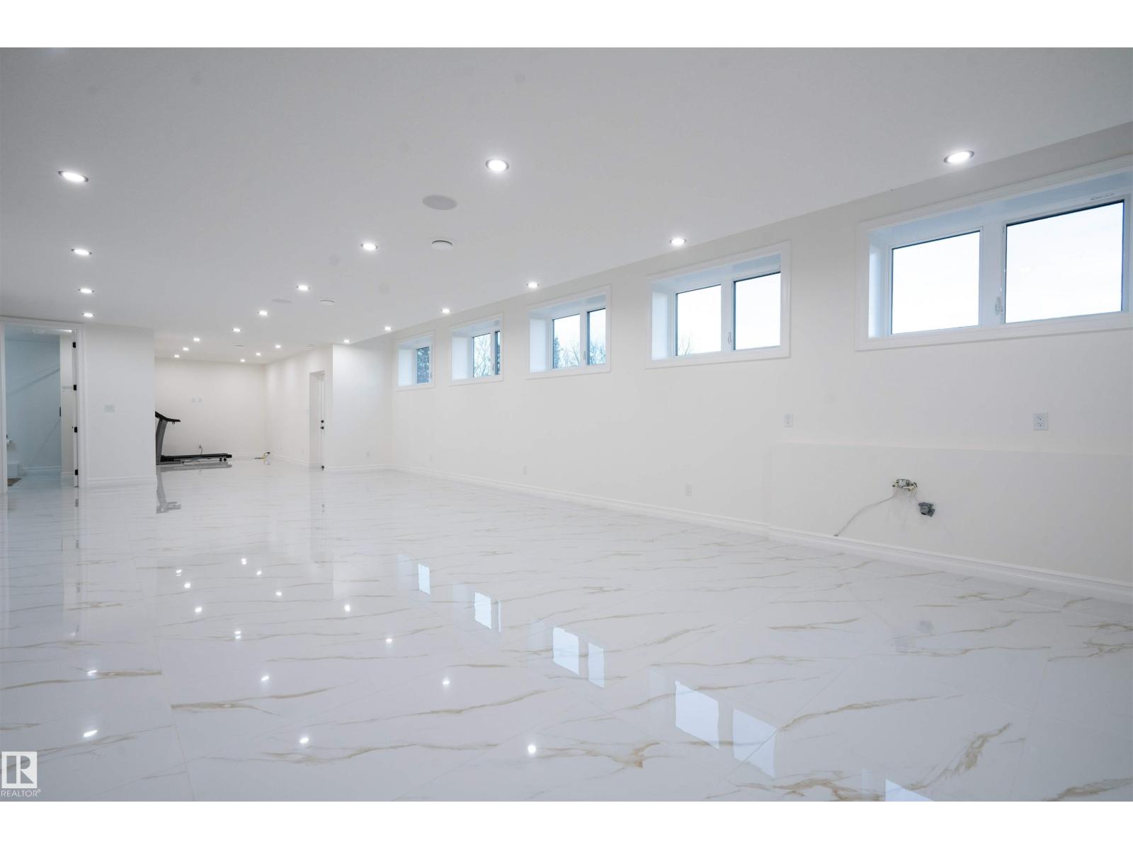 Welcome to this stunning custom estate in Beau Vista North, mins from Edmonton & Beaumont! The main foyer greets you with designer tile, warm light, and space to welcome guests. This luxury home features HYDRONIC heating in both GARAGES, Heated flr with CERAMIC TILES on main & basement, 8 beds, 5.5 baths, over 6340 sq. ft. of living space, & finished basement with 2 beds, full bath, rec room, a separate entry, kitchen/laundry rough-ins—perfect for guests. Main flr boasts grand kitchen, spice kitchen, great room, laundry, den/bdrm, & bdrm w/full bath. Upstairs: 4 big bdrms incl lavish primary, 3 baths, laundry, fam rm. Home has curved stairs, 8' doors, LED lights, speakers, security, 400 amp service for future shop/storage, 6-car garage. Designed for style, function & countryside living mins from city! 2.50 Acres land with nearly 50% recently landscaped with 500 cu yd of top soil & hydroseeding. ideal for big families or those craving luxury paired with country charm. Don’t miss this rare opportunity! (id:63190)