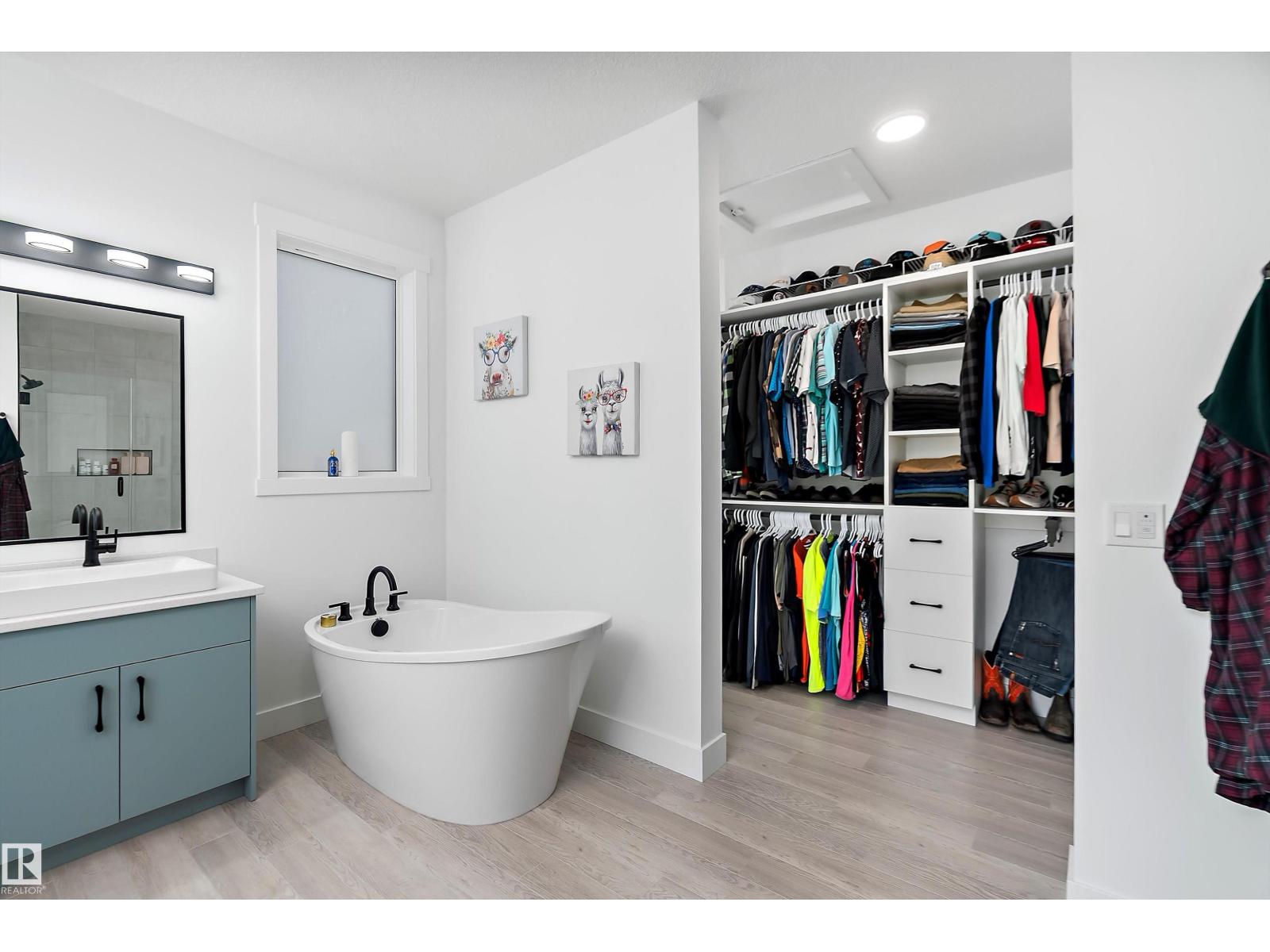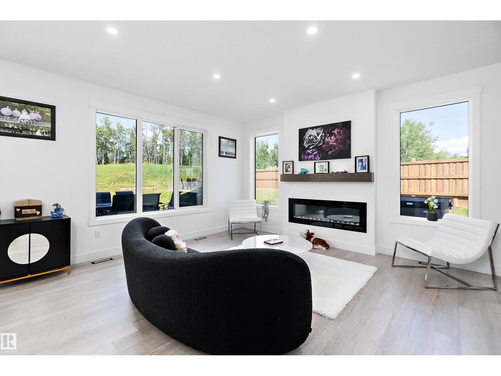 This custom-built HRD home, situated on one of the largest lots at the Estates at Waters Edge will be sure to take your breath away! From the fully loaded triple car garage with EV hook up & 2-piece bath, to the epic primary bedroom & closet with its own dedicated floor - this home is stunning. The upstairs primary bedroom closet is equipped with California closets vaulted ceilings and a centre island for storage. The primary also has soaring windows, vaulted ceilings & a thoughtfully designed laundry chute. The grand entrance leads to the open concept living space & kitchen that overlook the massive partially fenced backyard. The hidden pantry doors are a delightful surprise as you enter the giant pantry with mudroom access. The mudroom can be entered through living area as well for added convenience. The basement features 2 large bedrooms, laundry, 4-piece bath, huge rec room & the cherry on top is the hidden media room tucked away behind barn doors! With quick access to HWY 43 - this one is a must see! (id:63190)