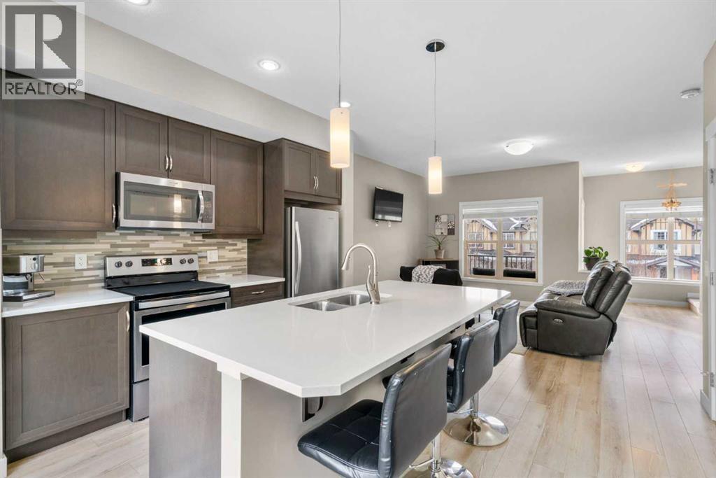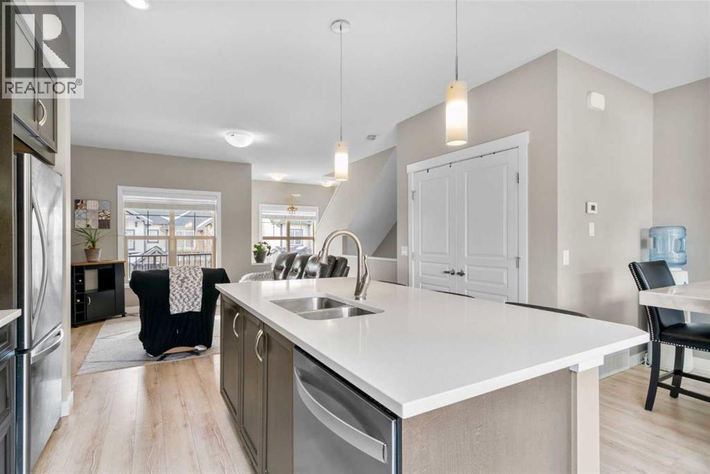 This beautiful and well-kept home is nestled in the family oriented community of Heartland on the west end of Cochrane. It offers the perfect blend of comfort, convenience, and stunning natural beauty. Enjoy picturesque mountain views as you drive into the subdivision while having quick access to the Bow River, where kilometer's of scenic walking paths invite you to explore. Heartland also features a brand new dog park, ideal for pet lovers and outdoor enthusiasts alike! Step inside to your mudroom area where you have access to your heated double garage and laundry, before walking upstairs to discover a bright and inviting open-concept main floor, perfect for entertaining. The spacious living area flows seamlessly into the well-equipped kitchen. It features stainless steel appliances, quartz countertops, plenty of cabinet space, and easy access to the balcony making it perfect for a morning coffee or evening relaxation. Upstairs, you’ll find two generously sized bedrooms and a 4-piece bathroom. The primary suite serves as your private retreat, featuring a large closet and a 4-piece ensuite. Located just steps from a park this home is perfect for kids and families, and is surrounded by community amenities, scenic views, and abundant outdoor recreational opportunities. Whether you’re starting your next chapter or looking for a place to grow, this home in Heartland delivers everything you could wish for in a family property. Don’t miss out—book your showing today and experience Heartland living for yourself! (id:63190)