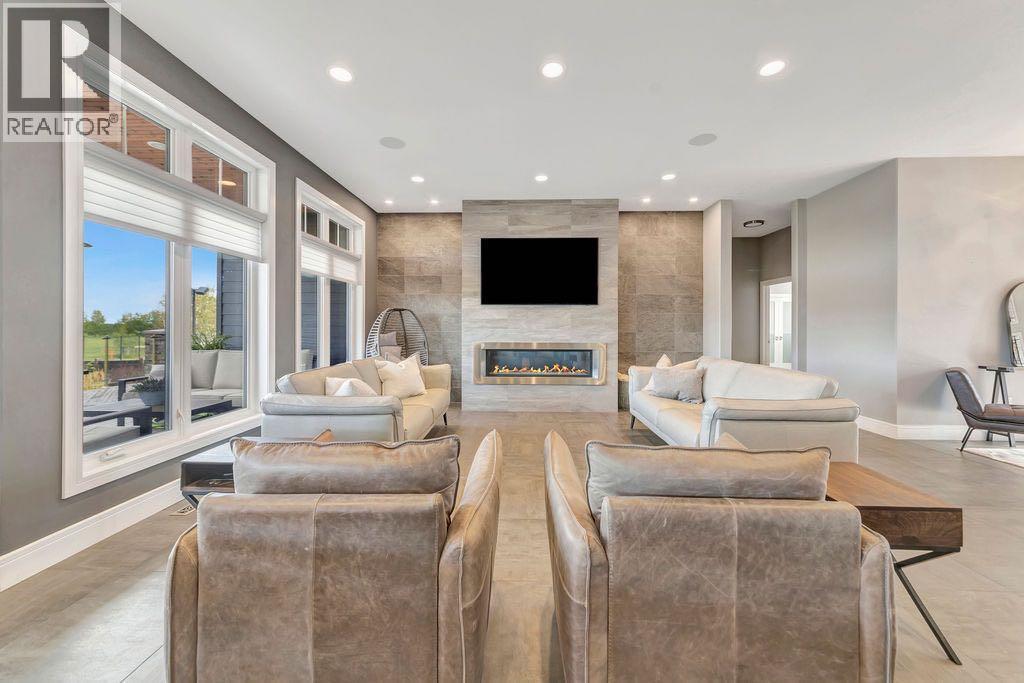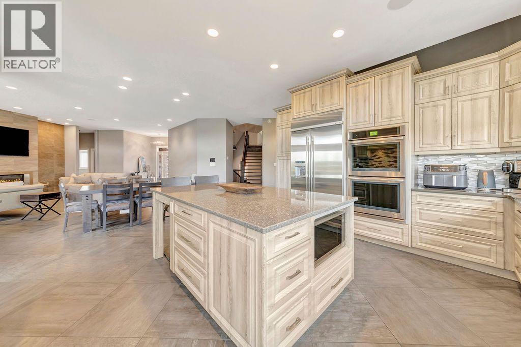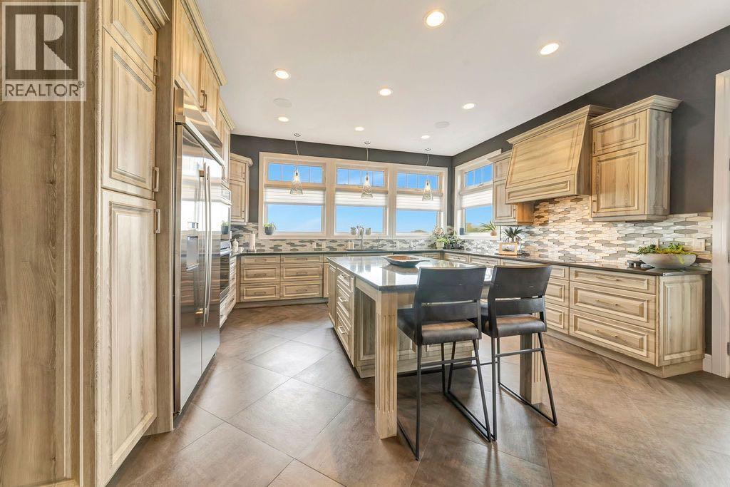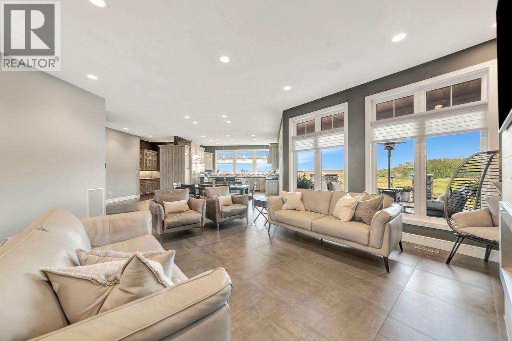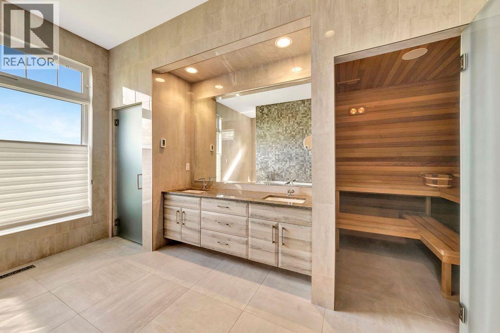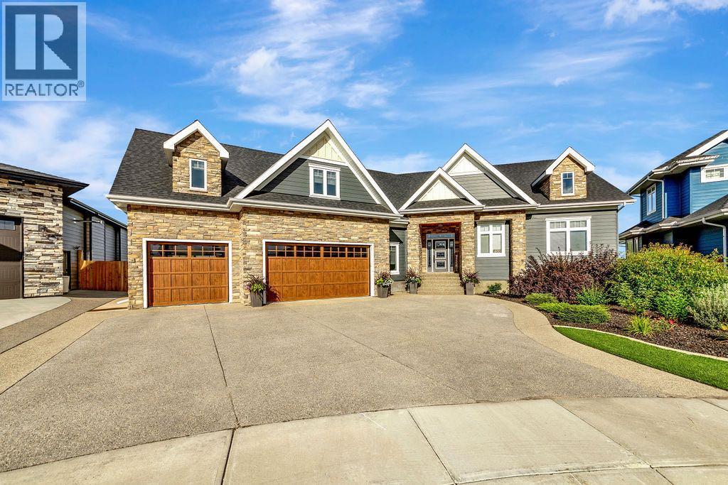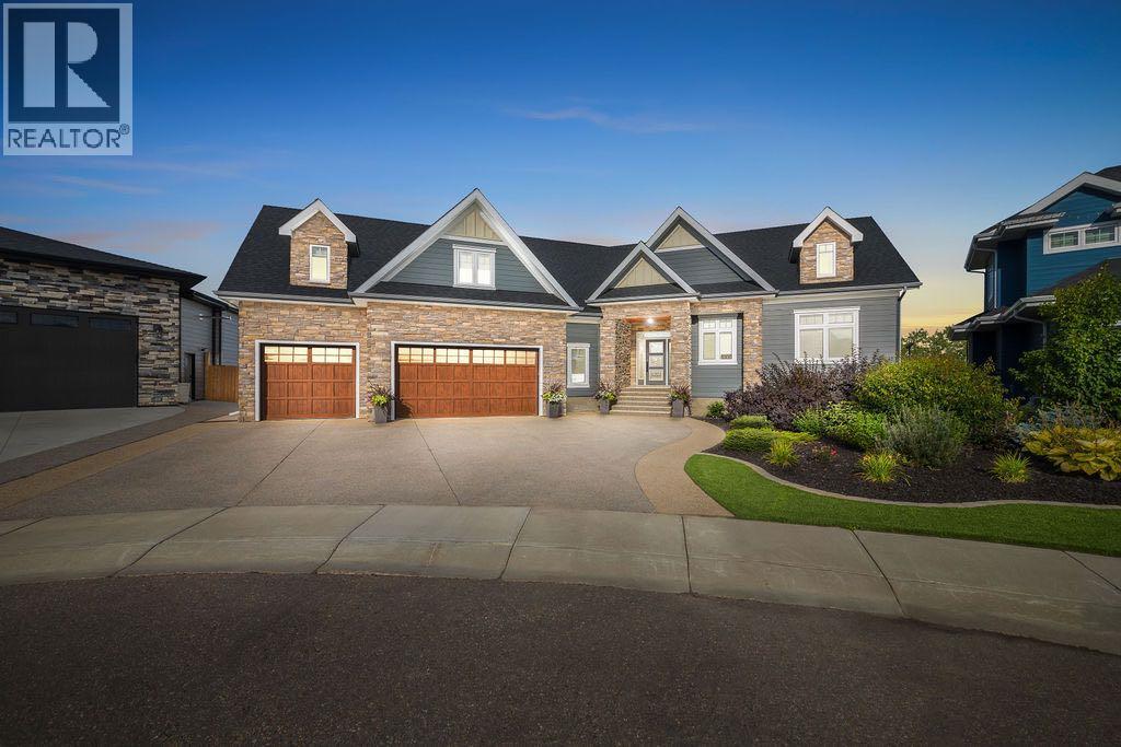 Tucked quietly into a cul-de-sac beside Bud Miller Park, 6308 20A Street Close offers a rare blend of privacy, craftsmanship, and refined living in one of Lloydminster’s most sought-after settings. Thoughtfully positioned on the lot to maximize seclusion, this custom residence is framed by manicured landscaping, an exposed aggregate pad, and a striking back deck with steel railings and glass panels. Hardy board siding, cultured stone accents, and triple-pane windows speak to a home built with intention and enduring quality.Inside, soaring 10-foot ceilings and a dramatic solid oak open two-storey stairwell set the tone. The great room is anchored by a floor-to-ceiling tiled gas fireplace, creating warmth and architectural presence. Heated tile floors, in-floor heating throughout the main level, loft, basement, and garage, along with dual central air conditioning, ensure comfort in every season. Solid-core doors with glass hardware, custom blinds, recessed lighting, and a statement burnished brass chandelier elevate each space with quiet sophistication.The kitchen balances everyday function with elevated entertaining. Quartz countertops, custom cabinetry, Jenn-Air stainless steel appliances—including an induction cooktop and double wall ovens—and a fully appointed butler’s pantry create a space designed to gather.The primary suite is a private retreat featuring a personal sauna, expansive 13-foot dual-entry tiled shower, deep soaker tub, generous dual vanity, and an oversized walk-in closet with custom shelving. The north bedroom wing offers three additional spacious bedrooms with large closets and a beautifully finished four-piece bath.Downstairs, custom cabinetry, a quartz-appointed wet bar with Silgranit sink, wine rack, and mini-fridge, a dedicated gym space, and the potential for two additional bedrooms provide flexibility for a growing family. A concrete cold room offers ideal storage for wine and valuables.With a hydronic furnace system, on-demand boiler, reverse osmosis, water softener, and a meticulously organized utility space, every detail has been considered. The triple attached garage features in-floor heat, stone coat flooring, hot and cold taps, and backyard access.Quietly set beside nature and finished with intention, this is a residence that feels composed, elevated, and effortlessly livable — a rare offering in our market, designed for a full and beautiful life. (id:63190)
