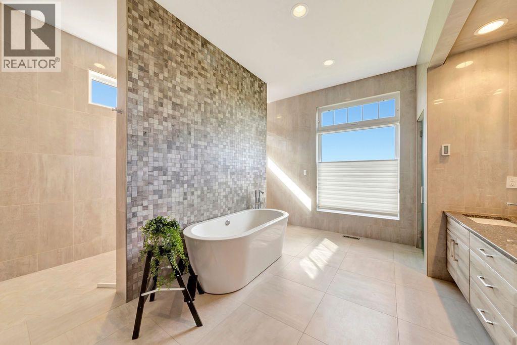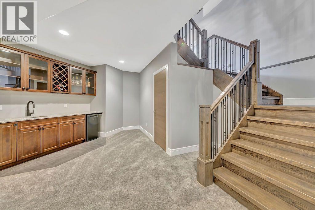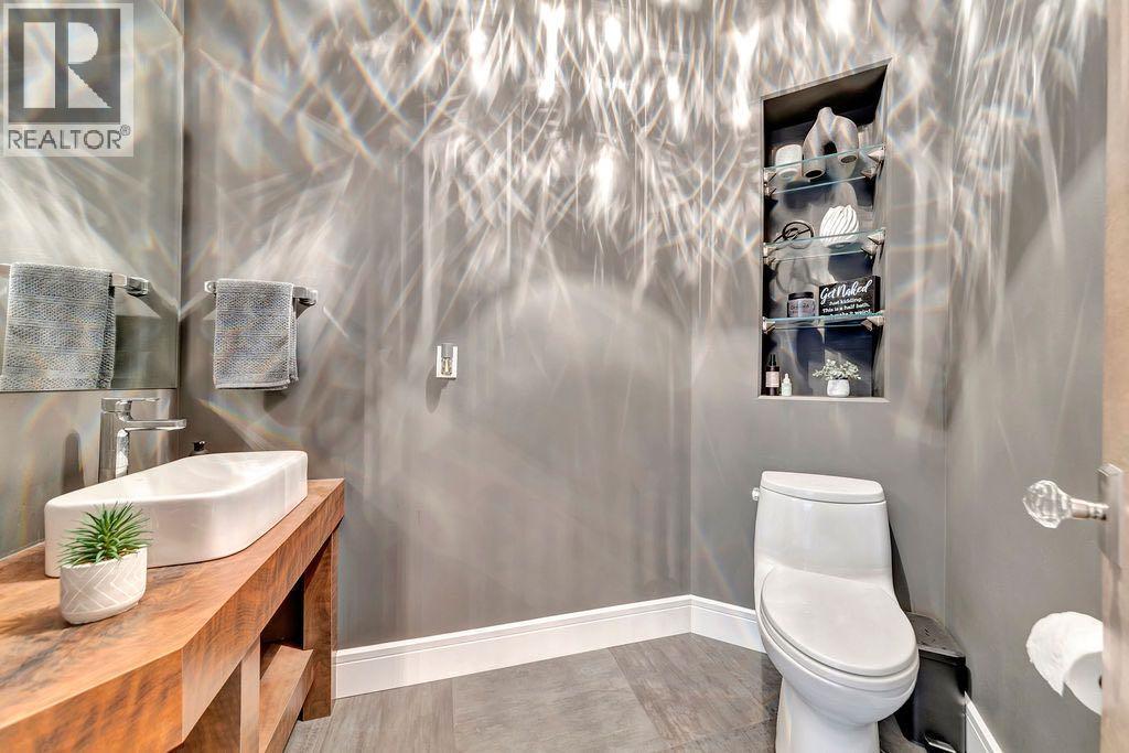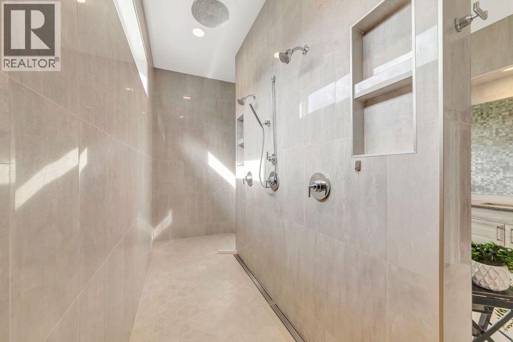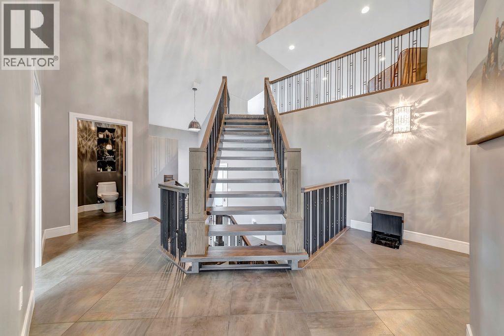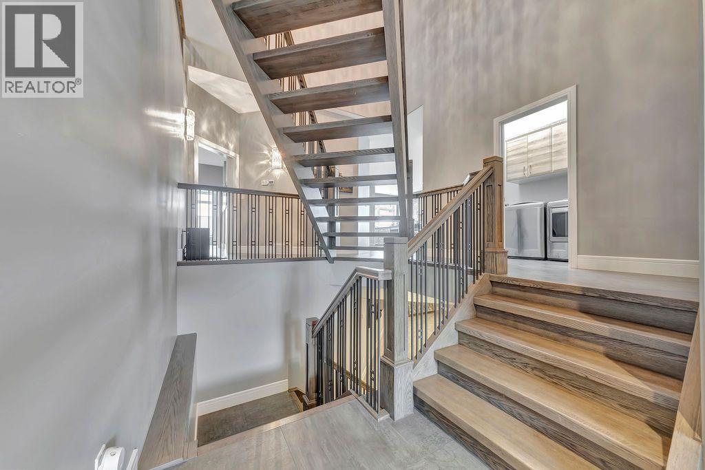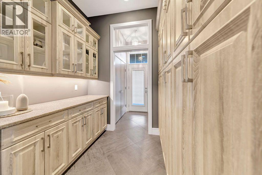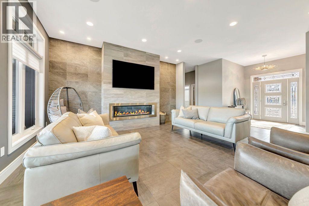 Tucked quietly into a cul-de-sac beside Bud Miller Park, 6308 20A Street Close offers a rare blend of privacy, craftsmanship, and refined living in one of Lloydminster’s most sought-after settings. Thoughtfully positioned on the lot to maximize seclusion, this custom residence is framed by manicured landscaping, an exposed aggregate pad, and a striking back deck with steel railings and glass panels. Hardy board siding, cultured stone accents, and triple-pane windows speak to a home built with intention and enduring quality.Inside, soaring 10-foot ceilings and a dramatic solid oak open two-storey stairwell set the tone. The great room is anchored by a floor-to-ceiling tiled gas fireplace, creating warmth and architectural presence. Heated tile floors, in-floor heating throughout the main level, loft, basement, and garage, along with dual central air conditioning, ensure comfort in every season. Solid-core doors with glass hardware, custom blinds, recessed lighting, and a statement burnished brass chandelier elevate each space with quiet sophistication.The kitchen balances everyday function with elevated entertaining. Quartz countertops, custom cabinetry, Jenn-Air stainless steel appliances—including an induction cooktop and double wall ovens—and a fully appointed butler’s pantry create a space designed to gather.The primary suite is a private retreat featuring a personal sauna, expansive 13-foot dual-entry tiled shower, deep soaker tub, generous dual vanity, and an oversized walk-in closet with custom shelving. The north bedroom wing offers three additional spacious bedrooms with large closets and a beautifully finished four-piece bath.Downstairs, custom cabinetry, a quartz-appointed wet bar with Silgranit sink, wine rack, and mini-fridge, a dedicated gym space, and the potential for two additional bedrooms provide flexibility for a growing family. A concrete cold room offers ideal storage for wine and valuables.With a hydronic furnace system, on-demand boiler, reverse osmosis, water softener, and a meticulously organized utility space, every detail has been considered. The triple attached garage features in-floor heat, stone coat flooring, hot and cold taps, and backyard access.Quietly set beside nature and finished with intention, this is a residence that feels composed, elevated, and effortlessly livable — a rare offering in our market, designed for a full and beautiful life. (id:63190)