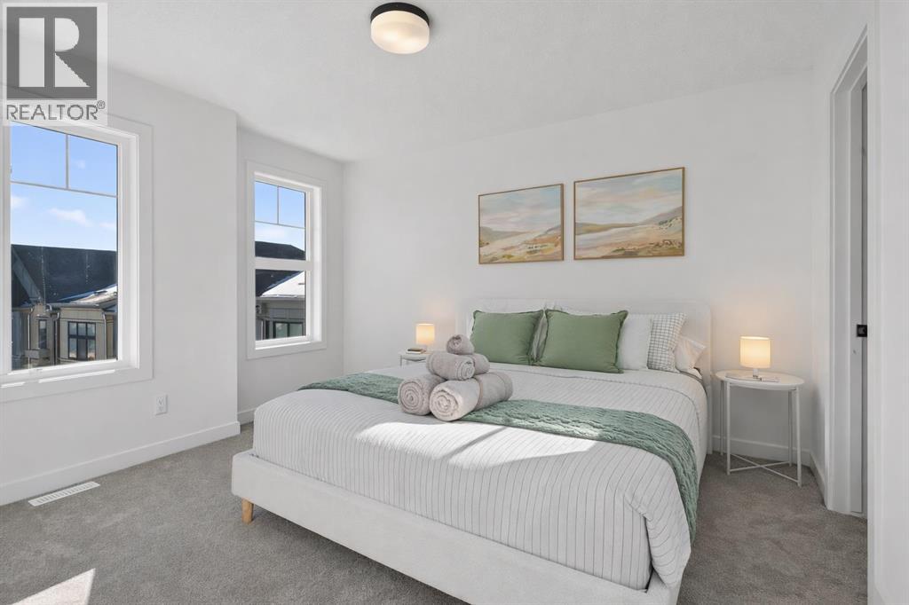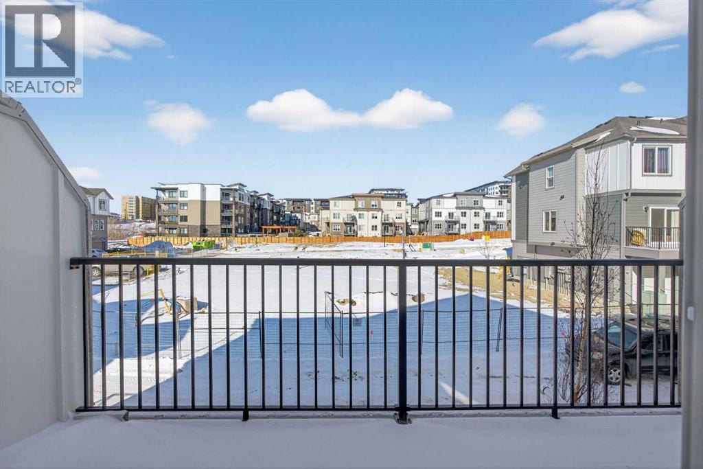 Welcome to Juniper Townhomes in prestigious Springbank Hill, where modern design meets an unbeatable west side location.This bright and stylish townhouse is built for today’s lifestyle. The entry level features a private den or home office, perfect for working from home, plus a convenient 2 piece bath.Upstairs, the open concept main floor is filled with natural light, showcasing 9 foot ceilings, large windows, and Luxury Vinyl Plank flooring throughout. The sleek kitchen shines with quartz countertops, stainless steel appliances, and a spacious breakfast bar that is ideal for entertaining. Step out from the dining area onto your full size balcony and enjoy your morning coffee or evening unwind.The upper level offers a comfortable primary retreat with double closets and a private glass shower ensuite, along with a second bedroom, a full 3 piece bath, and convenient upper floor laundry.Located just minutes to downtown, Stoney Trail, and quick mountain getaways, plus shopping and dining at Westhills and Aspen Landing, and access to some of Calgary’s top rated schools, this is west side living at its best.Move in ready, low maintenance, and packed with value. Don’t miss it. (id:63190)