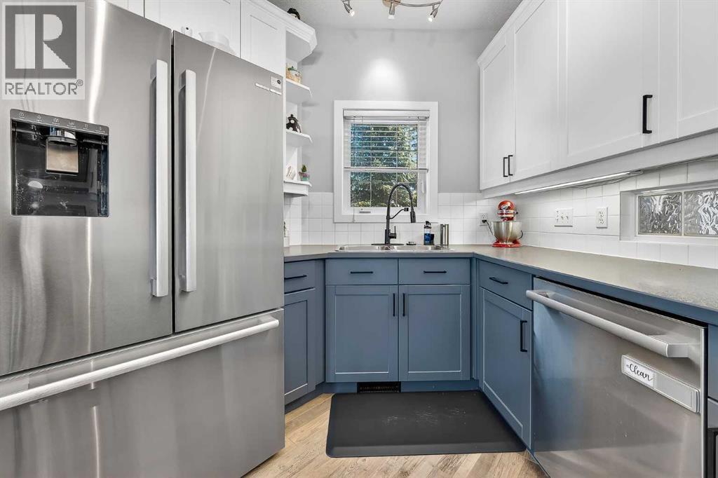 32 Prominence Park SW. Backing directly onto a large green space in desirable Patterson, this meticulously maintained and tastefully updated 3-bedroom, 3.5-bath home offers over 2,100sq ft of fully finished living space and an attached double car garage. The bright open-concept main floor features new luxury vinyl plank flooring and a spacious living room anchored by a cozy corner gas fireplace. The dining area flows seamlessly into the well-appointed kitchen complete with ample counter space, breakfast bar, stainless steel appliances, and brand-new high-end fridge and dishwasher. Expansive rear windows span the back of the home, flooding the space with natural light and showcasing peaceful green space views. A convenient 2-piece powder room and direct access to the garage complete the main level. Upstairs, brand-new carpet adds warmth throughout. The king-sized primary retreat overlooks the green space and features a large walk-in closet with custom organizers and a generous ensuite with soaker tub and custom tiled shower. Two additional bedrooms (both with custom closet organizers), a full 4-piece bathroom, and upper-level laundry with brand-new LG washer and dryer offer exceptional functionality for family living or work-from-home flexibility. The fully finished lower level provides a versatile recreation space along with a 3-piece bathroom — perfect for guests, a gym, media room, or play area.Step outside to your spacious deck and private backyard oasis, beautifully landscaped with low-maintenance perennials, in-ground sprinklers — ideal for entertaining, children, or pets. Located in a small, quiet complex with a private road, this home offers tranquility while remaining just minutes to downtown, nearby shops, restaurants, playgrounds, and quick access to Old Banff Coach Road for easy mountain getaways. Extensive recent upgrades include: New furnace, hot water tank, roof, skylights, attic insulation, luxury vinyl plank flooring, paint, bathroom exhaust fans, l ight fixtures, faucets, fridge, dishwasher, washer, dryer and ceiling fans. The total turnkey package at an attractive price in a sought after location! (id:63190)