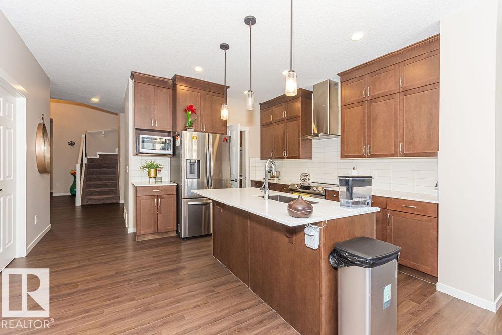 This exquisite former 2 storey SHOWHOME in Laurel will leave you breathless. Designed w/ elegance & functionality, offering 7 bdrms & 5 bths and over 3600 square foot of living space. Entering you will be greeted by the Stunning open-to-below iving area, dining room, main-floor bedroom with full bath, stylish chef’s kitchen, and HUGE SPICE KITCHEN with SS appliances to-the-ceiling cabinetry & plenty of storage. The family room with fireplace overlooking the back yard completes the main floor. Upstairs, the primary suite impresses w/ coffered ceilings, spacious walk-in closet & luxurious 5pc ensuite. Plus second bdrm w/ its own 4pc ensuite, additional bedroom & bathroom, laundry room & large bonus room for family movie nights or a play area. The basement hosts a SECOND kitchen, SECOND living space, 2 bedrooms with separate laundry, and stainless appliances, perfect for multigenerational families. This home is a must see! (id:63190)
