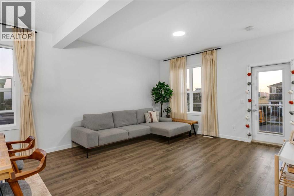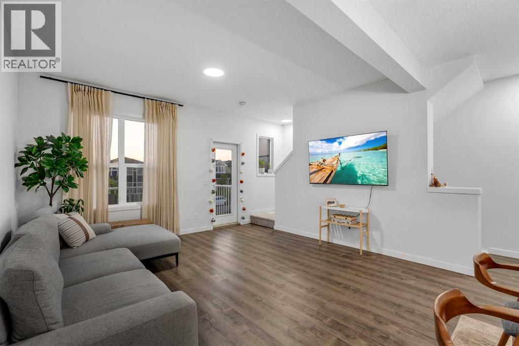 Featuring a versatile main floor den, this rare 2024-built corner-unit townhome in the family-friendly community of Redstone offers 1,577.66 sq ft above grade and an ideal blend of space, functionality, and privacy.Situated within a desirable 4-plex building—a standout feature in a development where many units are part of 5-plex layouts—this home benefits from fewer shared walls, creating a quieter and more private living experience. Tucked toward the rear of the complex, it also enjoys reduced traffic and a more peaceful setting.The main level welcomes you with a spacious foyer, the flexible den perfect for a home office or study, a utility room, and direct access to the double attached garage.The second level showcases a bright, open-concept layout featuring a generous living room, dedicated dining space, and a well-appointed kitchen with pantry and ample counter space—ideal for both everyday living and entertaining. A convenient 2-piece bathroom completes this level.Upstairs, you’ll find three well-sized bedrooms, including a primary suite with a walk-in closet and private 3-piece ensuite. Two additional bedrooms, a full 4-piece bathroom, and upper floor laundry add to the home’s everyday practicality.Large corner windows throughout provide abundant natural light, enhancing the overall warmth and appeal of the space.Ideally located close to parks, pathways, transit, shopping, and with quick access to Stoney Trail, this home delivers exceptional value in one of Calgary’s growing northeast communities.Bonus: Seller is offering a credit equivalent to one year of condo fees to the Buyer upon closing. (id:63190)