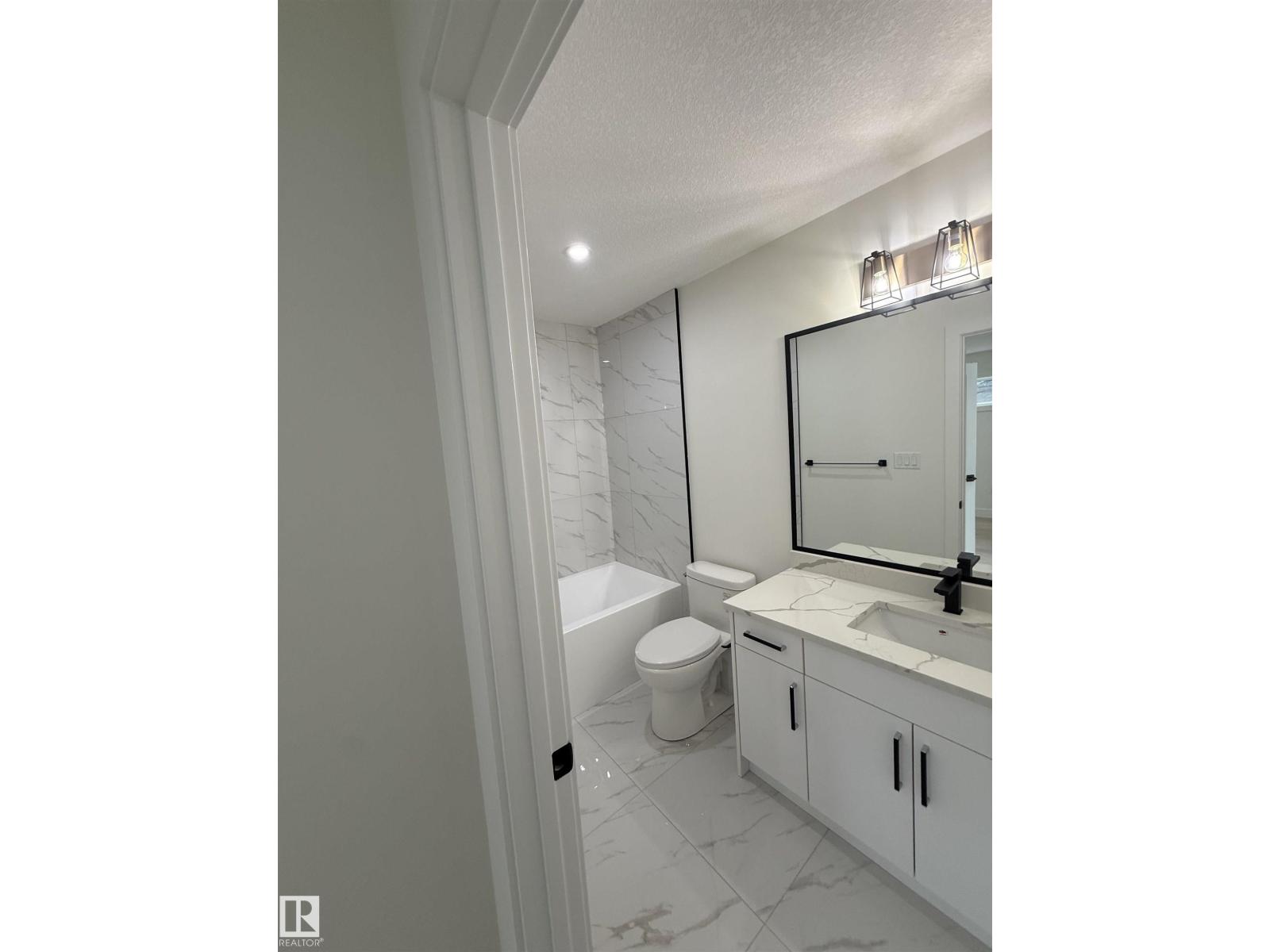 This brand-new, 2-storey half duplex features a modern open-concept living area with quartz countertops and a main-floor bedroom with a 4-piece bathroom. Upstairs, you'll find three bedrooms, including a Primary with an ensuite and walk-in closet, plus a laundry room and a 4-piece bathroom. The property also includes a 2-bedroom legal suite. (id:63190)