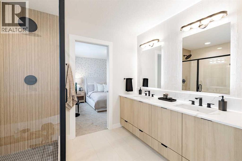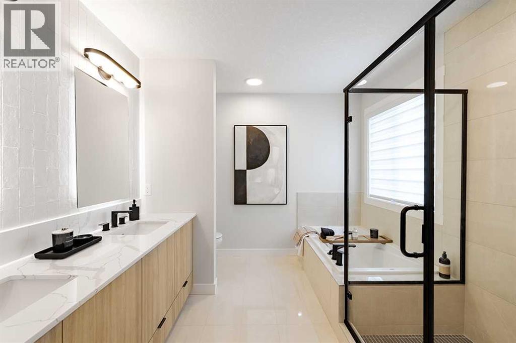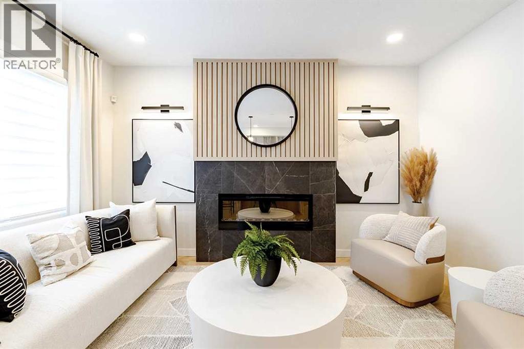 Welcome to the Katalina by Shane Homes, a pre construction home with a tentative 10-12 month possession timeframe. This front-drive home with a double attached garage is located in the community of Rose Ranch. The main floor features a full bedroom and full bathroom with shower, ideal for guests. The open-concept layout includes a living room with electric fireplace, dining nook, and a kitchen with island seating and a walk-in pantry. Upstairs offers three bedrooms, including the primary bedroom with dual vanity ensuite, soaker tub, separate shower, and walk-in closet. All upstairs bedrooms include walk-in closets, along with a full laundry room and an additional full bathroom. The undeveloped basement is ready for potential future development and includes rough-ins. This home can be customized to suit buyer needs. Photos are illustrative and for representative purposes only. (id:63190)