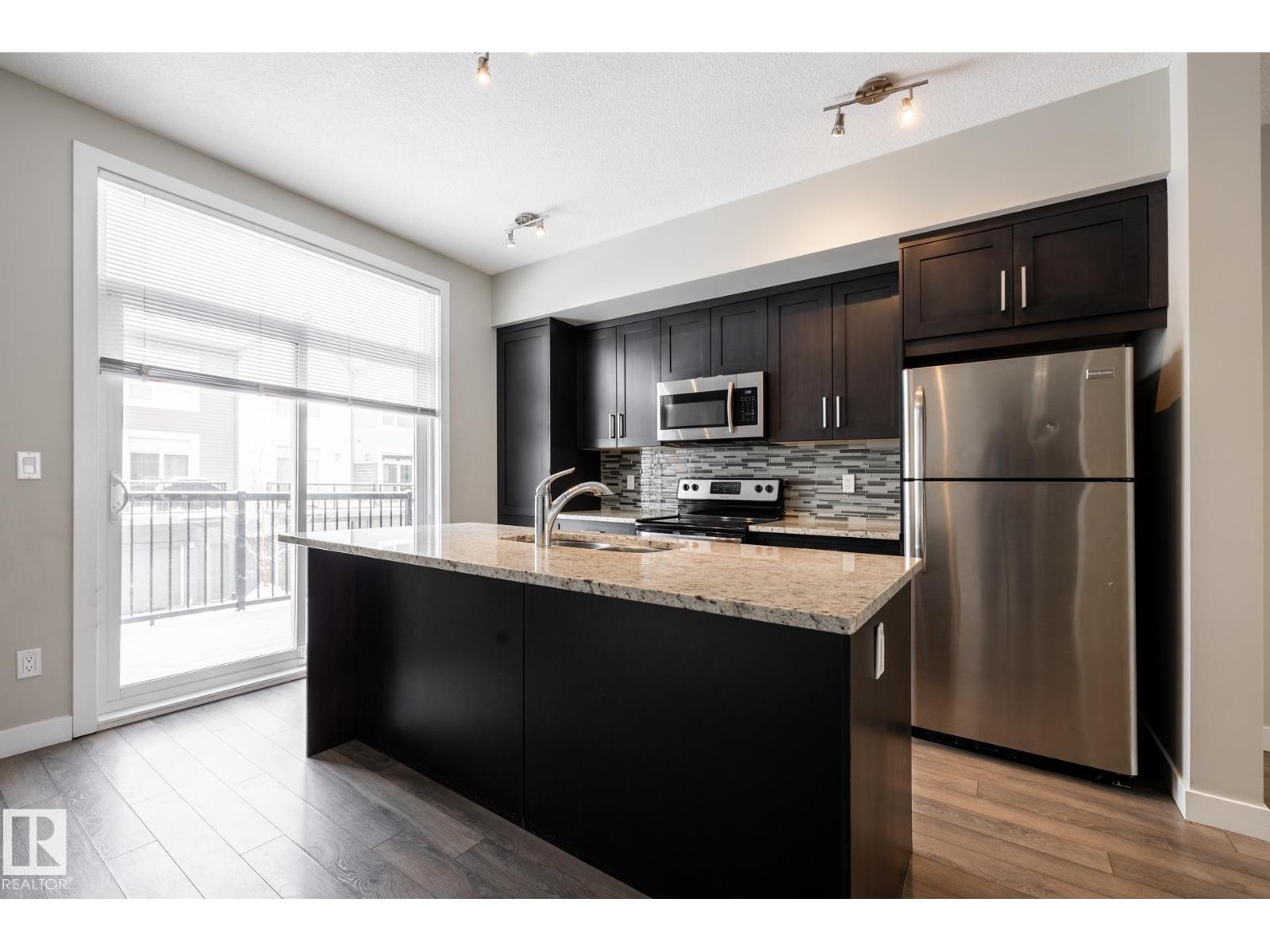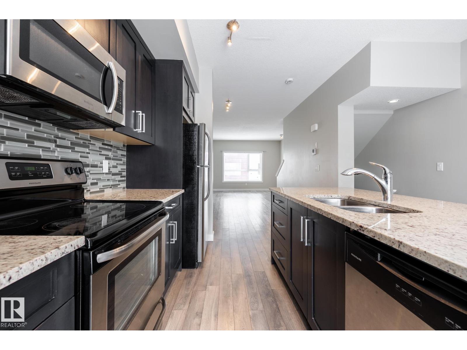 Excellent opportunity for this value priced and nicely upgraded unique 3 storey townhome perfectly located in central Edmonton's much desirable and award-winning family neighborhood of GRIESBACH. This spacious 2 bedrooms + den, 2.5 baths features an impressive, bright & spacious open floor plan with 9 ft. ceilings and oversized windows, and over 1330 sq.ft. gorgeous living space year-round. Trendy upgraded open kitchen with Island, granite counters, stainless steel appliances and open to the spacious Living and dining room. Upper level Primary bedroom feature double closet and a 3 pcs ensuite bath. Large second bedroom, full size 4 pcs main bath and laundry closet. Den and a 2 pcs bath right off the entry foyer. Oversized garage has water outlet, extra storage space and full driveway to park a second car. Beautiful & quiet location next to community pond & park areas, easy access to city centre, major shoppings, schools, playgrounds, transit & more. Move in Ready (id:63190)