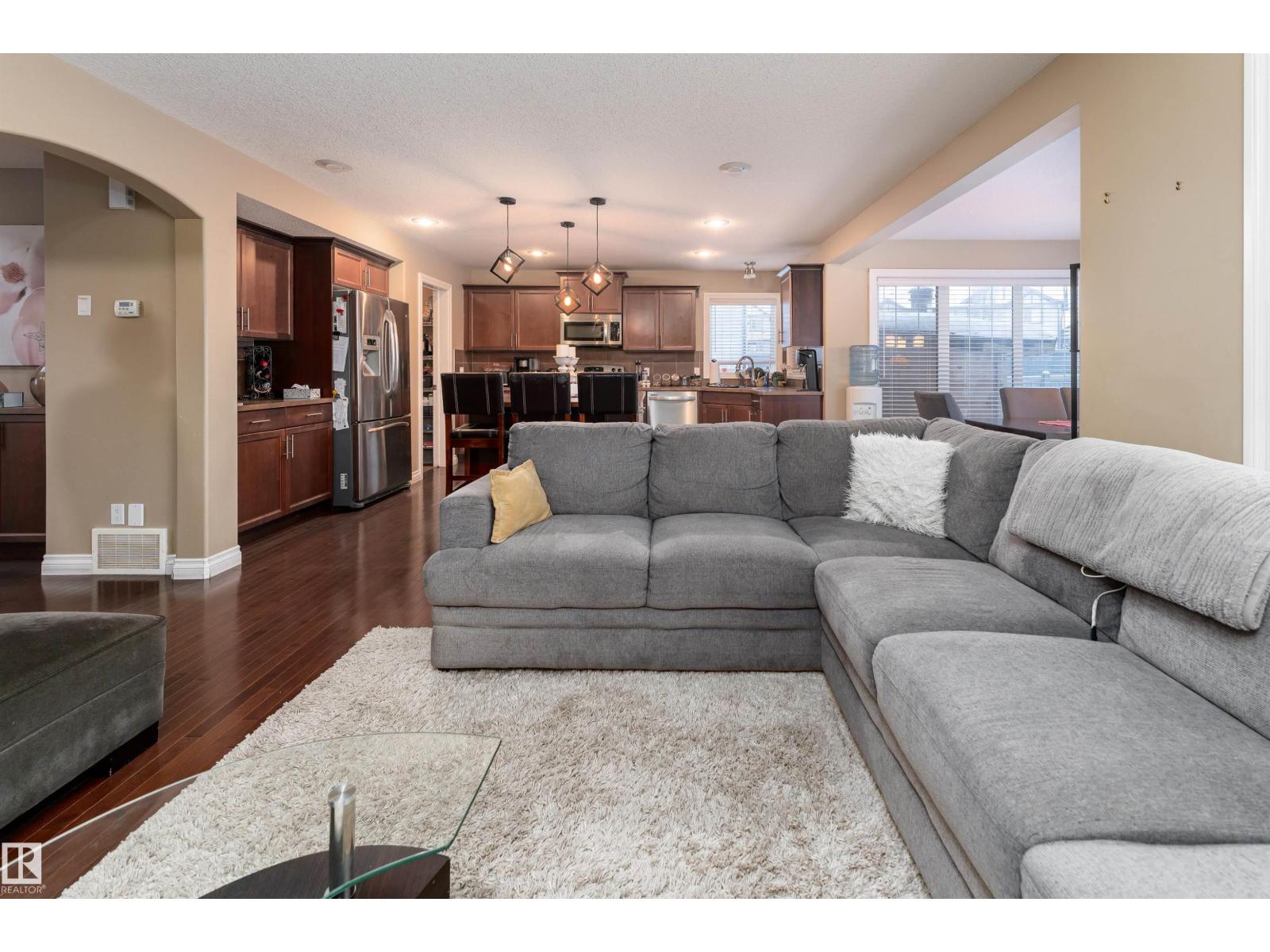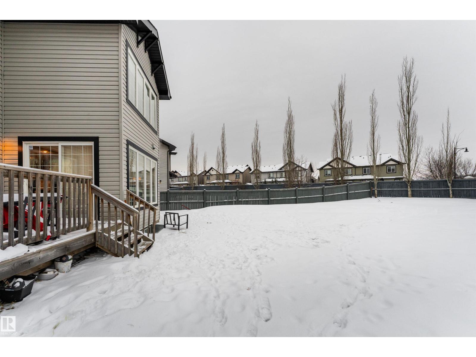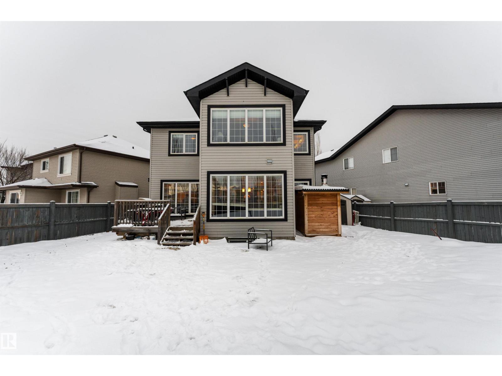 Featuring 5 beds and 3.5 baths, this 2,340 sq ft home is a rare find in a cul-de-sac with no back neighbours and a show-stopping, west facing oversized backyard. The open-concept main floor flows from a large kitchen with island seating into a bright dining nook with deck access and a spacious living room centered around a tile fireplace. A den with glass doors and a walk-through pantry leading through the mudroom to the double attached garage complete this level. Upstairs, a central family room overlooks the foyer, joined by a large laundry room with a wet bar and a massive primary suite featuring vaulted ceilings, a walk-in closet, and a 5pc ensuite. The finished basement adds even more living space with a large rec room, a second fireplace, two additional bedrooms, and a 4pc bath. Perfectly located near schools, shopping, golf, the airport, and public transportation, this home is the ultimate retreat for a growing family, offering incredible indoor space and a massive backyard rarely found in the city. (id:63190)
