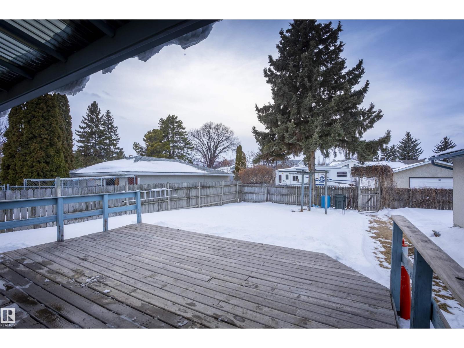 Tired of hunting for a home that fits your vehicles, work trailer, boat, RV, and all the toys, at a price that makes sense? This could be it! Sprawling front driveway off the main road + double car garage + back alley access = endless parking/storage options. Incredibly rare at this price point! Inside, a generous 3-bedroom bungalow awaits: oversized bedrooms, open main floor layout and a large kitchen boasting plenty of storage and countertop space. Basement is partially finished and ready for your personal touches. Backyard entertainer's dream: huge 2-tiered covered deck steps right off the kitchen, with still-plenty of green space despite the parking perks. Quiet location, close to everything Spruce Grove offers. The parking and storage of this property elevates it to Unicorn status and will make someone very happy. (id:63190)