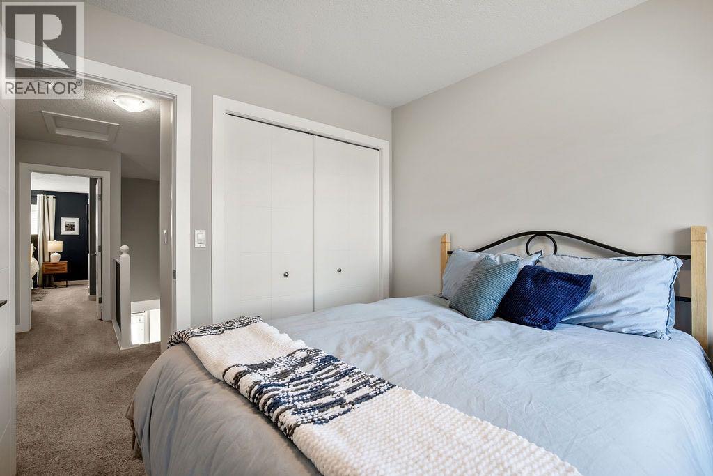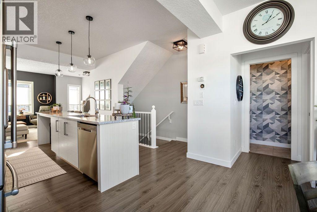 Welcome to this beautifully updated END UNIT townhouse offering thoughtful upgrades, abundant natural light, and is presented in incredible condition. With high ceilings and large windows throughout, this home feels bright and welcoming from the moment you step inside.The entry level offers flexibility with space ideal for a home office, reading room or home gym, along with a convenient storage room and access to your attached garage.The open-concept main living area is designed for both everyday comfort and entertaining. The kitchen features ungraded appliances including a gas stove, generous cabinetry, and a spacious island that flows seamlessly into the dining and living areas. Thanks to the home’s end-unit position and elevated sightlines, natural light pours in, creating an inviting atmosphere throughout the day.Upstairs, you’ll find 3 well-proportioned bedrooms, including a primary retreat complete with a three-piece ensuite and walk in closet. A four-piece main bathroom serves the additional bedrooms, making this layout ideal for families, guests, or shared living.Additional highlights includes AIR CONDITIONING, and a HEATED GARAGE with enough space for storing your toys as well as additional storage under the stairs. This home also offers extra parking available on the driveway—an added bonus rarely found in condo living. The end-unit location provides enhanced privacy and a quieter setting, while still offering easy access to nearby amenities and outdoor spaces. Fresh paint, custom feature walls, and new up-down blinds enhance the modern feel while allowing you to control light with ease. A move-in-ready home with modern updates, functional living spaces, and standout features—this end unit offers comfort, convenience, and value. Enjoy the walking/running paths right outside your doorstep to the beautiful Bow River Pathways. Schools and shopping are close by and the access both out of Cochrane and into downtown is now simpler than ever. (id:63190)