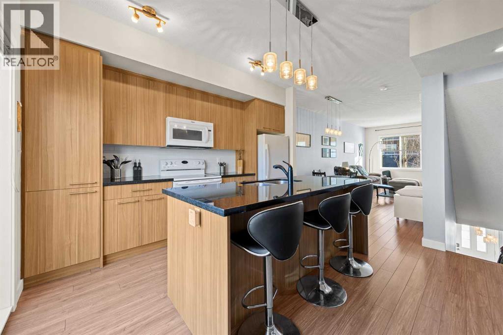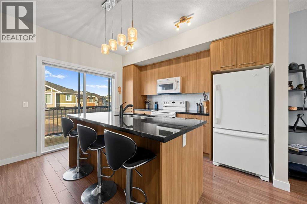 DOWNTOWN CHESTERMERE LIVING + PRIVATE FENCED YARD + ATTACHED GARAGE + LOW CONDO FEES — THIS IS THE ONE YOU’VE BEEN WAITING FOR!!!Welcome home to this BRIGHT + SUNNY 2 BEDROOM, 2 BATHROOM townhome perfectly situated in the HEART of downtown Chestermere — just steps to restaurants, shops, pubs, amenities, the BEACH and of course beautiful Chestermere Lake!RARE FEATURES you will LOVE: fenced yard, SINGLE ATTACHED GARAGE, full driveway for a SECOND VEHICLE, plus additional parking directly out front — WOW!!!The entry level welcomes you with a versatile FLEX ROOM — the perfect HOME OFFICE, gym, or bonus space — complete with a convenient half bath and direct access to your attached garage.Head upstairs to a BRIGHT + OPEN main living area designed for entertaining. The modern kitchen features GRANITE COUNTERTOPS, a large island with breakfast bar seating, NEW microwave hoodfan and sliding doors leading to your private balcony — the PERFECT spot for evening BBQs (and yes, the BBQ is INCLUDED!). The dining area flows seamlessly into the sun-filled living room — ideal for hosting friends, family, or catching the big game.Upstairs you’ll find TWO SPACIOUS BEDROOMS. The primary suite easily fits a KING-SIZE BED and includes a spacious closet with built ins. The second bedroom is generously sized and perfect for guests, kids, or additional office space. The upper level is completed with a 4-piece bathroom featuring GRANITE COUNTERS + MODERN VANITY, along with a convenient laundry room with BRAND NEW washer and dryer.Fresh paint, low condo fees, unbeatable walkability, private fenced yard (some are shared), garage + driveway parking — this home checks ALL the boxes.If you’ve been waiting for the perfect place to call home at a price that DOESN’T break the bank — THIS. IS. IT. (id:63190)