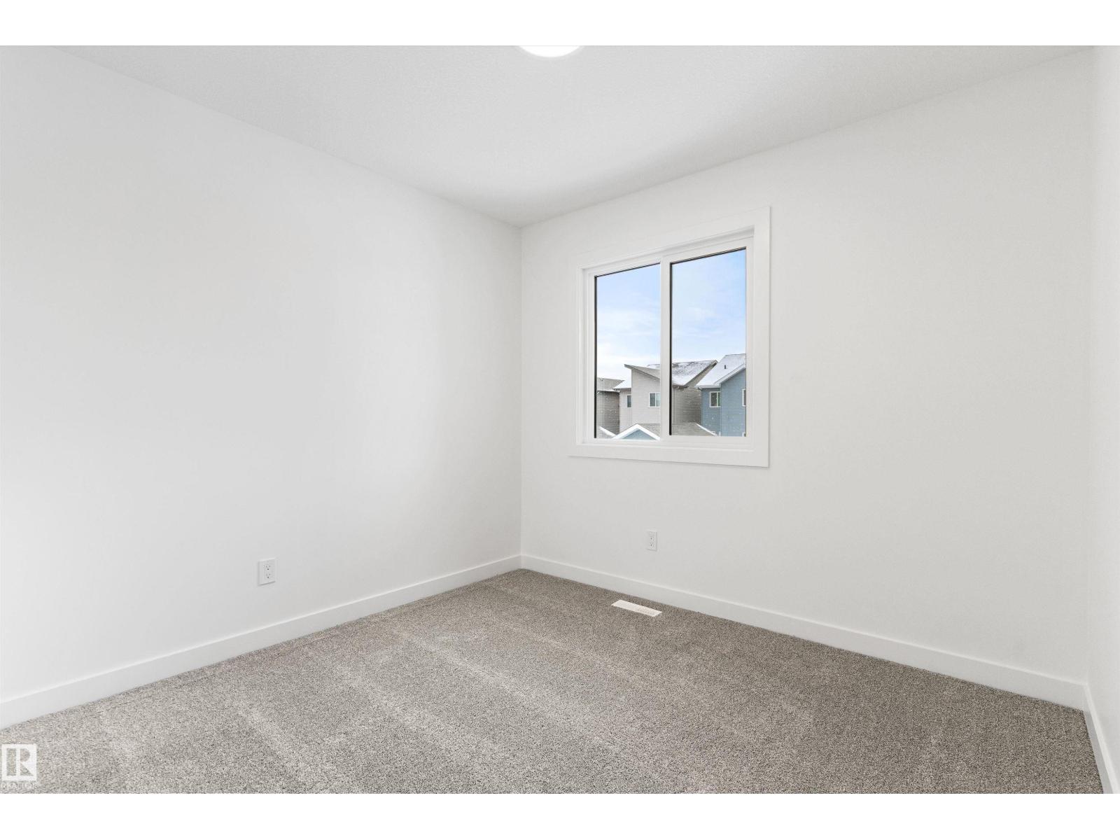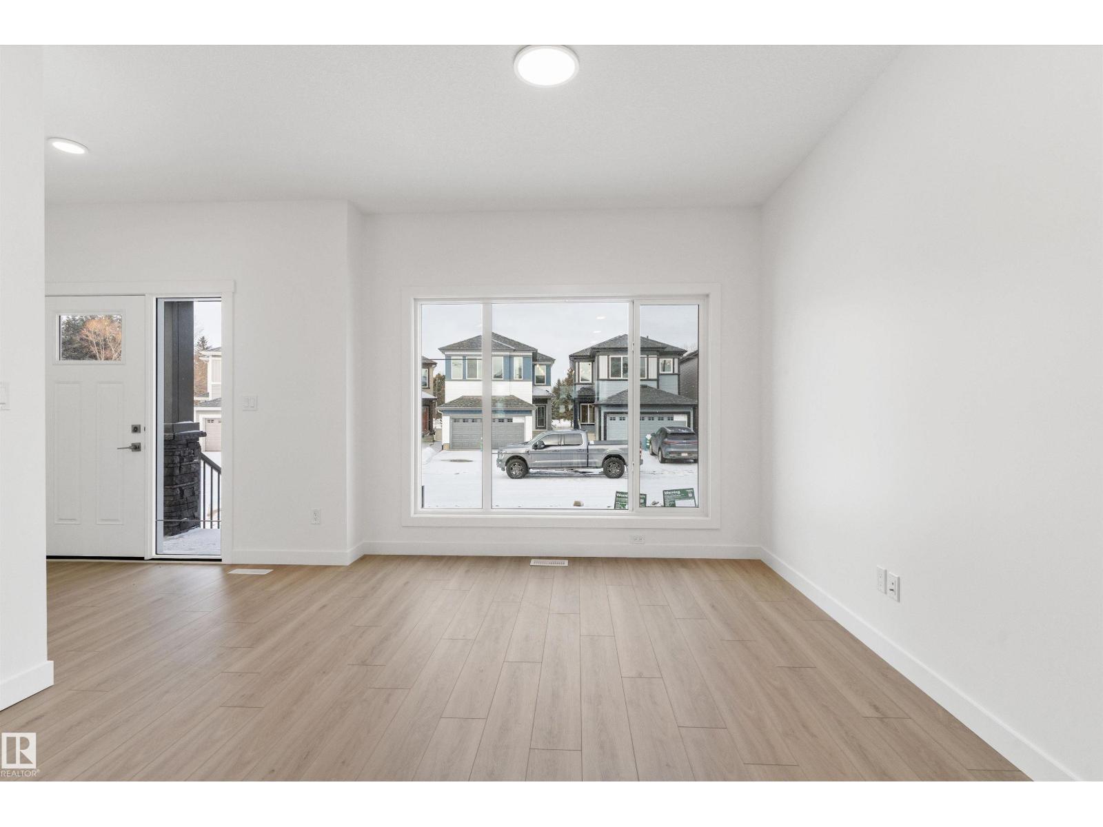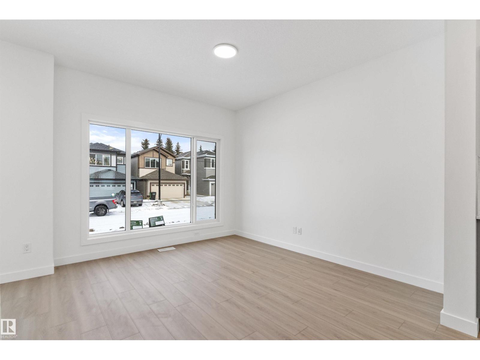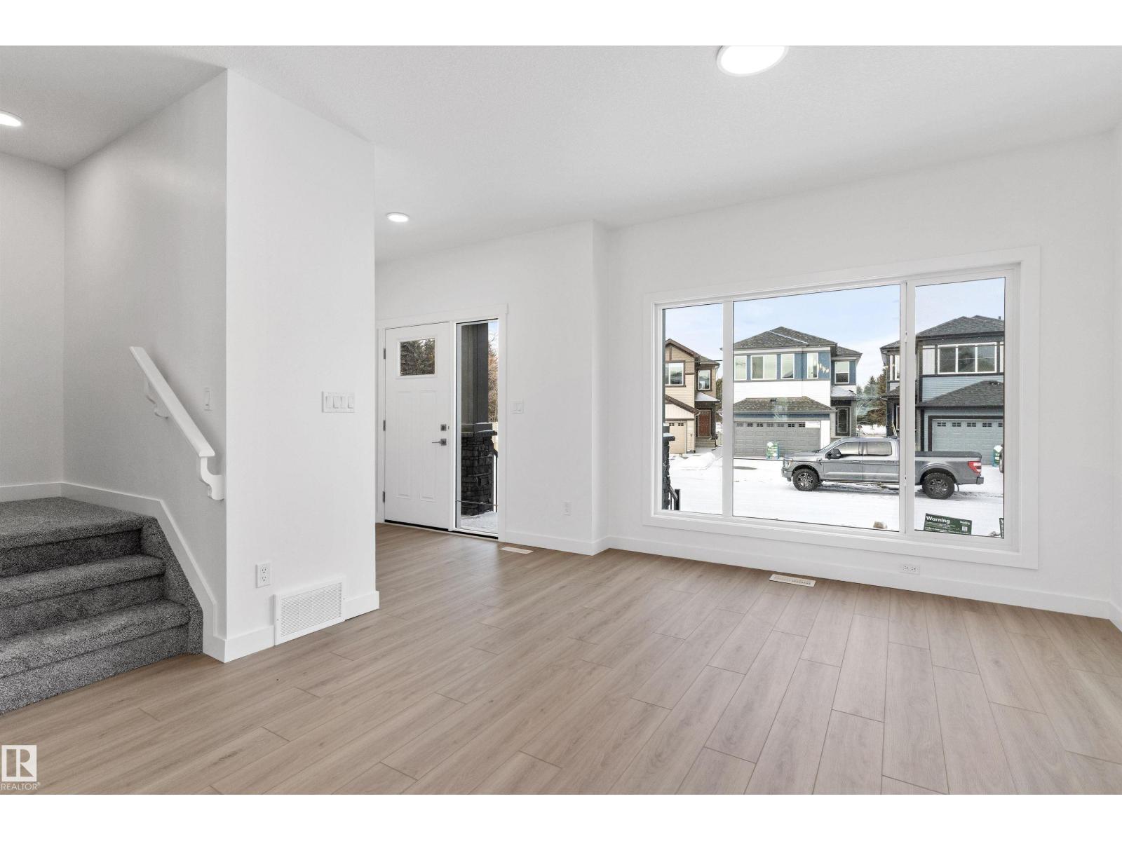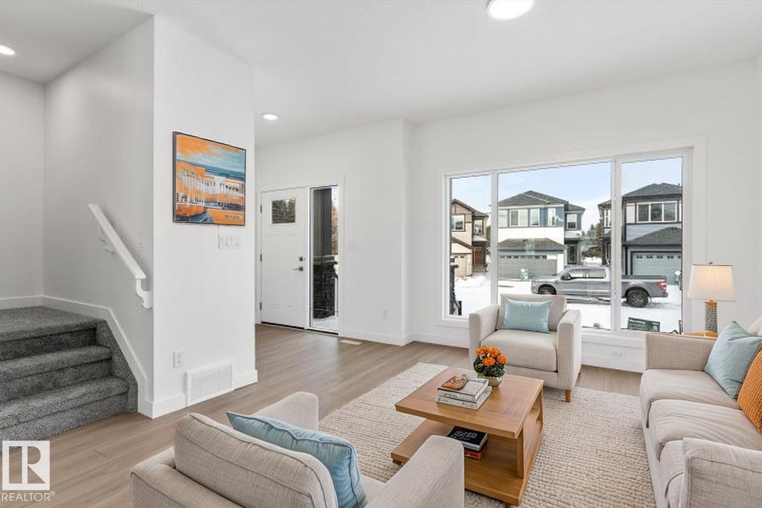 Built by Sterling Homes, this bright laned home in Edgemont Place blends warmth and flexibility in a sought-after West Edmonton community. Triple-pane windows and 9’ ceilings create an open, inviting main floor with a sun-filled front living room. The rear kitchen overlooks the yard—ideal for watching kids or enjoying quiet views—featuring quartz countertops, upgraded cabinetry, a central island, and a large pantry. A main-floor bedroom with a full 3-piece bath offers great flexibility for guests or a home office. A garden door opens to a generous backyard and parking pad with future garage potential. Upstairs, the primary suite includes a walk-in closet and private ensuite, plus two bedrooms, a full bath, and upper-floor laundry. Luxury vinyl plank flooring, upgraded railings, side entry, and basement rough-ins add future-ready value in a parks-and-trails community. (id:63190)