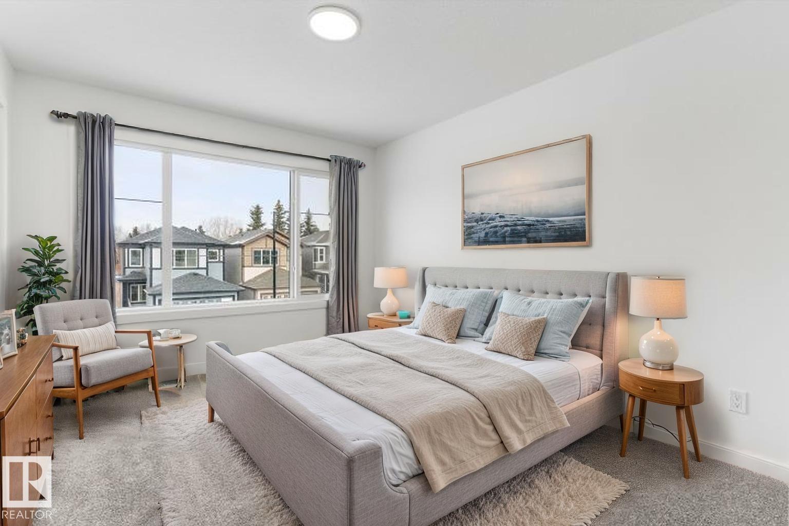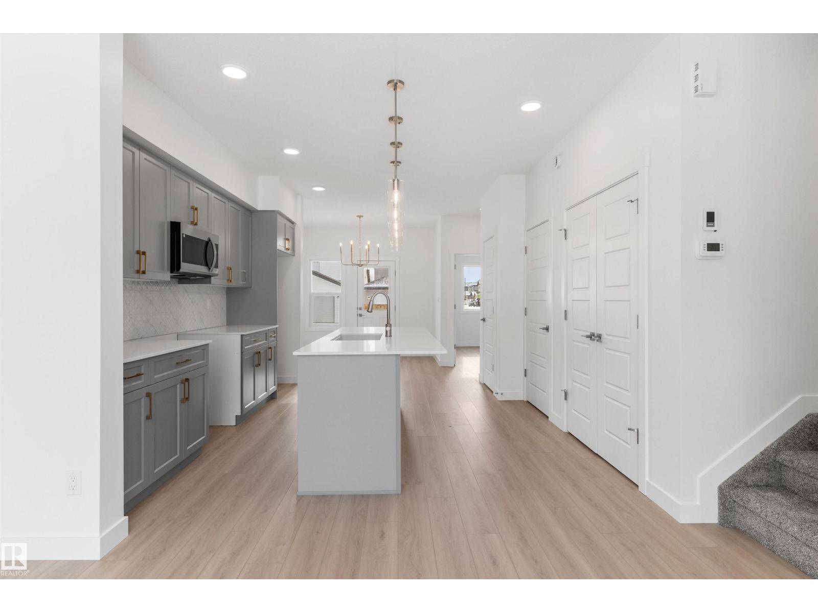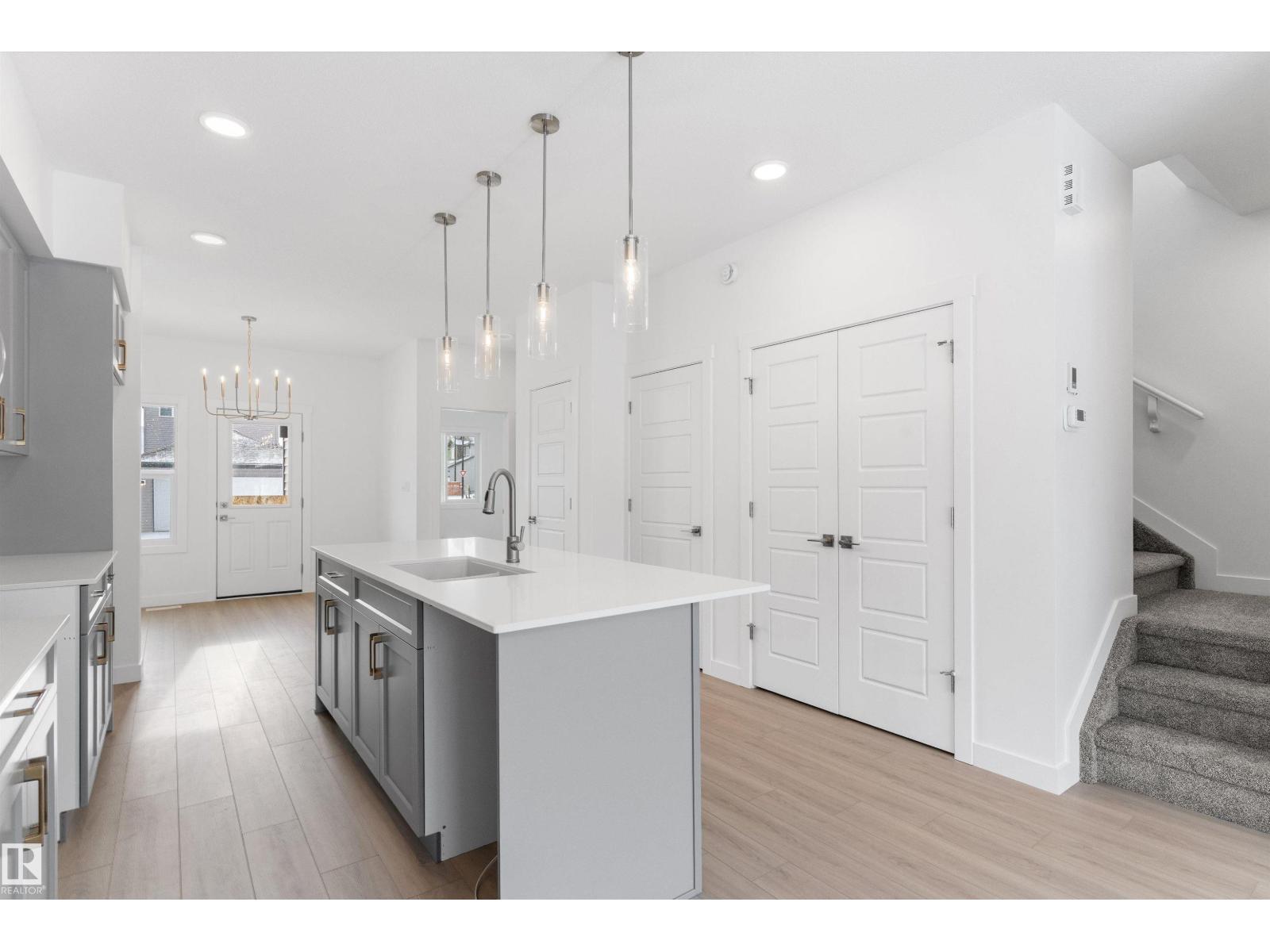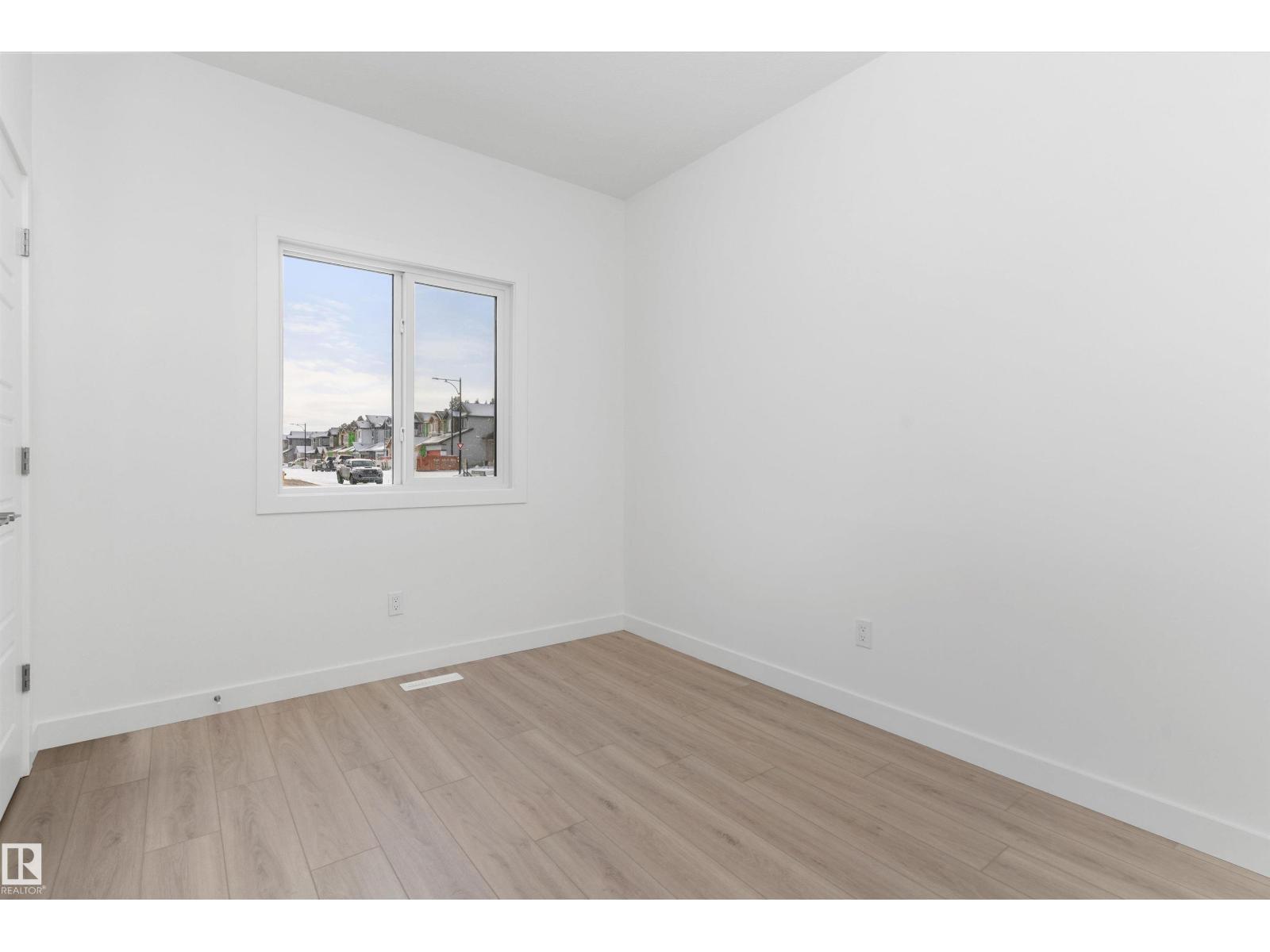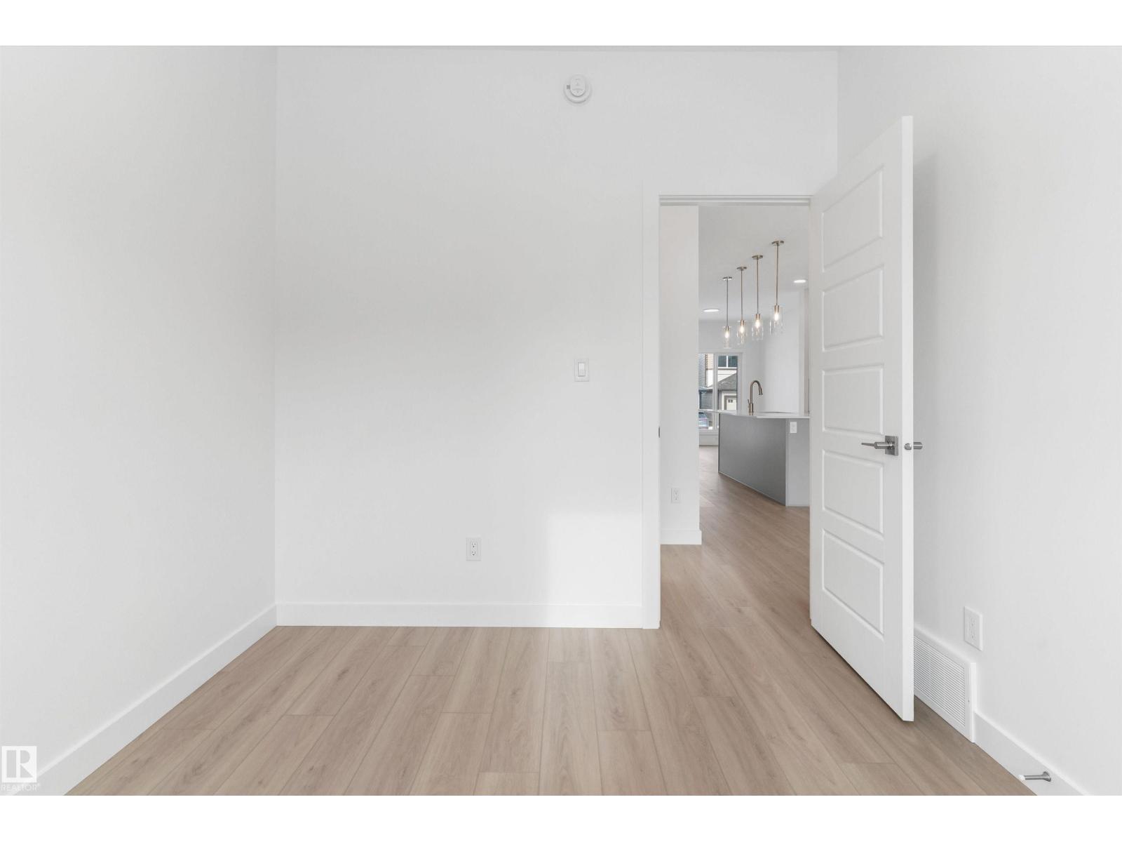 Built by Sterling Homes, this bright laned home in Edgemont Place blends warmth and flexibility in a sought-after West Edmonton community. Triple-pane windows and 9’ ceilings create an open, inviting main floor with a sun-filled front living room. The rear kitchen overlooks the yard—ideal for watching kids or enjoying quiet views—featuring quartz countertops, upgraded cabinetry, a central island, and a large pantry. A main-floor bedroom with a full 3-piece bath offers great flexibility for guests or a home office. A garden door opens to a generous backyard and parking pad with future garage potential. Upstairs, the primary suite includes a walk-in closet and private ensuite, plus two bedrooms, a full bath, and upper-floor laundry. Luxury vinyl plank flooring, upgraded railings, side entry, and basement rough-ins add future-ready value in a parks-and-trails community. (id:63190)