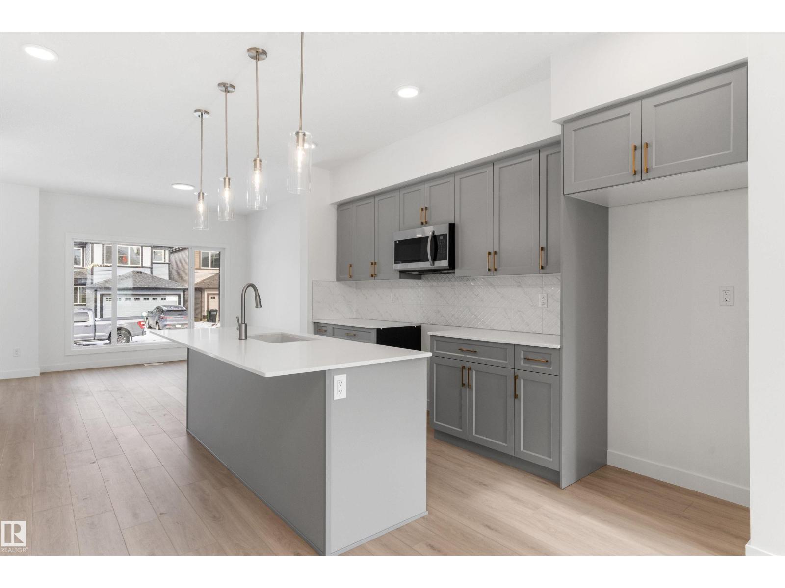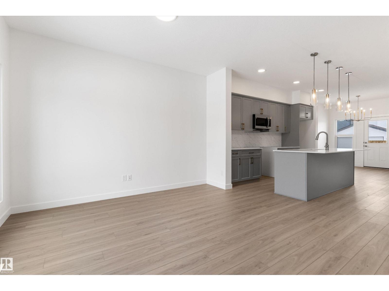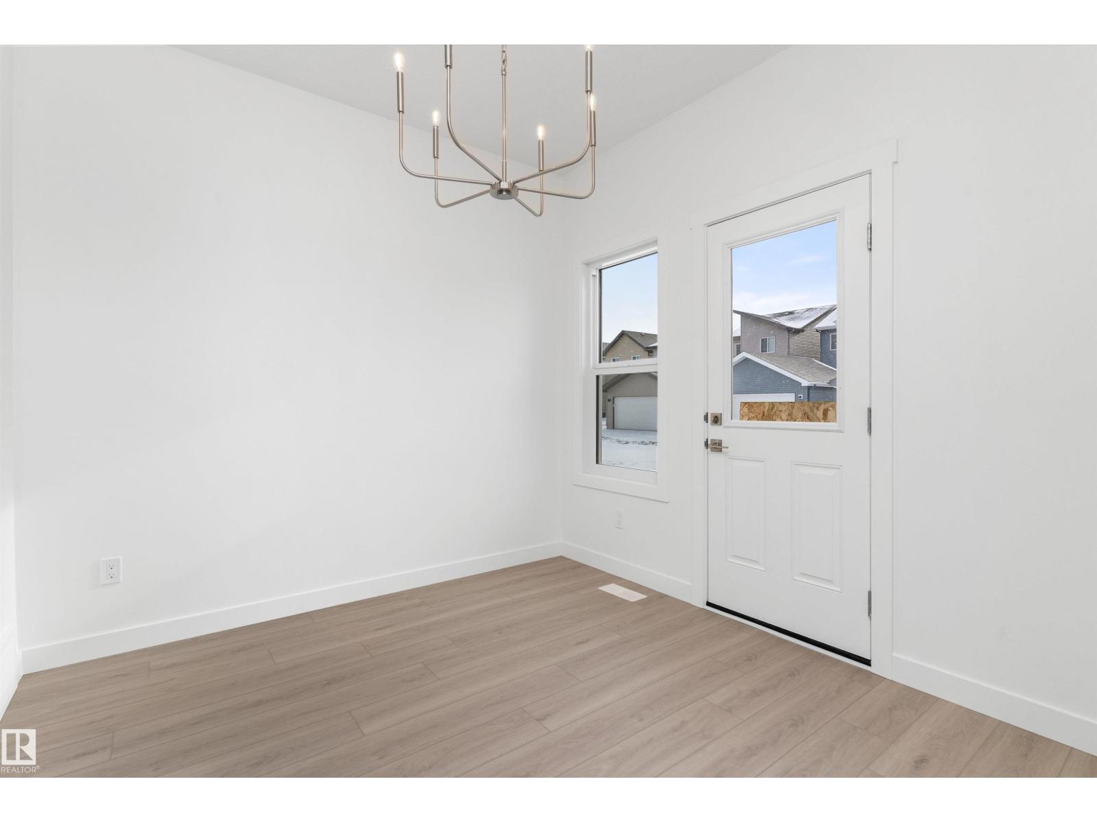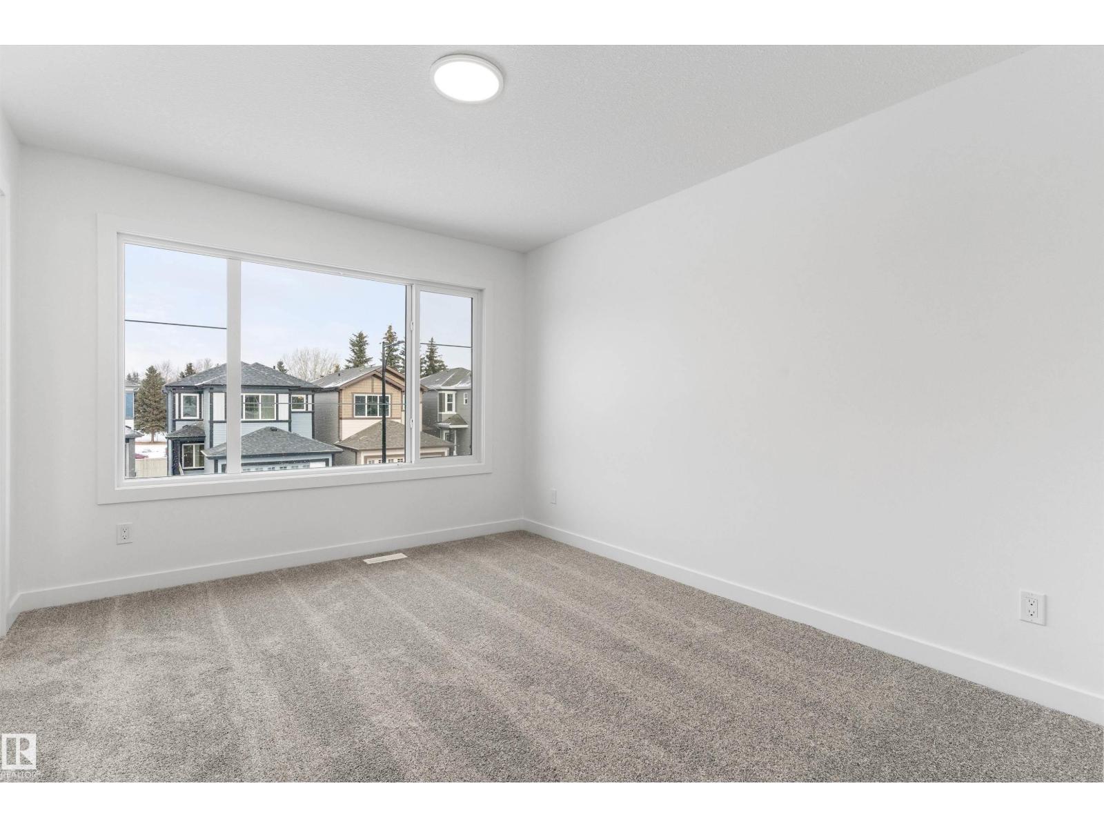 Built by Sterling Homes, this bright laned home in Edgemont Place blends warmth and flexibility in a sought-after West Edmonton community. Triple-pane windows and 9’ ceilings create an open, inviting main floor with a sun-filled front living room. The rear kitchen overlooks the yard—ideal for watching kids or enjoying quiet views—featuring quartz countertops, upgraded cabinetry, a central island, and a large pantry. A main-floor bedroom with a full 3-piece bath offers great flexibility for guests or a home office. A garden door opens to a generous backyard and parking pad with future garage potential. Upstairs, the primary suite includes a walk-in closet and private ensuite, plus two bedrooms, a full bath, and upper-floor laundry. Luxury vinyl plank flooring, upgraded railings, side entry, and basement rough-ins add future-ready value in a parks-and-trails community. (id:63190)