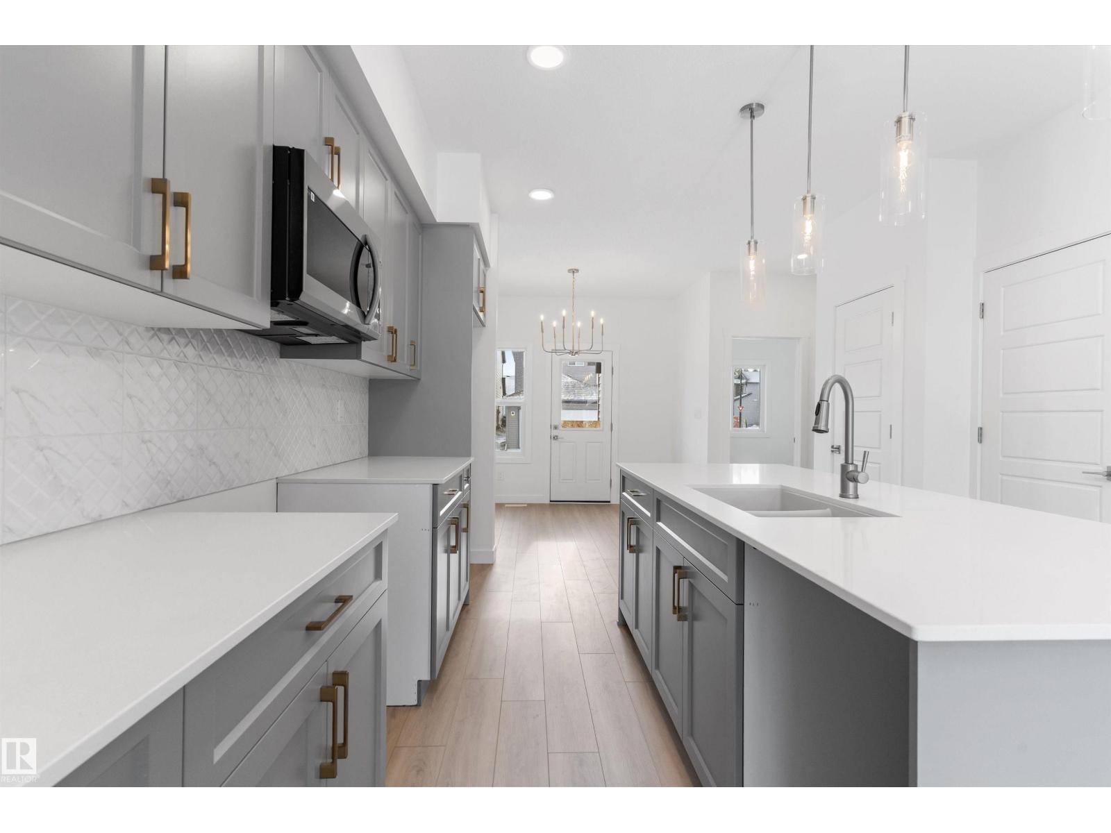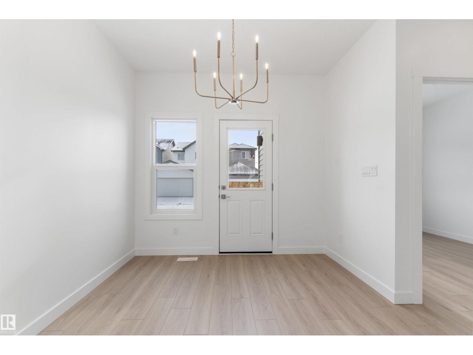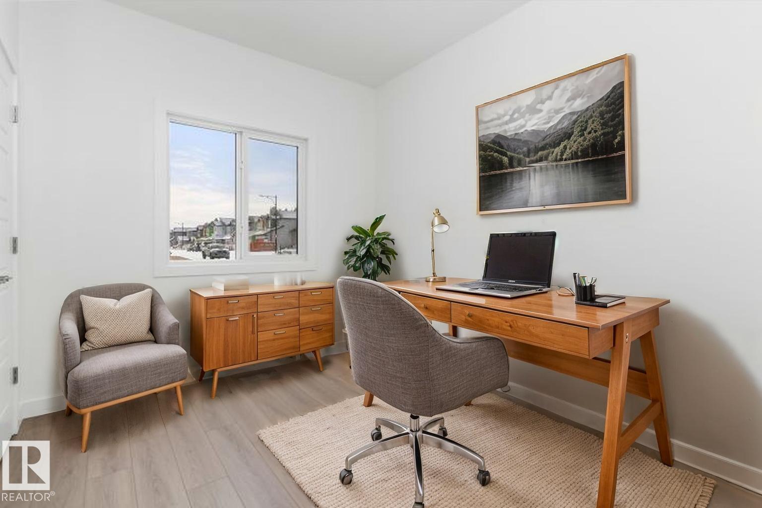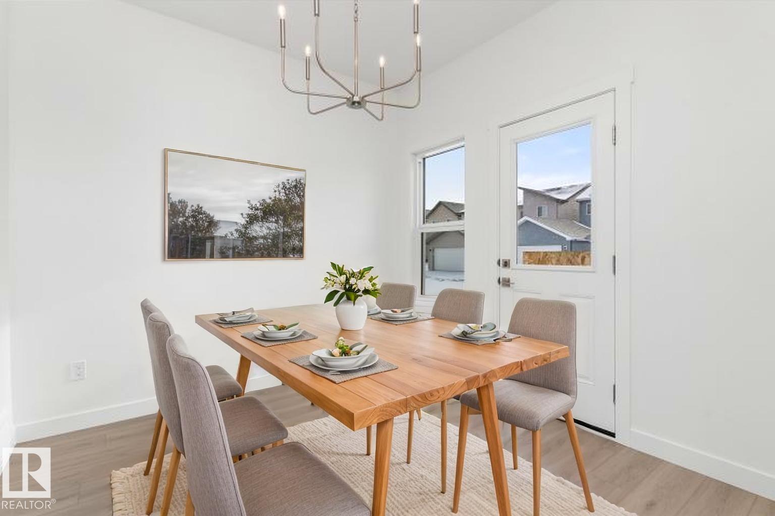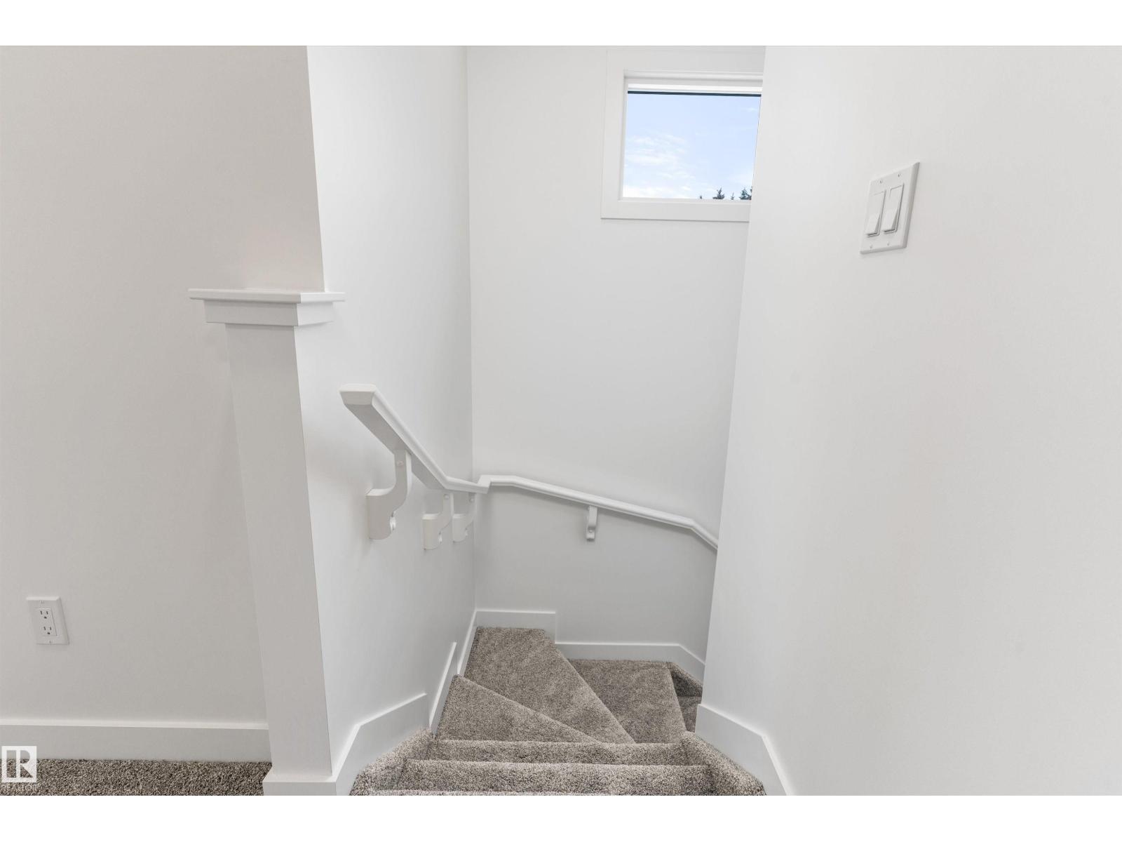 Built by Sterling Homes, this bright laned home in Edgemont Place blends warmth and flexibility in a sought-after West Edmonton community. Triple-pane windows and 9’ ceilings create an open, inviting main floor with a sun-filled front living room. The rear kitchen overlooks the yard—ideal for watching kids or enjoying quiet views—featuring quartz countertops, upgraded cabinetry, a central island, and a large pantry. A main-floor bedroom with a full 3-piece bath offers great flexibility for guests or a home office. A garden door opens to a generous backyard and parking pad with future garage potential. Upstairs, the primary suite includes a walk-in closet and private ensuite, plus two bedrooms, a full bath, and upper-floor laundry. Luxury vinyl plank flooring, upgraded railings, side entry, and basement rough-ins add future-ready value in a parks-and-trails community. (id:63190)