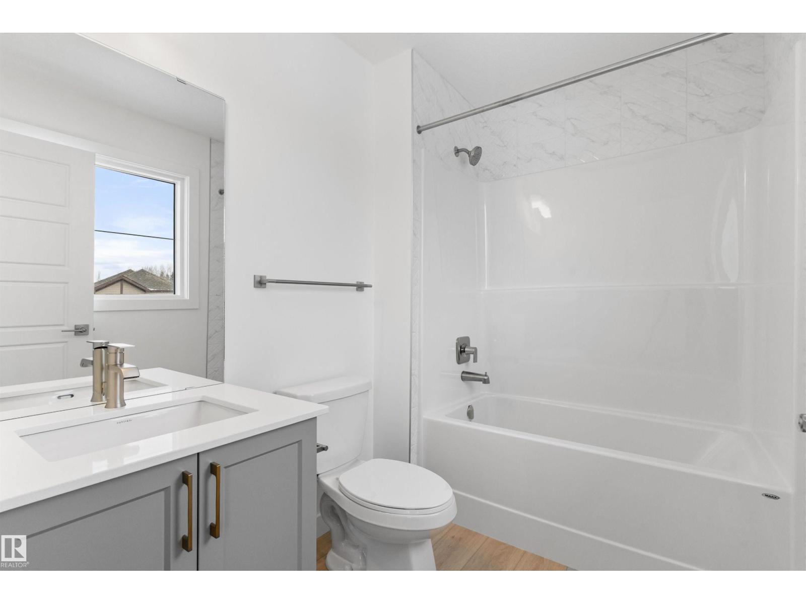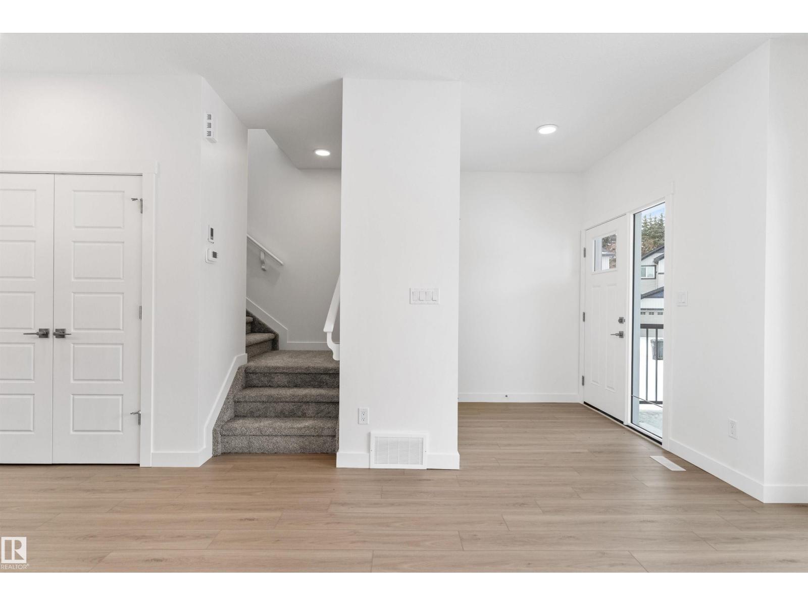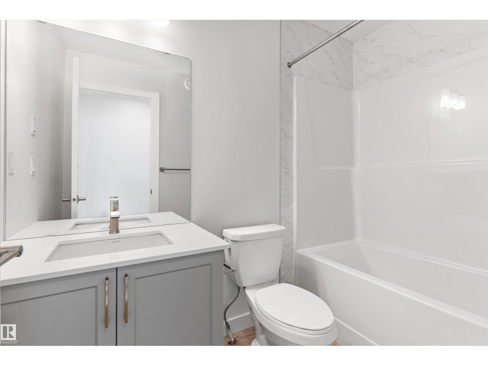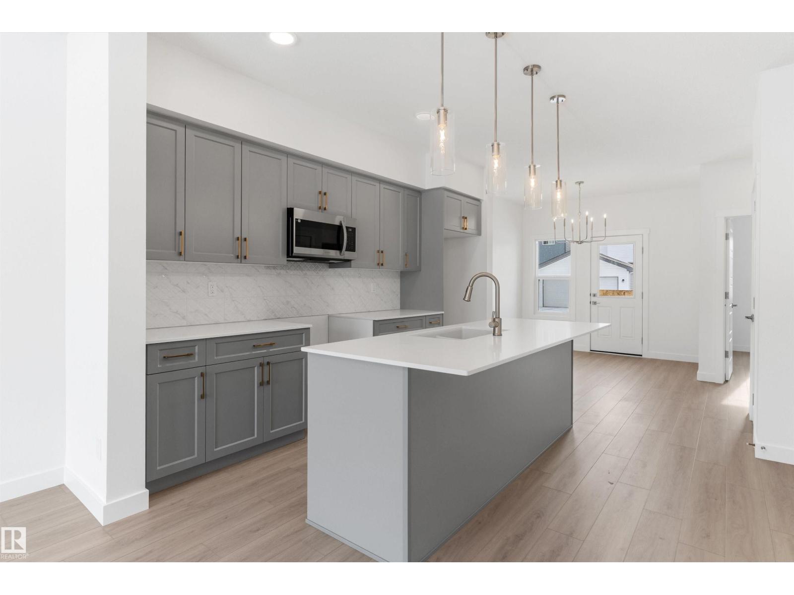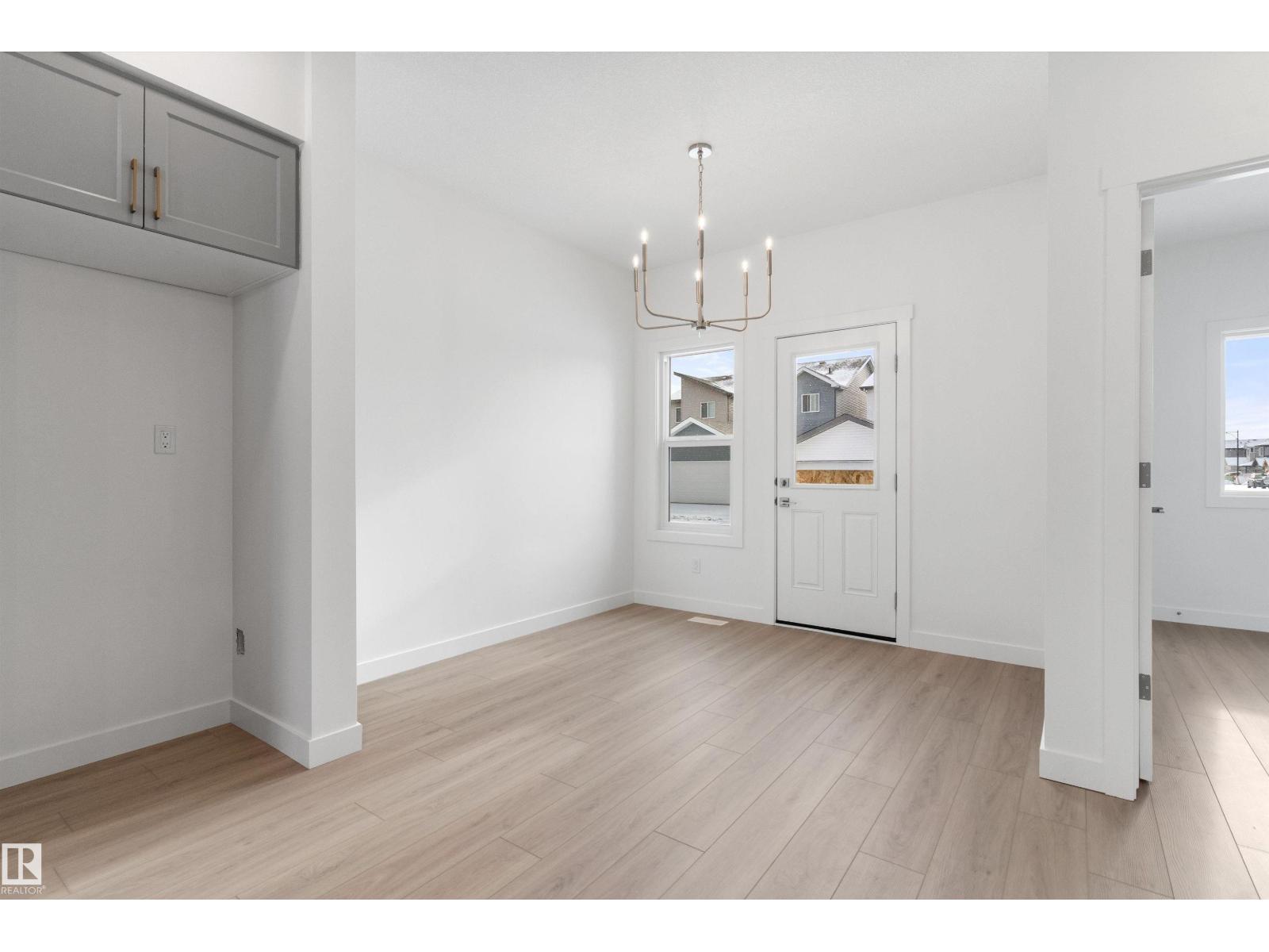 Built by Sterling Homes, this bright laned home in Edgemont Place blends warmth and flexibility in a sought-after West Edmonton community. Triple-pane windows and 9’ ceilings create an open, inviting main floor with a sun-filled front living room. The rear kitchen overlooks the yard—ideal for watching kids or enjoying quiet views—featuring quartz countertops, upgraded cabinetry, a central island, and a large pantry. A main-floor bedroom with a full 3-piece bath offers great flexibility for guests or a home office. A garden door opens to a generous backyard and parking pad with future garage potential. Upstairs, the primary suite includes a walk-in closet and private ensuite, plus two bedrooms, a full bath, and upper-floor laundry. Luxury vinyl plank flooring, upgraded railings, side entry, and basement rough-ins add future-ready value in a parks-and-trails community. (id:63190)