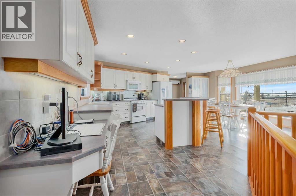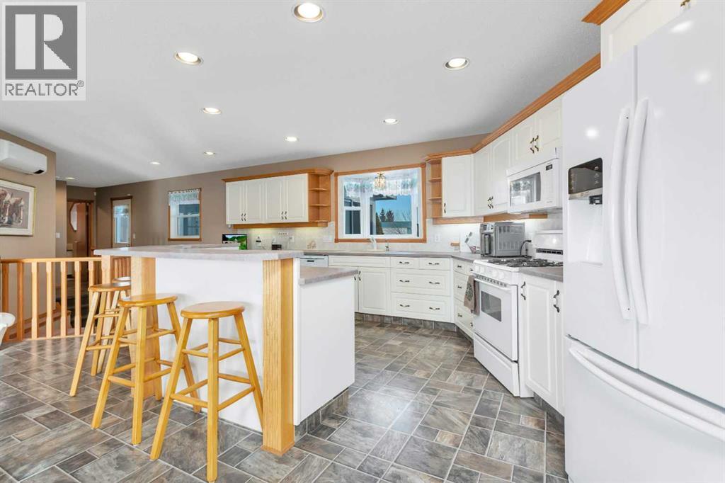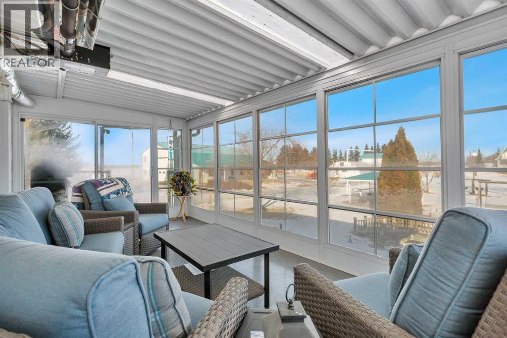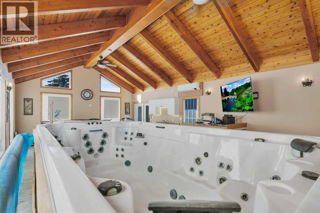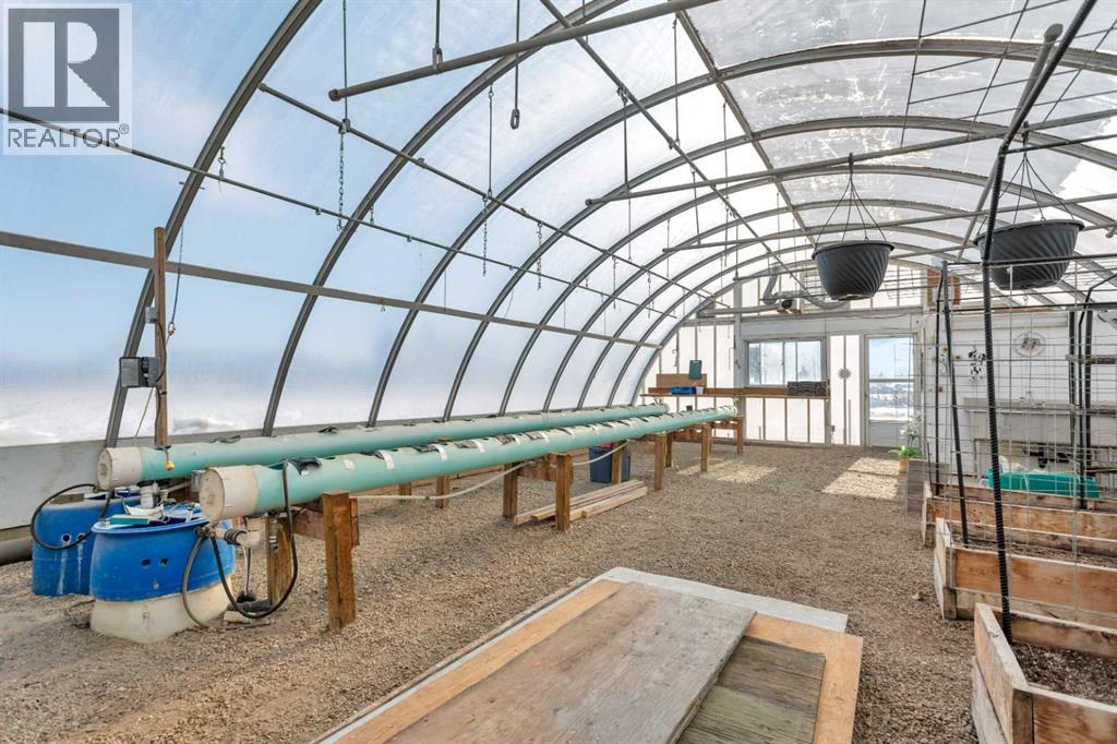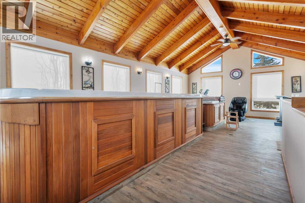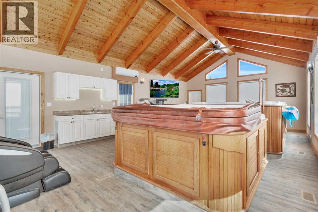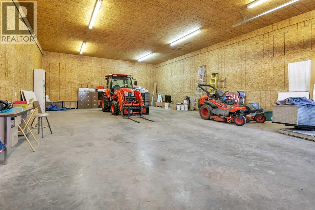 Discover ultimate versatility on 6.37-acre estate, perfectly situated for effortless highway and airport access and exceptional visibility from Highway 2A. This meticulously maintained property features a 4-bedroom, 4-bathroom main residence that was extensively updated in 2024 with the removal of all Poly B piping, drywall repair, and new paint. The main floor offers a bright, open kitchen with a central island and plenty of natural light from the south-facing windows and a stunning four-season sunroom equipped with infrared heating. The primary suite is a private retreat, featuring dual closets and a 3-piece ensuite that connects to a spectacular vaulted cedar spa and gym room, complete with a hot tub and swim spa along with a coffee bar and stainles steel sink. Two additional rooms can be found upstairs, one designed for an at-home office but provides an option for an additional bedroom. The main floor laundry room with a sink adds convenience. The walkout basement with two bedrooms and a four-piece bathroom adds flexibility with a kitchenette, an additional potential bedroom used as a playroom, and a functional layout. Comfort is prioritized throughout with boiler-powered heated floors in the home, garage, and all outbuildings, complemented by two heat pumps with reverse cooling and four mini-split units.The property also includes a fully self-contained secondary dwelling with 2 bedrooms, 2 bathrooms, a private laundry space, and a covered balcony. Professional-grade infrastructure includes two massive heated shops: a 40x64 shop with 16.4ft ceilings, a 14ft overhead door, plenty of storage, an office and a mezzanine with an additional office and storage. The 27x 64 shop addition features two dedicated office spaces, along with a kitchen and bathroom. The addition features extra space and storage solutions, including a storage garage with an overhead door. The second shop measures at 48x30 with 13.9ft ceilings and a 12ft overhead door. Outdoor amenities are equa lly impressive, featuring a 40x27 greenhouse with perimeter ducted heat loop off of the furnace (Double plastic thermal) and a 48" fan with two rainwater totes from roof drainage. A stocked koi pond with a winter heater, a gazebo with a fire pit, and a large playground area with playground equipment and a playhouse. Perfect for families and generations to come! The garden offers Evan’s cherry trees and raspberries, while the rest of the yard features landscaping with minimal upkeep. All of this is protected by a comprehensive security camera system. With a high-yield well, an iron filter, and thoughtful accessibility features like a brick-paved wheelchair ramp, this estate is a rare find for those seeking a live-work-play sanctuary.*GST May Apply* (id:63190)