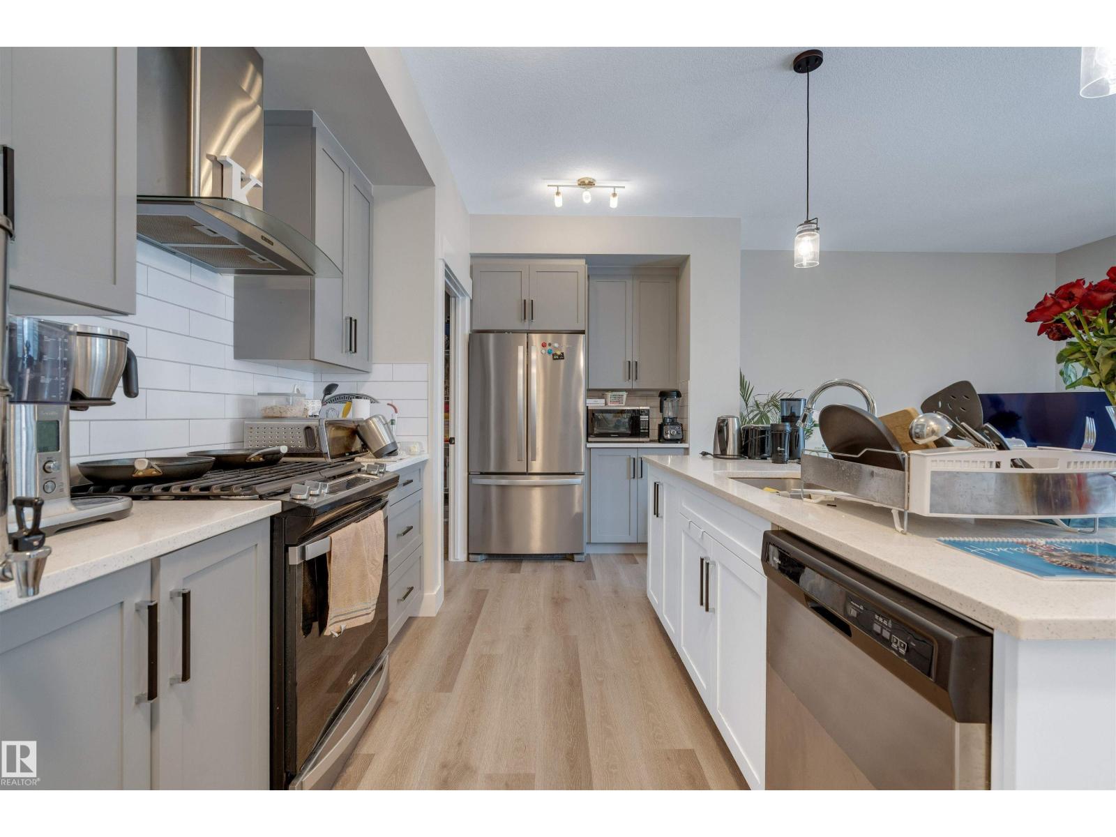 MODERN FAMILY HOME + LEGAL SUITE in WEST EDMONTON! Welcome to this beautifully designed 2-STOREY offering STYLE, SPACE, AND INCOME POTENTIAL in a growing, family-friendly neighbourhood. The BRIGHT MAIN FLOOR features an OPEN-CONCEPT layout with a spacious living area, LARGE WINDOWS, and a CHEF-INSPIRED KITCHEN with generous cabinetry, PANTRY, and seamless flow to dining — perfect for everyday living. QUARTZ COUNTERTOPS continue THROUGHOUT BOTH KITCHENS AND ALL BATH VANITIES, adding a cohesive, upscale finish. Upstairs you’ll find 3 BEDROOMS including a PRIVATE PRIMARY RETREAT with WALK-IN CLOSET and ENSUITE, a versatile BONUS SPACE and convenient UPPER LAUNDRY. The LEGAL BASEMENT SUITE includes a FULLY SELF-CONTAINED layout with KITCHEN, LIVING AREA, BEDROOM, FULL BATH, AND SEPARATE LAUNDRY — ideal for RENTAL INCOME or MULTI-GENERATIONAL LIVING. Enjoy a GOOD-SIZED BACKYARD and a location close to SCHOOLS, PARKS, TRAILS, and major routes. A SMART BUY for those wanting a MODERN HOME WITH BUILT-IN REVENUE. (id:63190)