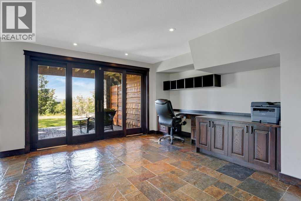 The Bragg Creek Trifecta: many properties have one of these three coveted things, but very few have it all! First, a beautiful home. Redesigned by award winning, internationally acclaimed designer, John Haddon, the 3968 sq. ft. of living space was taken down to the studs and rebuilt, inside and out, with the finest materials and craftsmanship. Second, incredible views of the mountains and forest. Given the seclusion and privacy, not a single curtain on any of the 55 windows impedes the breathtaking views afforded from every room. The third and most rare attribute of all, the thing that makes this “the hat trick”, is direct access to Kananaskis Country! That’s right, there is a private gate that connects to one of the most famous, beautiful, backcountry areas in Alberta, where you can hike or bike or ride for days. This home, sitting on 23 acres, is part of a small exclusive development of properties which span a ridge and directly border K-Country - the biggest backyard of all! Entering the home, the first thing you notice is the airy interior space, with cathedral ceilings and huge windows. The slate foyer gives way to Brazilian cherry hardwood floors, flowing throughout the balance of the home. Resisting the urge to immediately rush to the windows and deck system, to the left is the dining room and kitchen with quartz countertops and high-end appliances. Further on are two high-ceiling bedrooms, each with their own access to the wrap-around deck and connected by a large Jack and Jill 5-piece en suite. The upstairs is entirely devoted to the primary suite, which is unparalleled, with the huge windows and private deck all giving a new perspective to the vistas beyond. The 6-piece bathroom and walk-in closet complete this lofty sanctuary. The walk out lower level features a bar, exercise room, office area, expansive rec room with gas fireplace, 3-piece bath, and French doors to the walk-out patio and huge deck beyond. The property is completed by an insulated and dr ywalled triple car garage. You’re intrigued, I can tell, and further investigation is needed. Explore using our streaming video and 3-D tour; and then take the next step and make the Trifecta your own. (id:63190)