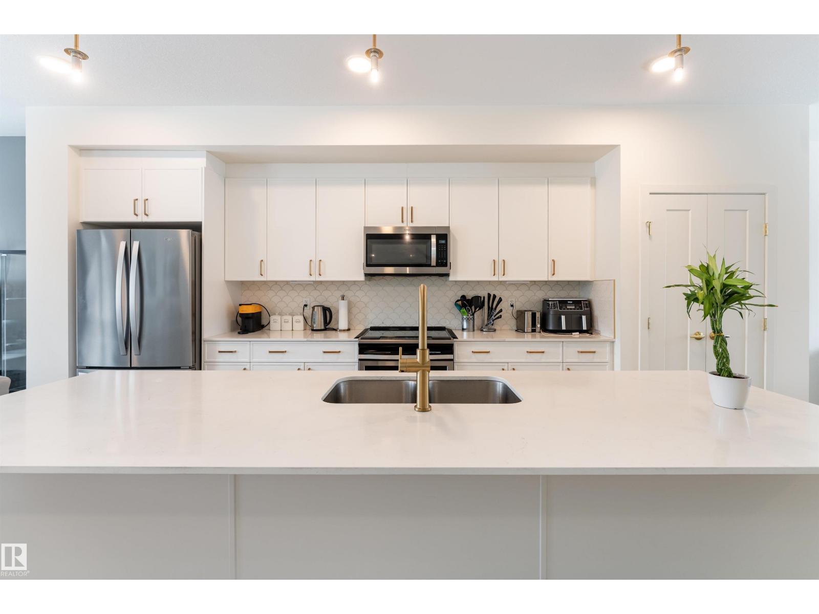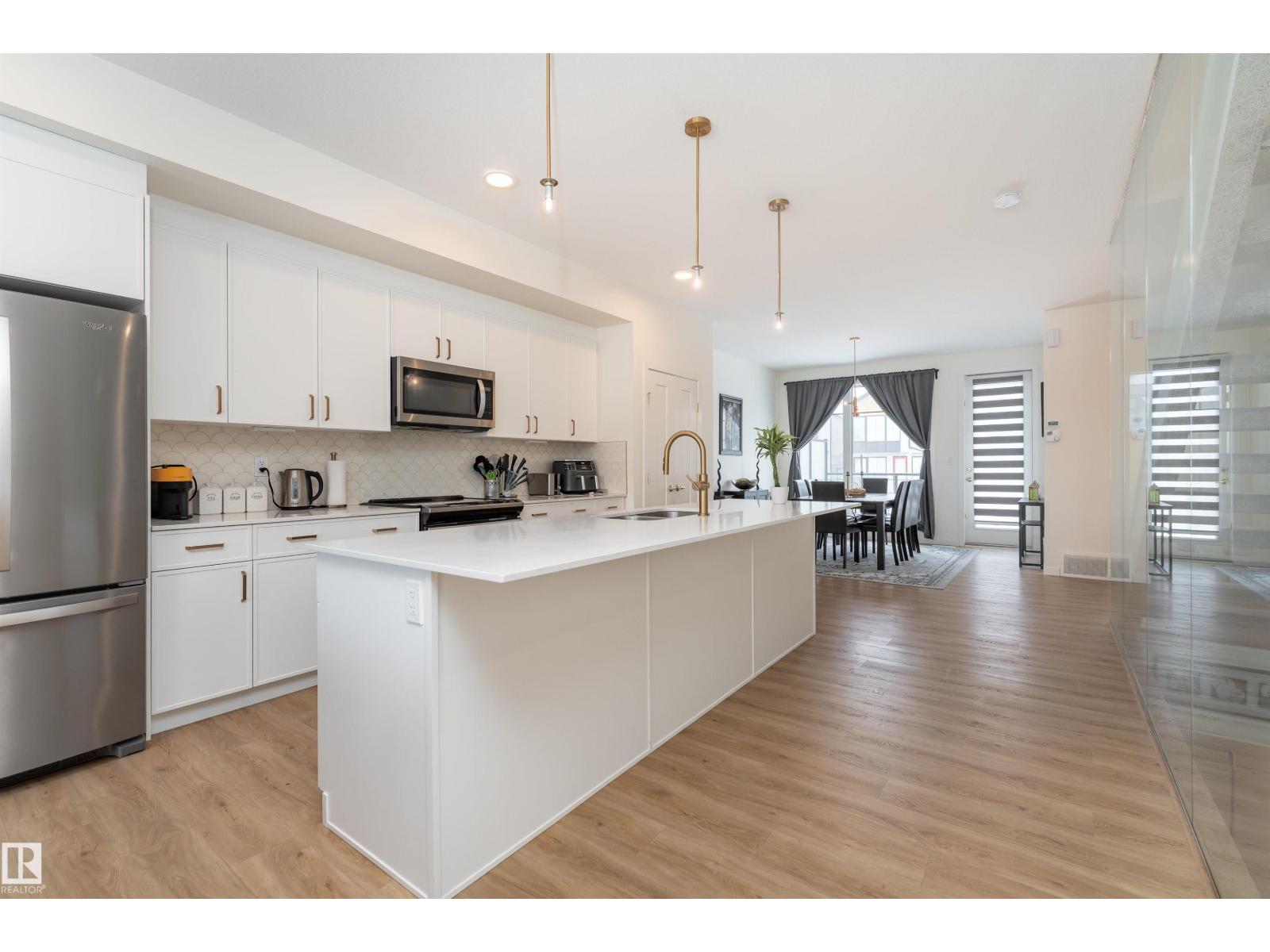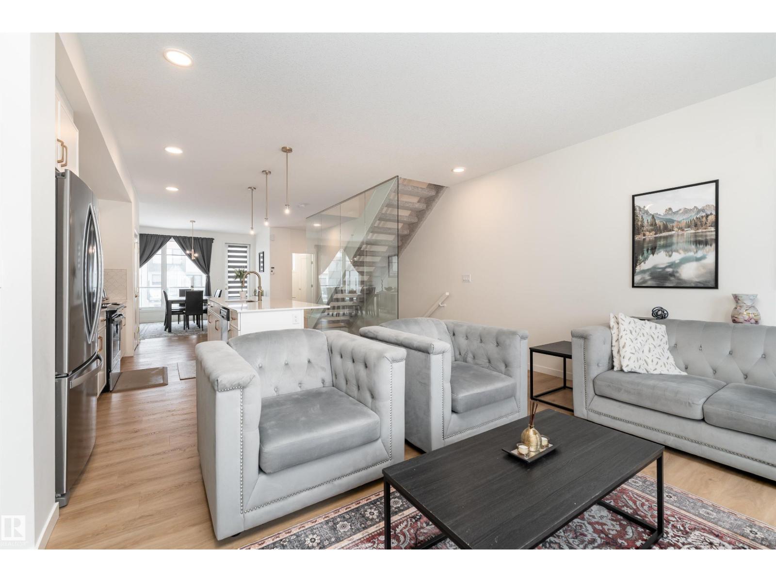 Natural light pours into this stunning 3 storey home built by Cantiro, creating a bright and welcoming feel throughout 1,870 sq ft of modern living space. With its east facing exposure, sunshine fills the home beautifully each morning. Step up to the 2nd level and enjoy the open concept layout featuring a spacious living room with oversized windows, a modern white kitchen with stainless steel appliances and a large island with a sink, and a dining area with direct access to the balcony. A convenient half bath completes this level. Upstairs on the 3rd floor, the primary bedroom offers an oversized window and a sleek 4 piece ensuite with ample counter space and a gorgeous soaker tub, along with 2 additional bedrooms and a full bathroom. On the ground floor, a bright den with large windows makes the perfect home office, plus access to the spacious 2 car tandem garage. Low maintenance landscaping and nearby disc golf and schools complete this impressive home. Come experience sun soaked elevated living today. (id:63190)