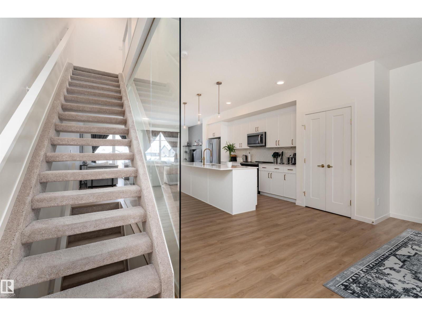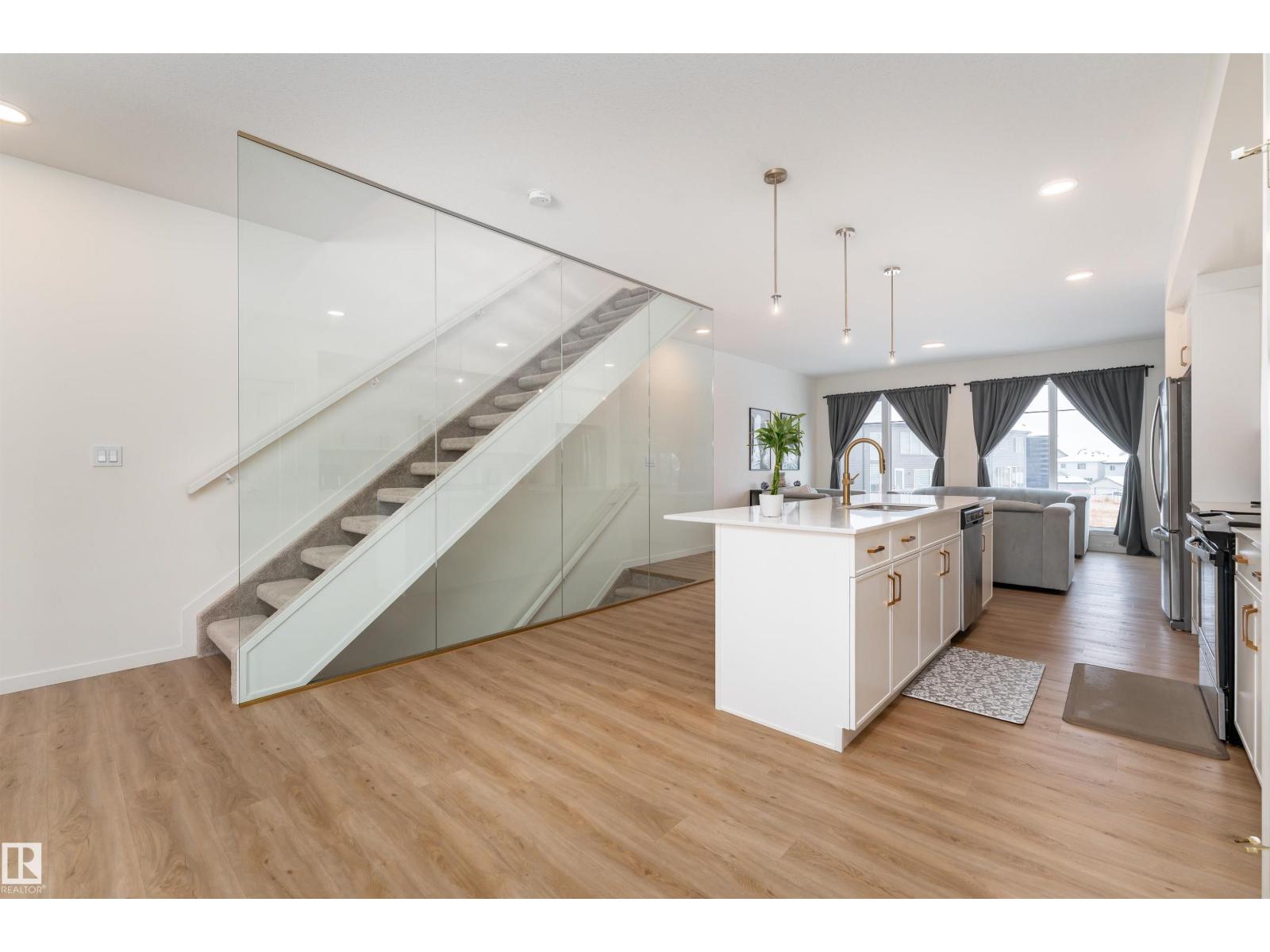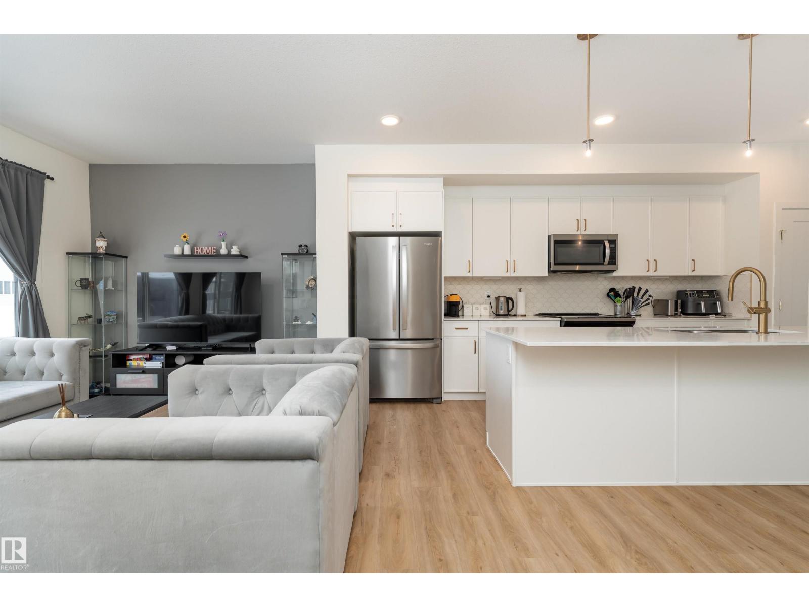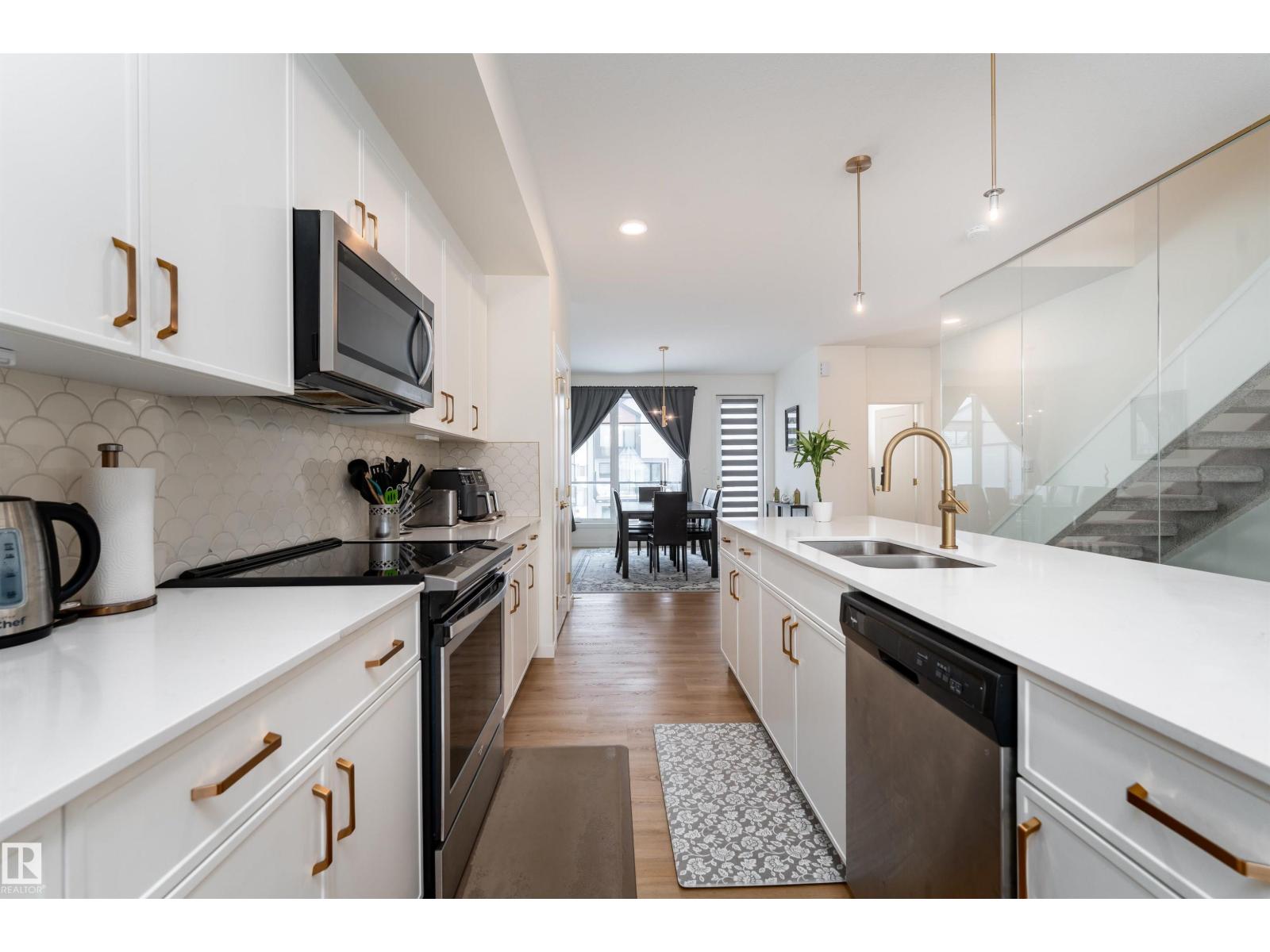 Natural light pours into this stunning 3 storey home built by Cantiro, creating a bright and welcoming feel throughout 1,870 sq ft of modern living space. With its east facing exposure, sunshine fills the home beautifully each morning. Step up to the 2nd level and enjoy the open concept layout featuring a spacious living room with oversized windows, a modern white kitchen with stainless steel appliances and a large island with a sink, and a dining area with direct access to the balcony. A convenient half bath completes this level. Upstairs on the 3rd floor, the primary bedroom offers an oversized window and a sleek 4 piece ensuite with ample counter space and a gorgeous soaker tub, along with 2 additional bedrooms and a full bathroom. On the ground floor, a bright den with large windows makes the perfect home office, plus access to the spacious 2 car tandem garage. Low maintenance landscaping and nearby disc golf and schools complete this impressive home. Come experience sun soaked elevated living today. (id:63190)