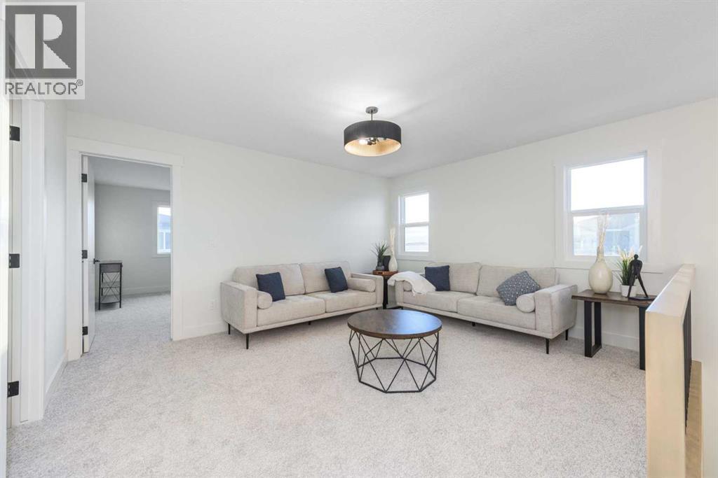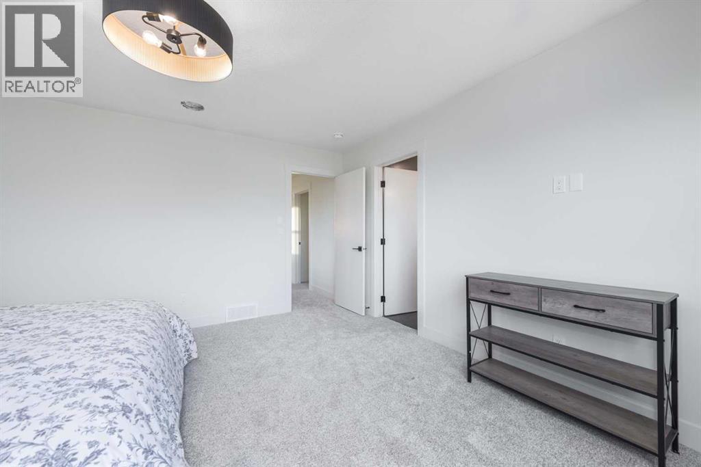 Don’t miss this exceptional opportunity to own a rare 6-bedroom home in the highly sought-after community of Waterford in Chestermere. Situated on a wide corner lot, this home offers impressive curb appeal with its grand double door entry and a spacious triple front attached garage. Inside, the thoughtfully designed open-concept main floor features a bedroom and full bathroom, ideal for guests or multigenerational living. The gourmet kitchen is paired with a generous spice kitchen, providing added functionality for daily cooking and entertaining. Upstairs, you'll find 5 well-sized bedrooms, including a luxurious primary master suite and a secondary master with its own private ensuite—perfect for large or extended families. A spacious bonus room and convenient upstairs laundry complete the upper level. With over 2,900 sq ft of living space, this home blends style, space, and practicality—perfect for growing families or those who simply want room to spread out. The unfinished basement includes a separate side entrance, providing a fantastic opportunity to develop a legal suite or custom basement to suit your needs. Located just minutes from schools, shopping, parks, and Chestermere Lake, this is a perfect place to call home. (id:63190)