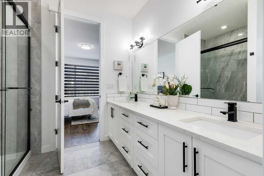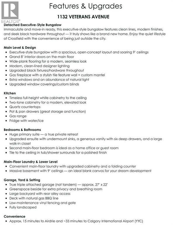 $66,000 PRICE DROP - NOW EVEN BETTER VALUE!! GORGEOUS BUNGALOW WITH ATTACHED TRIPLE GARAGE and 9-foot ceilings on BOTH LEVELS — a combination that is seldom available! From the moment you enter, the elevated ceiling height and upgraded 8-foot doors create an immediate sense of space and quality. Knockdown ceilings and modern, cohesive finishes carry that refined feel throughout the home. The kitchen is timeless and well-appointed with classic white cabinetry, quartz countertops, black hardware, and contemporary lighting accented with subtle gold details. A generous dining area flows seamlessly to the rear deck, complete with a gas line for BBQs, along with a lower patio for additional outdoor living space. Space for an RV as well. The vinyl-fenced yard offers back-alley access and a quiet setting where you can step outside and enjoy a touch of nature. The living room is warm and inviting, anchored by a custom mantle fireplace and large windows that bring in excellent natural light. The HUGE primary suite is designed as a true retreat and features a spa-like ensuite with an oversized shower that has tile finished to the ceiling, double undermount sinks with QUARTZ countertops, six functional drawers for storage, and a large walk-in closet. The secondary bathroom also showcases tile to the ceiling, reinforcing the upgraded finishes throughout. A second bedroom completes the main level. The main-floor laundry room has been thoughtfully upgraded with custom cabinetry and additional space for drying racks and organization. Downstairs, the massive basement mirrors the main floor with 9-foot ceilings and offers three large windows, a bathroom rough-in already in place, and utilities neatly positioned in one corner — creating an ideal and flexible layout for future development. Create the perfect space for a media room, home gym, pool table, or whatever you can dream up. Immaculately maintained and lightly lived in, this bungalow offers rare garage space, elevated ceiling h eight, and quality upgrades in a peaceful location. Book your showing today! (id:63190)