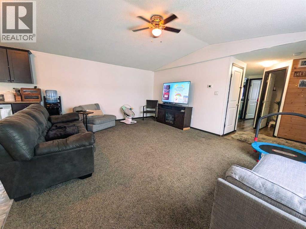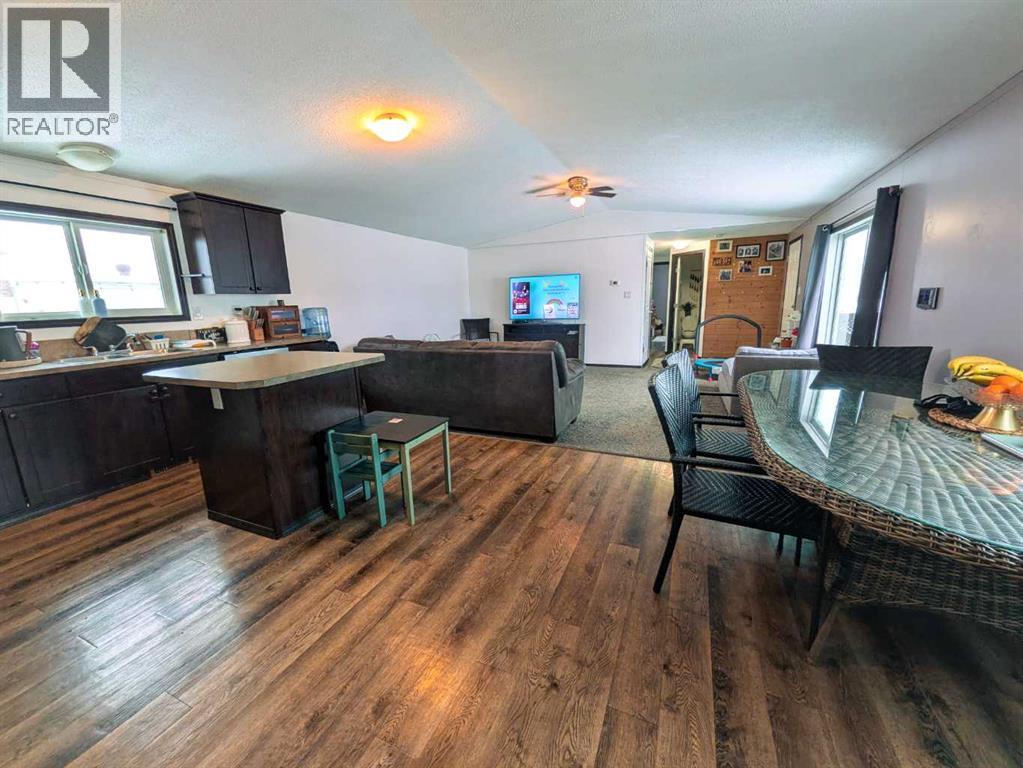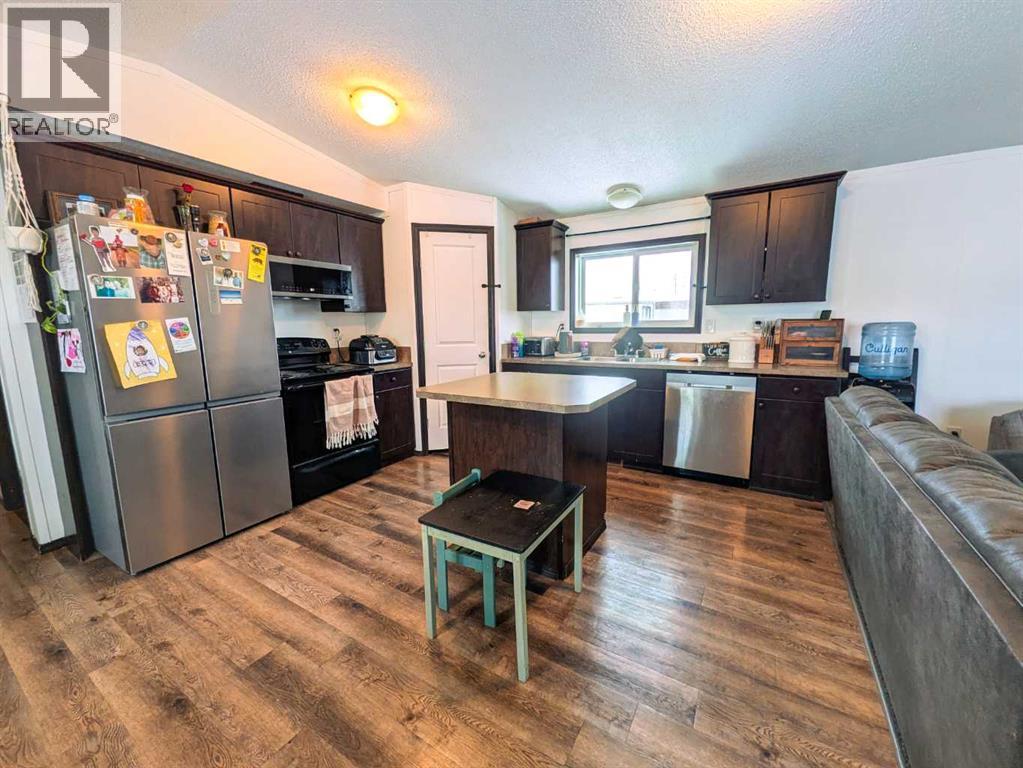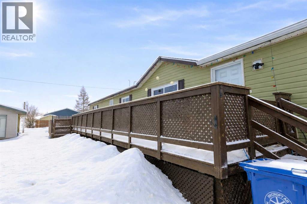 Welcome to this beautifully maintained 4 bedroom, 2 bathroom double wide modular home in Rycroft. The perfect blend of space, comfort, and affordability for families or first time buyers. Move-in ready and thoughtfully updated, this home offers high ceilings, an open-concept living area, and large windows that fill the space with natural light. The spacious kitchen is designed with family living in mind, featuring stainless steel appliances, rich dark cabinetry, a central island, and a convenient pantry. The primary suite provides a private retreat with a walk-in closet and an ensuite complete with a relaxing soaker tub. A massive laundry room offers incredible storage and functionality, ideal for busy households. Recent updates include newer flooring and paint, updated plumbing, a brand new dishwasher, and a furnace replaced in December 2025, already set up for easy central air installation.Step outside to a large deck and fully fenced yard, perfect for kids and pets, and enjoy the unbeatable location directly across from Rycroft School. With parks, shopping, and everyday amenities just minutes away, this home truly checks all the boxes for growing families looking for space, comfort, and value. (id:63190)