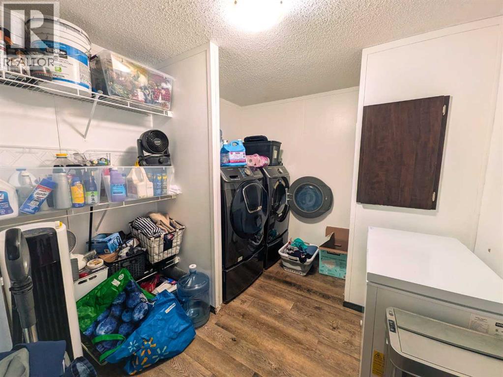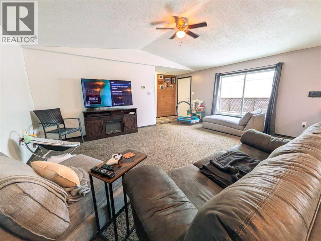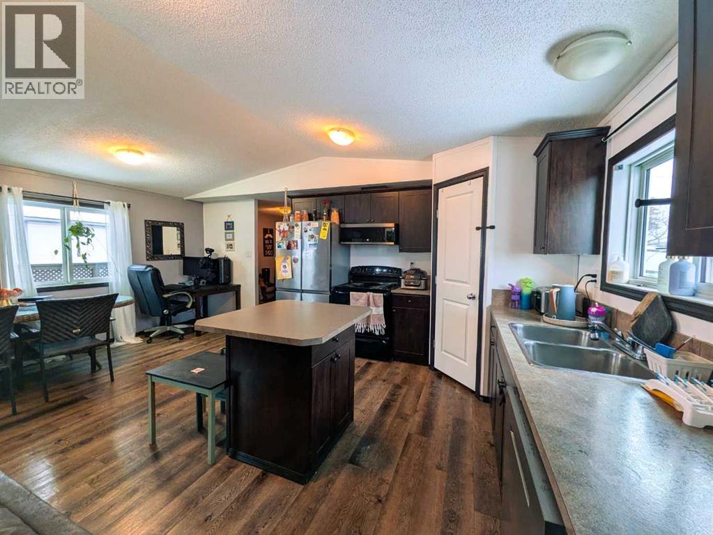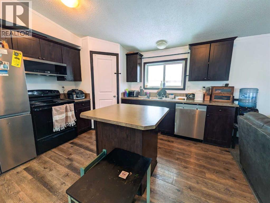 Welcome to this beautifully maintained 4 bedroom, 2 bathroom double wide modular home in Rycroft. The perfect blend of space, comfort, and affordability for families or first time buyers. Move-in ready and thoughtfully updated, this home offers high ceilings, an open-concept living area, and large windows that fill the space with natural light. The spacious kitchen is designed with family living in mind, featuring stainless steel appliances, rich dark cabinetry, a central island, and a convenient pantry. The primary suite provides a private retreat with a walk-in closet and an ensuite complete with a relaxing soaker tub. A massive laundry room offers incredible storage and functionality, ideal for busy households. Recent updates include newer flooring and paint, updated plumbing, a brand new dishwasher, and a furnace replaced in December 2025, already set up for easy central air installation.Step outside to a large deck and fully fenced yard, perfect for kids and pets, and enjoy the unbeatable location directly across from Rycroft School. With parks, shopping, and everyday amenities just minutes away, this home truly checks all the boxes for growing families looking for space, comfort, and value. (id:63190)