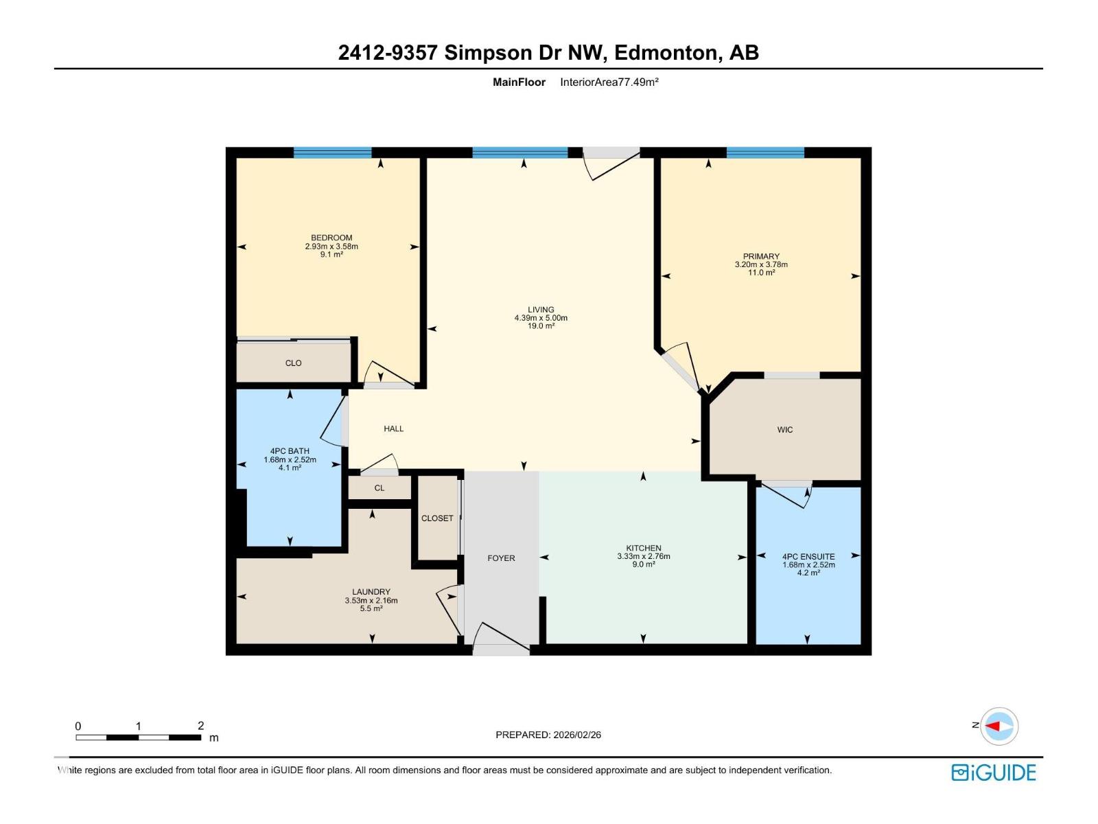 | Primary Bedroom | Main level | 3.78 x 3.2 | — |