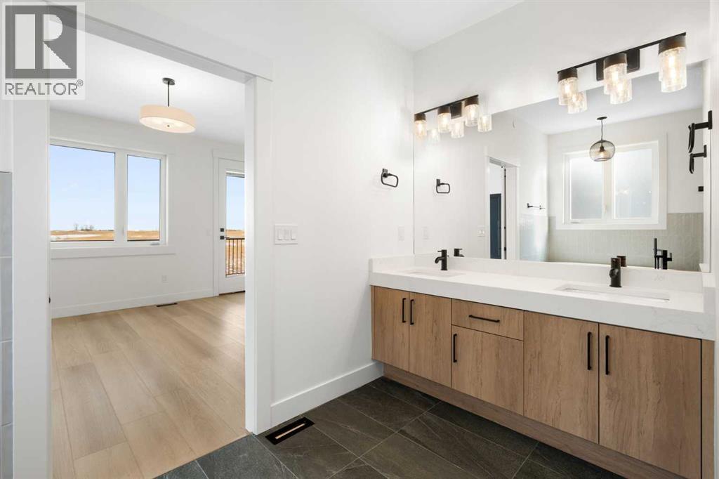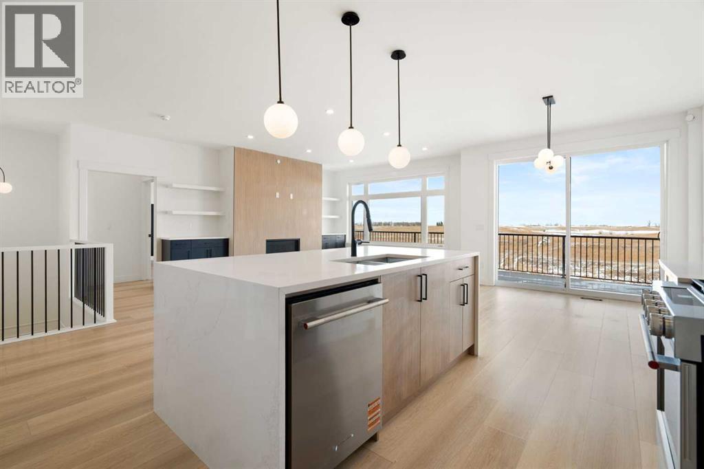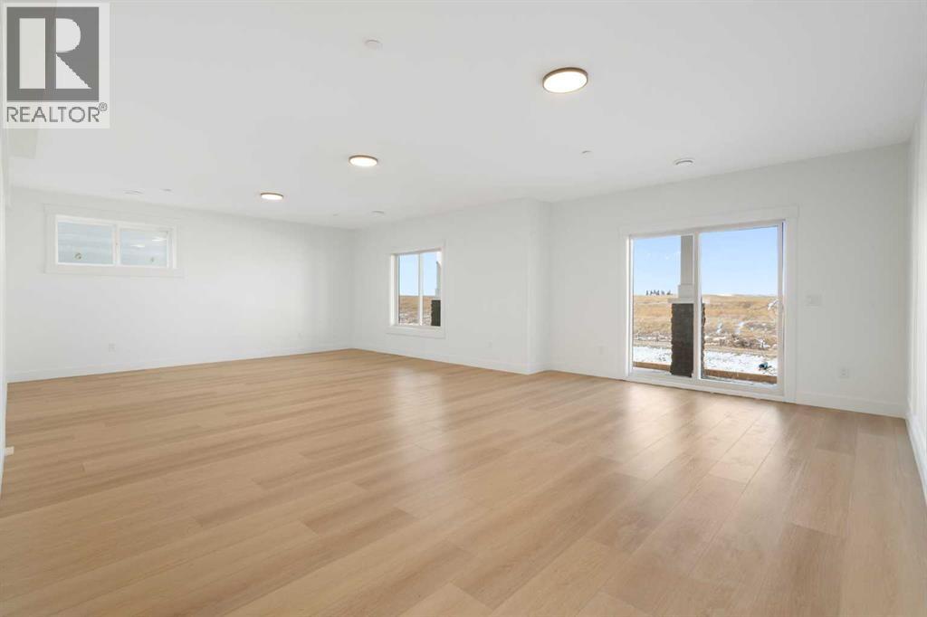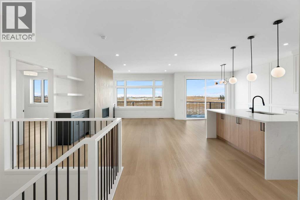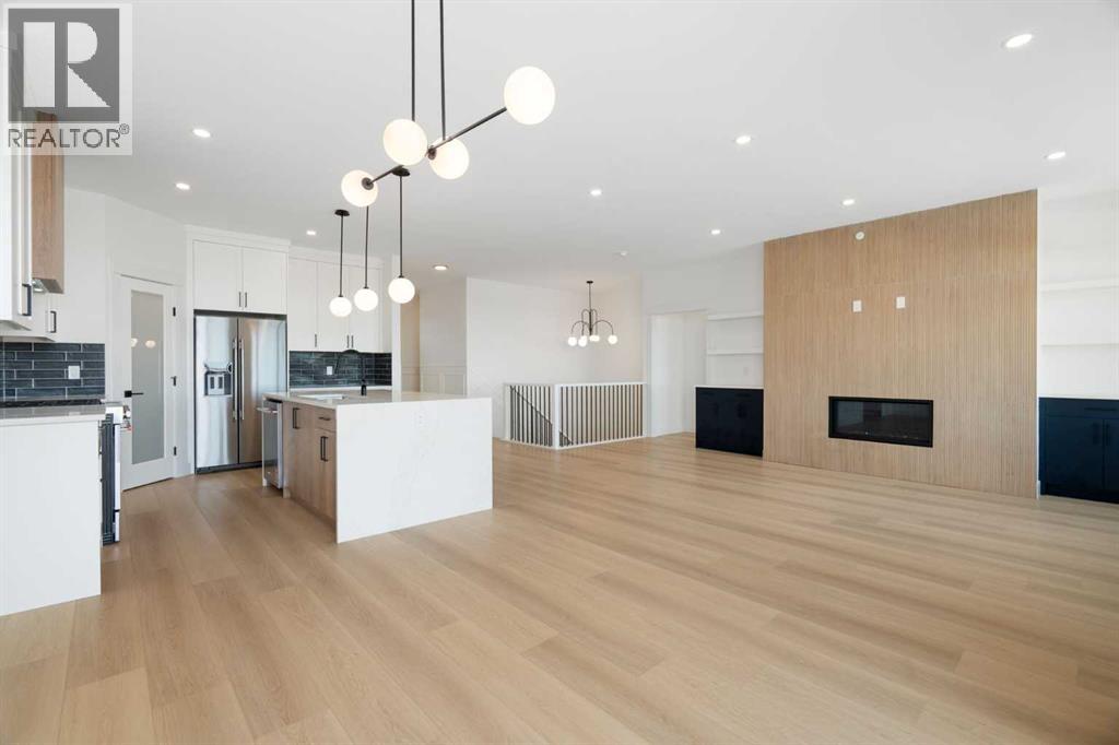MOTIVATED SELLER – BRING YOUR OFFERS! This is an incredible opportunity to own a masterfully designed 1,892 sq. ft. walkout bungalow in the prestigious Lakes of Muirfield, also ELIGIBLE FOR THE FIRST-HOME BUYERS GST REBATE. From the striking board-and-batten exterior and stone accents to the side-drive triple garage, this home radiates curb appeal. Enjoy the freedom of no water restrictions in this premier golf community - a significant advantage over Calgary, Chestermere, and StrathmoreInside, soaring vaulted ceilings and massive windows frame tranquil canal views, creating a bright and airy sanctuary. The chef-inspired kitchen is a showstopper, boasting quartz countertops, a dramatic waterfall island, custom cabinetry, and premium stainless appliances. The open-concept layout flows seamlessly to a full-length upper deck, perfect for entertaining against a backdrop of open prairie skies.The main floor features a private primary retreat with deck access and a spa-like 5-piece ensuite, plus two additional bedrooms for family or a home office. Descend to the fully developed walkout level to find an entertainer's dream: a massive theatre room with a dedicated wet bar, two oversized bedrooms, and a generous recreation space that opens directly to the covered lower patio. Residents of the Lakes of Muirfield enjoy championship golf and scenic paths, all while being minutes from Strathmore and an easy commute to Calgary. With a motivated seller and a pristine, move-in-ready interior, this canal-side gem won't last long! (id:63190)