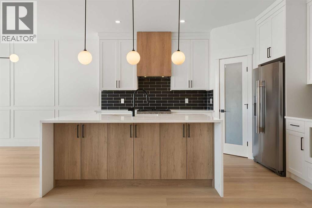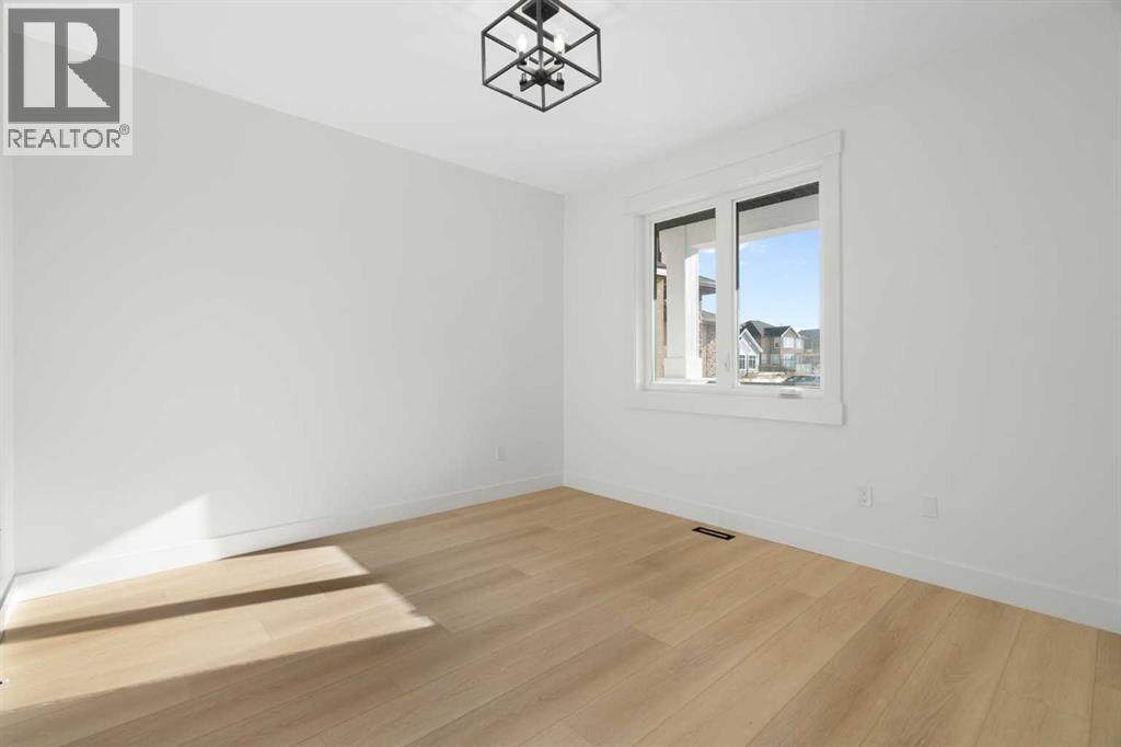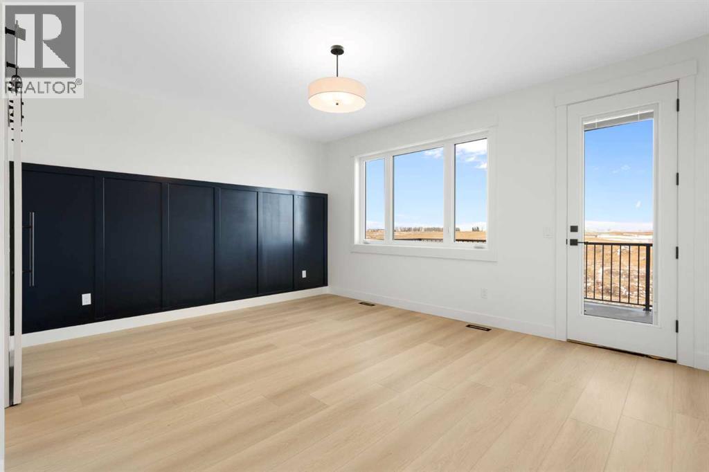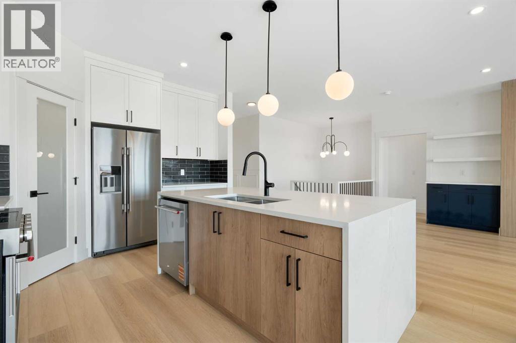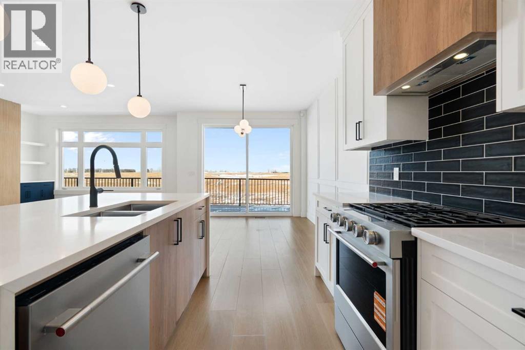 MOTIVATED SELLER – BRING YOUR OFFERS! This is an incredible opportunity to own a masterfully designed 1,892 sq. ft. walkout bungalow in the prestigious Lakes of Muirfield, also ELIGIBLE FOR THE FIRST-HOME BUYERS GST REBATE. From the striking board-and-batten exterior and stone accents to the side-drive triple garage, this home radiates curb appeal. Enjoy the freedom of no water restrictions in this premier golf community - a significant advantage over Calgary, Chestermere, and StrathmoreInside, soaring vaulted ceilings and massive windows frame tranquil canal views, creating a bright and airy sanctuary. The chef-inspired kitchen is a showstopper, boasting quartz countertops, a dramatic waterfall island, custom cabinetry, and premium stainless appliances. The open-concept layout flows seamlessly to a full-length upper deck, perfect for entertaining against a backdrop of open prairie skies.The main floor features a private primary retreat with deck access and a spa-like 5-piece ensuite, plus two additional bedrooms for family or a home office. Descend to the fully developed walkout level to find an entertainer's dream: a massive theatre room with a dedicated wet bar, two oversized bedrooms, and a generous recreation space that opens directly to the covered lower patio. Residents of the Lakes of Muirfield enjoy championship golf and scenic paths, all while being minutes from Strathmore and an easy commute to Calgary. With a motivated seller and a pristine, move-in-ready interior, this canal-side gem won't last long! (id:63190)