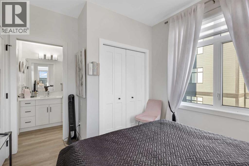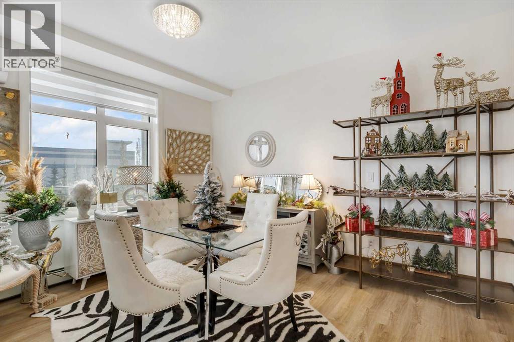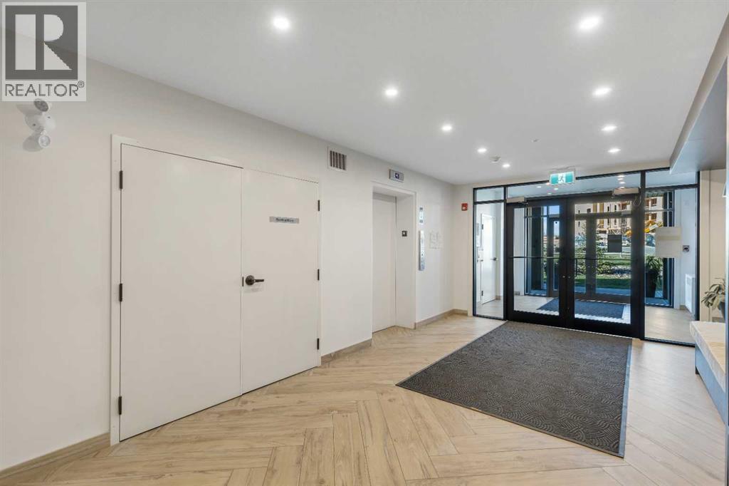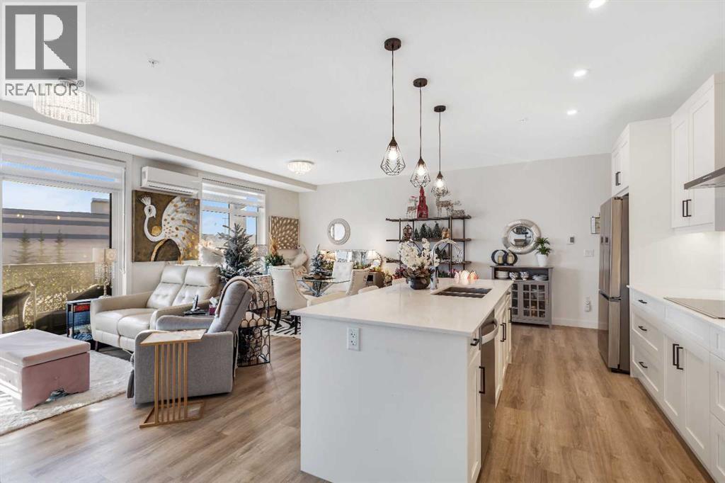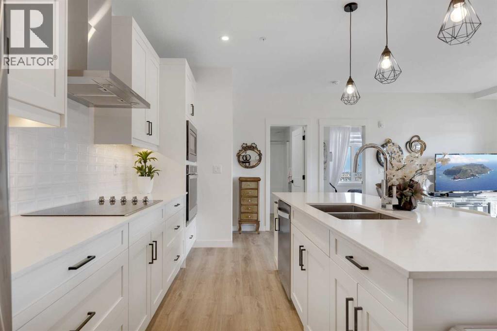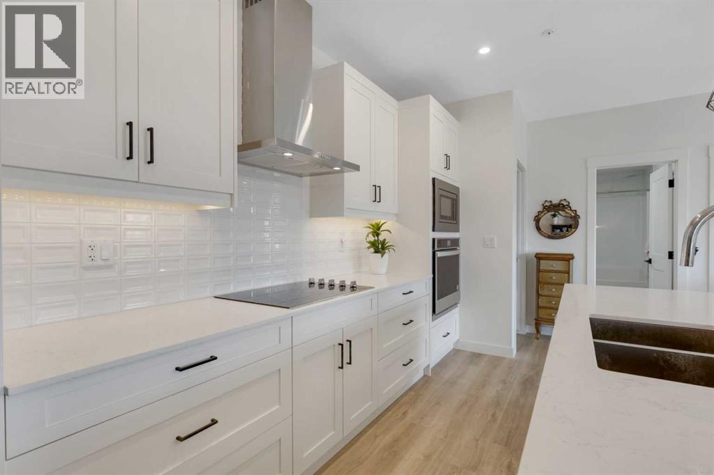 Welcome to this well maintained 2021 built 2 bedroom, 2 bathroom luxury ground level, corner unit condo in the amazing community of Sage Hill. From the front door, you are welcomed with a spacious private foyer with a closet, this condo features everything you will need with 1061 square feet of living space, luxury vinyl plank flooring throughout, a full eat in kitchen with gorgeous white contemporary quartz counter tops, a huge upgraded island, built-in microwave, built-in oven, a counter top stove, all stainless steel appliances with upgraded fridge, as well all the cupboards. It also features a large living area to comfortably fit a dining table, a full living room. The large Primary bedroom has a full walk-in closet, en-suite with double vanity, and a fully tiled shower with an 8mm glass sliding door. The spacious second bedroom offers direct access to the second full bathroom with large vanity, tile and a tub/shower combo. The laundry room offers extra storage space, full size front load stacked washer and dryer. Enjoy the morning sun on the large wrap around patio which has a natural gas line. This unit has full air conditioning to keep you cool during the hot summer months, and upgraded blinds on all the windows. Stay warm in the winter months with secure heated underground parking and a storage unit at your parking stall. This professionally managed building is well taken care. Just walking distance from your patio to the Township shopping complex in Sage Hill across the street for all your necessities. (id:63190)